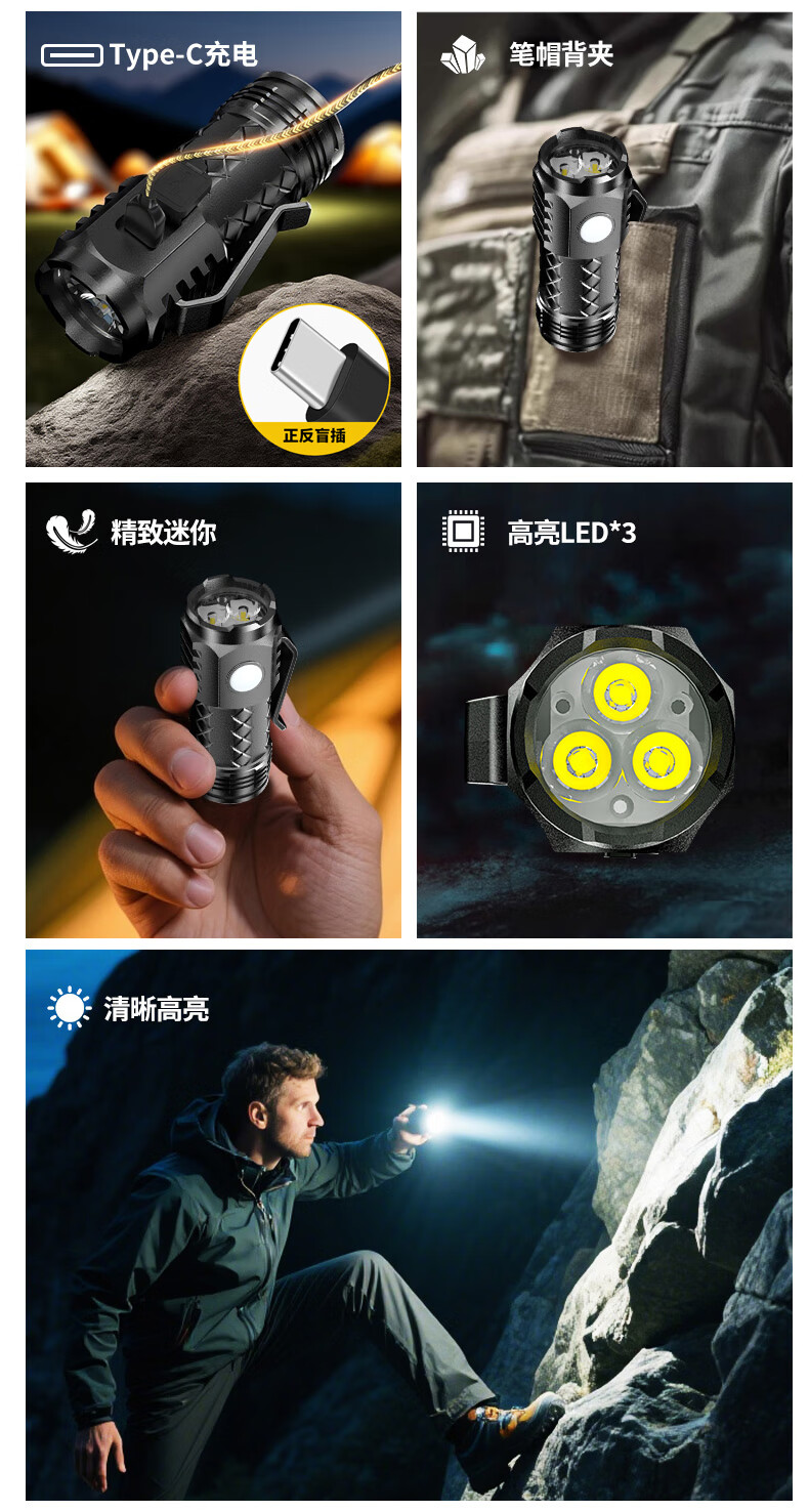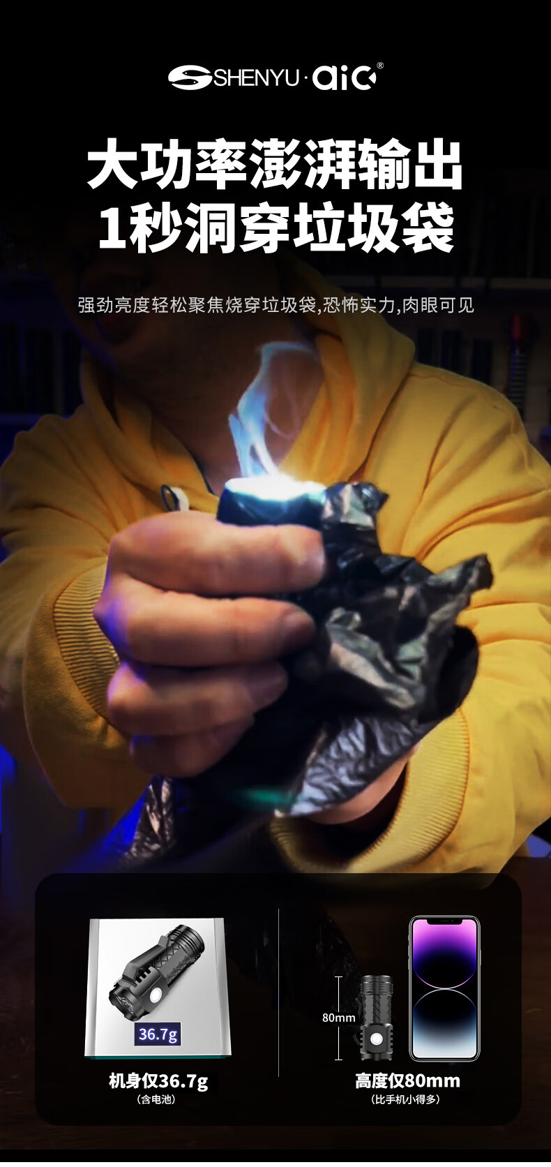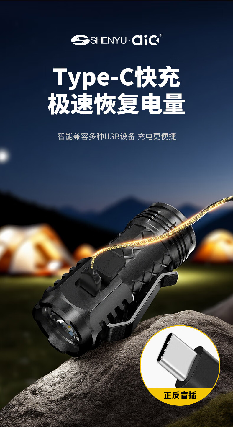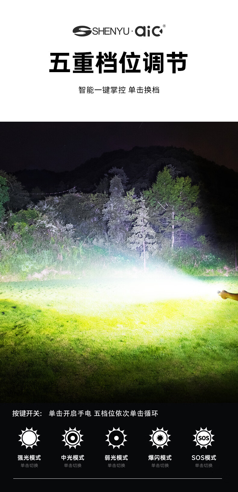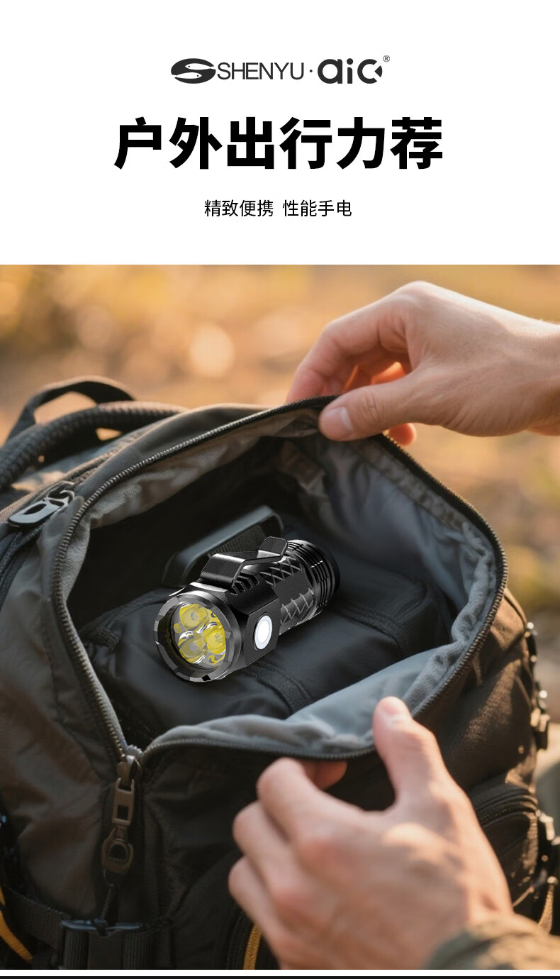 SHENYU三灯芯强光手电筒充电超亮户外远射工作灯迷你便携小多功能家用 【强光三灯芯】顶配款