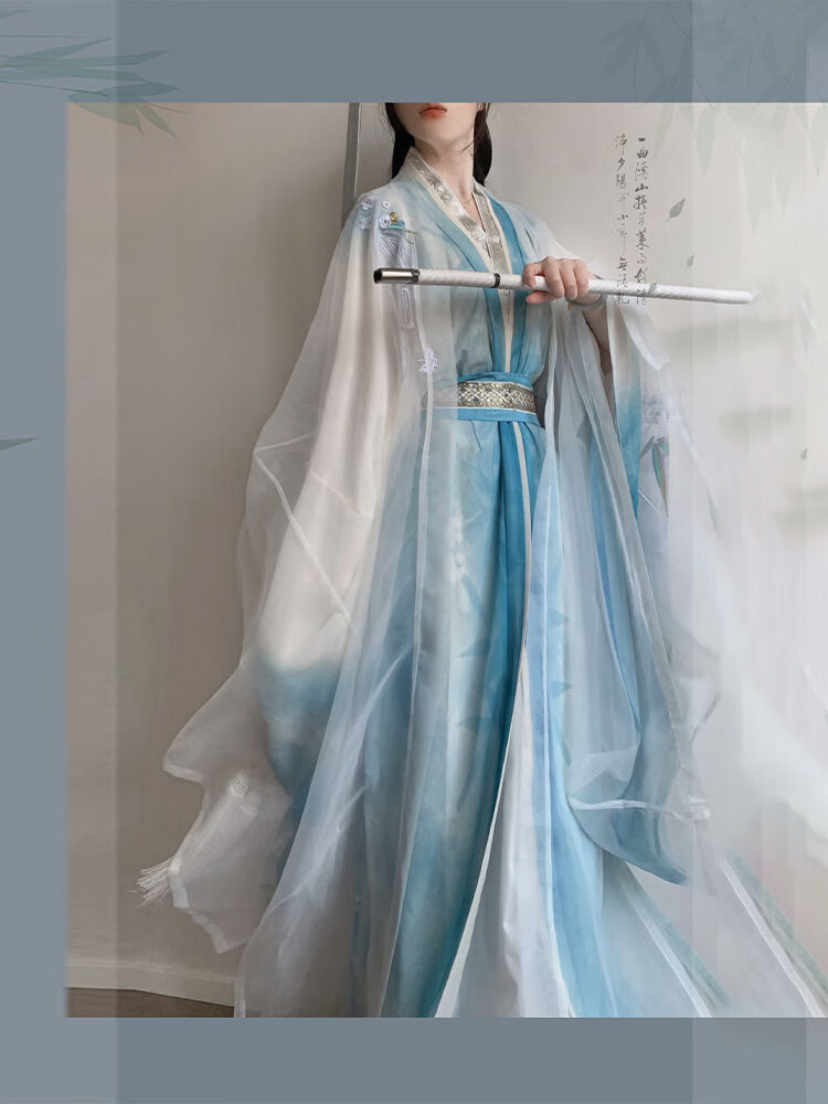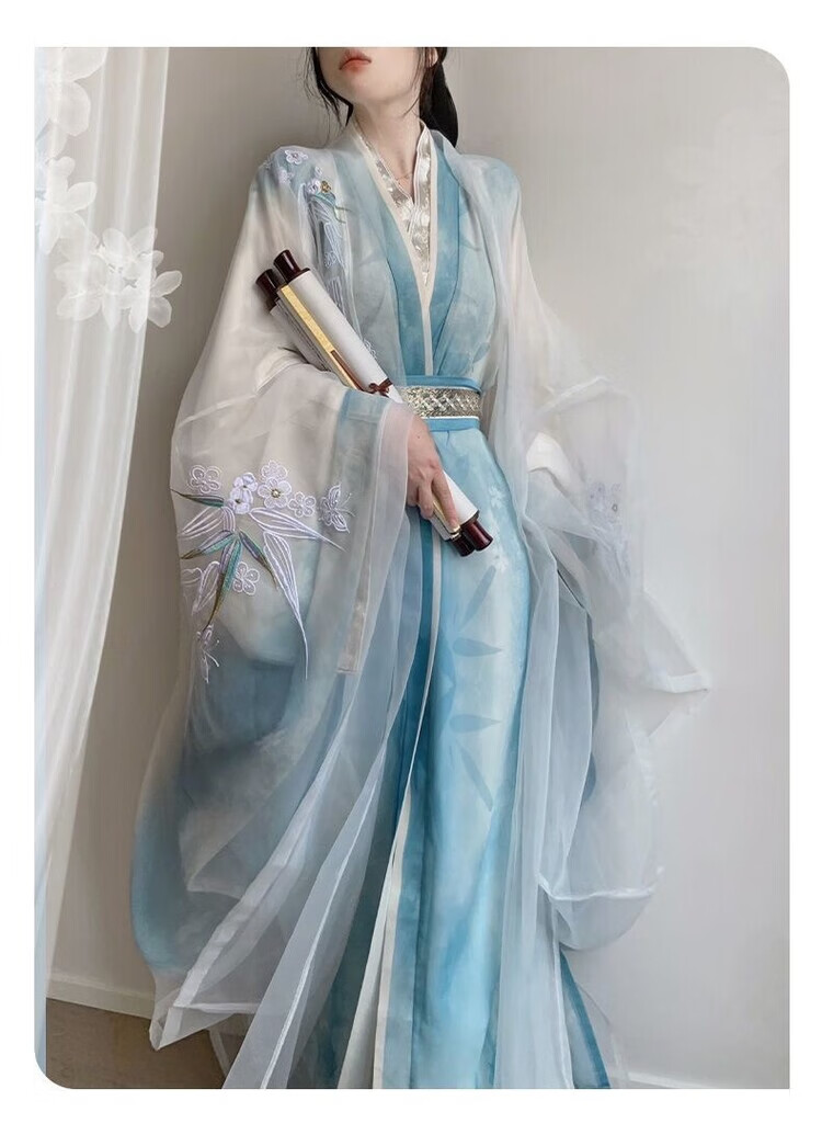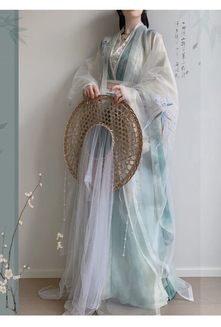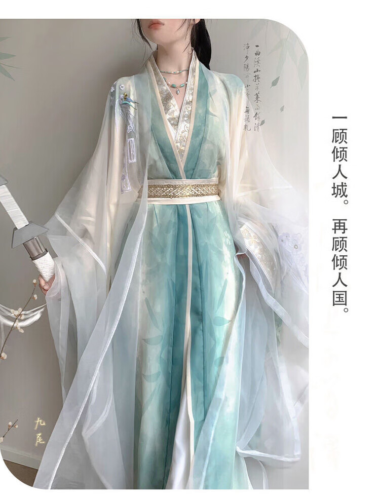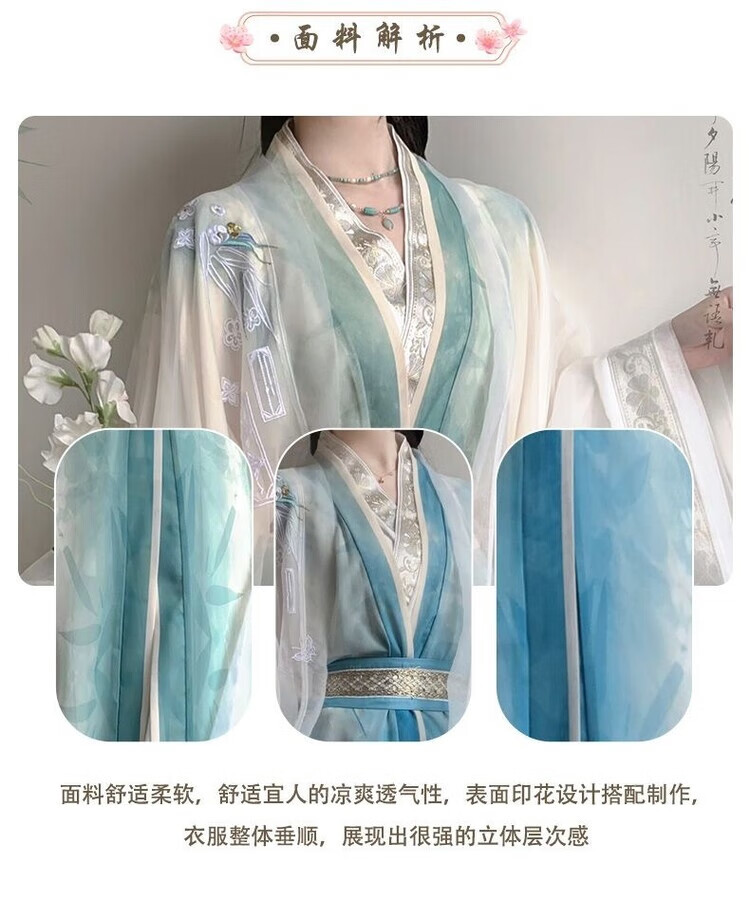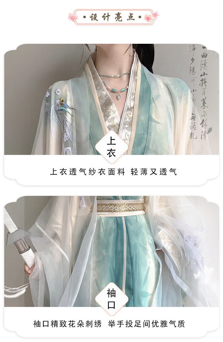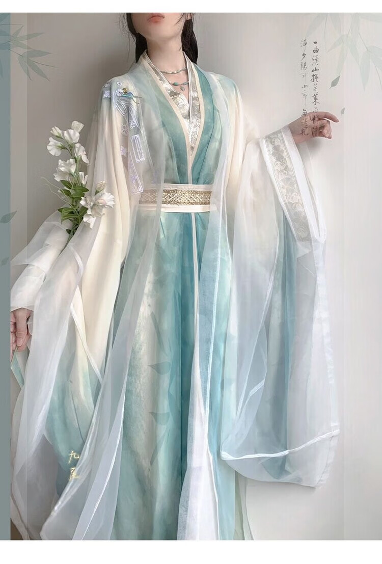 【洛神赋】唐制汉服女大袖衫直裾重工刺绣日常超仙气套装春秋款 绿色-外大袖 绿大袖 直裾 腰封 XL