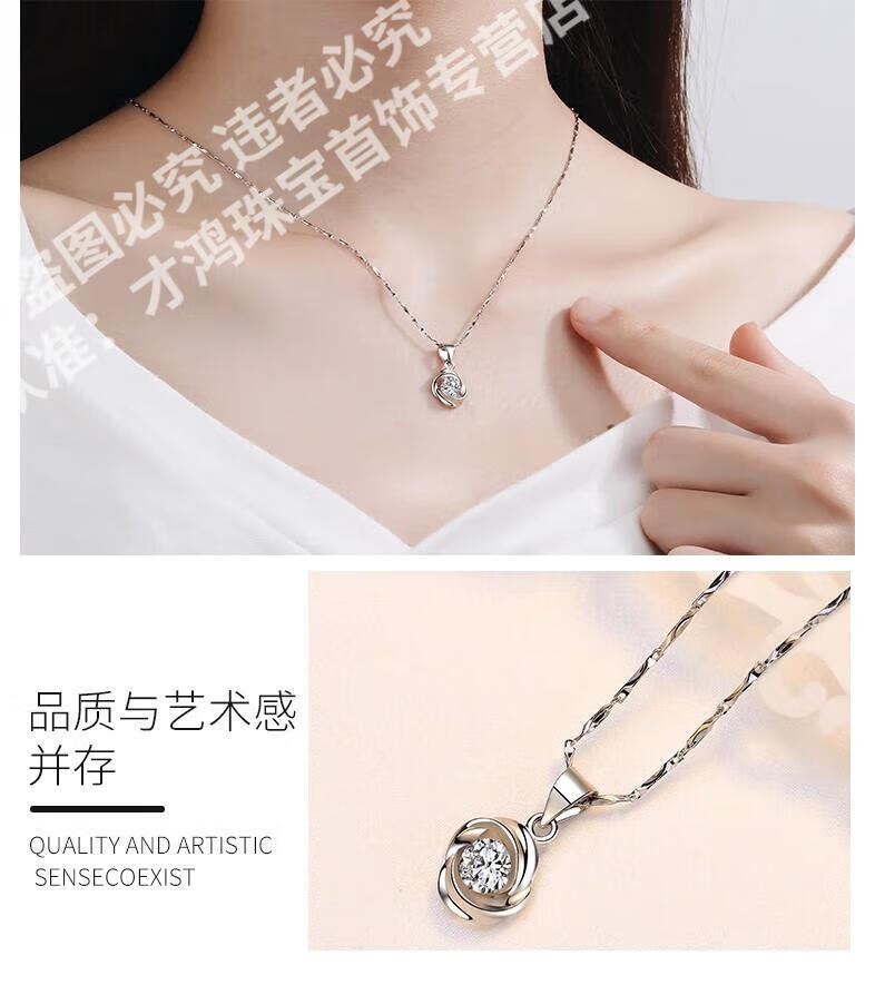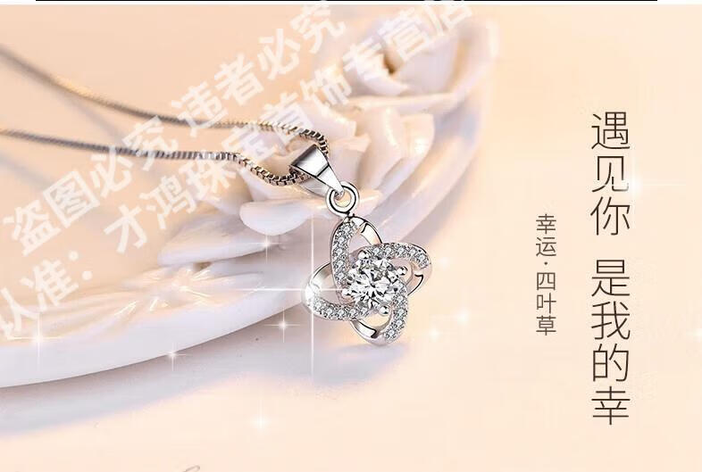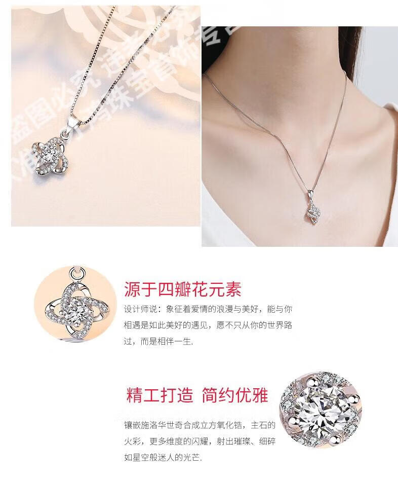 CFKLTD老凤凰999银项链女颈链饰品锁骨链送女友闺蜜四叶草简约气质吊坠 丘比特之箭白钻+瓜子链+证书