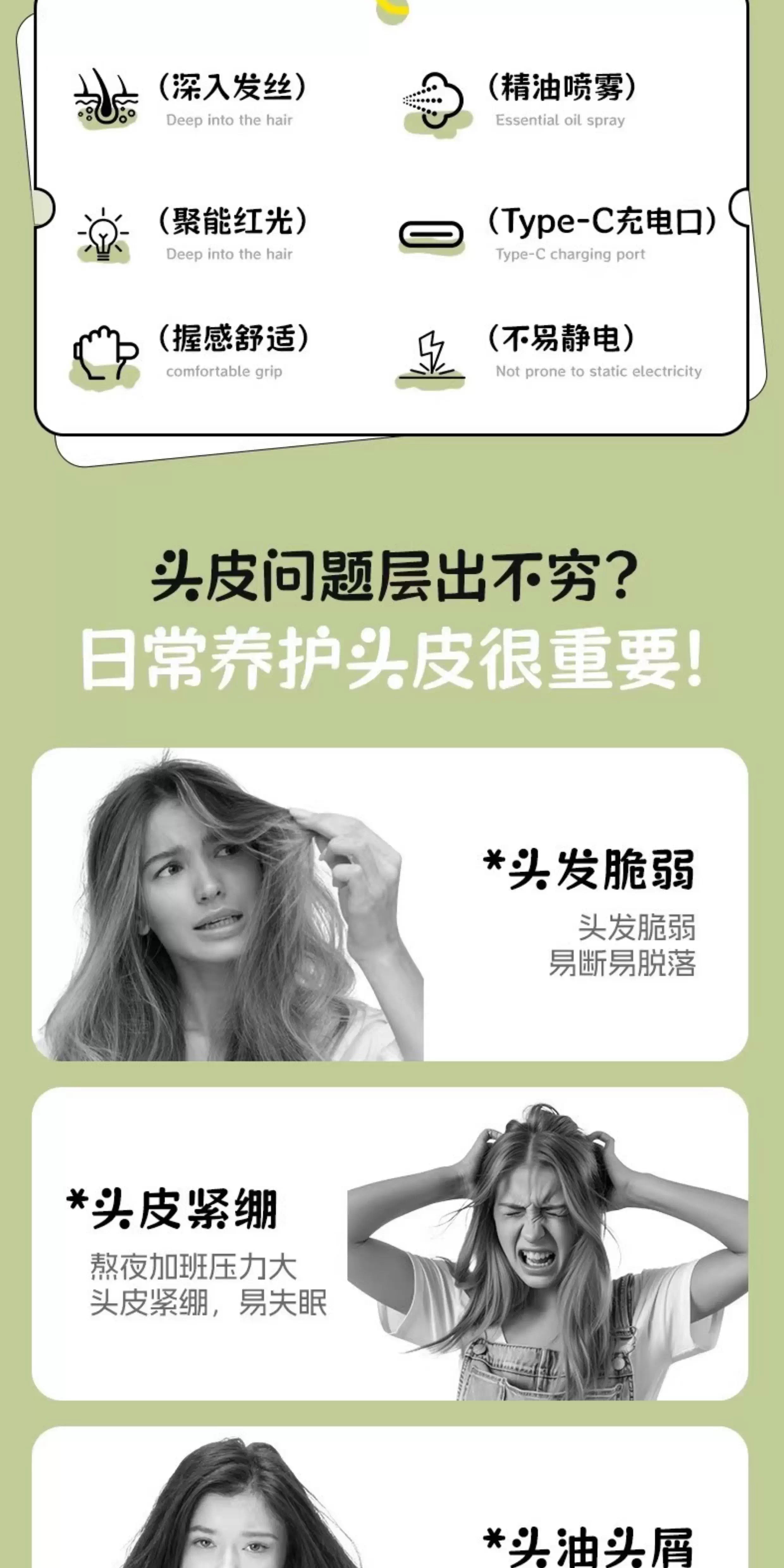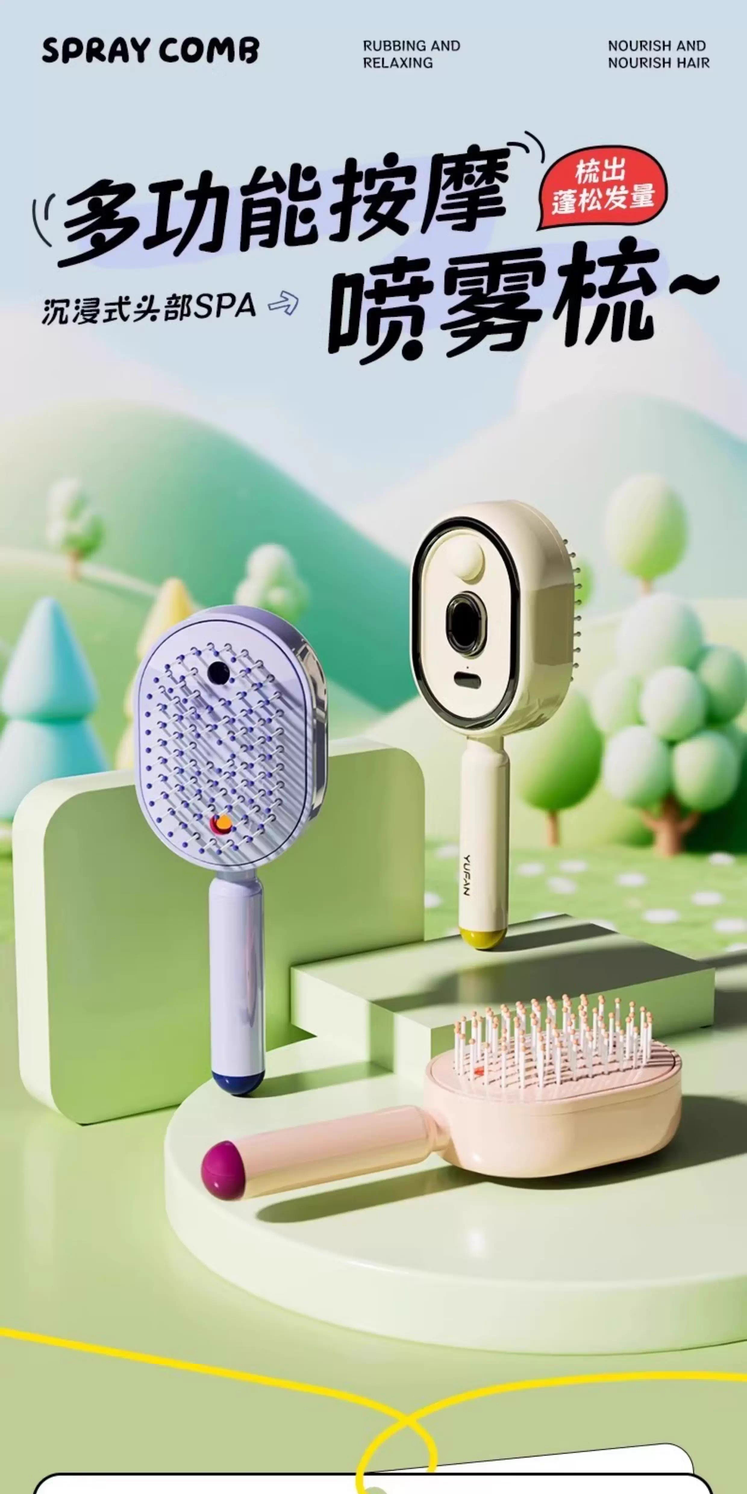 电动喷雾按摩梳女士专用精油雾化护发自清洁缠发可伸缩梳气垫梳子 紫色【1个装】电动喷雾按摩梳