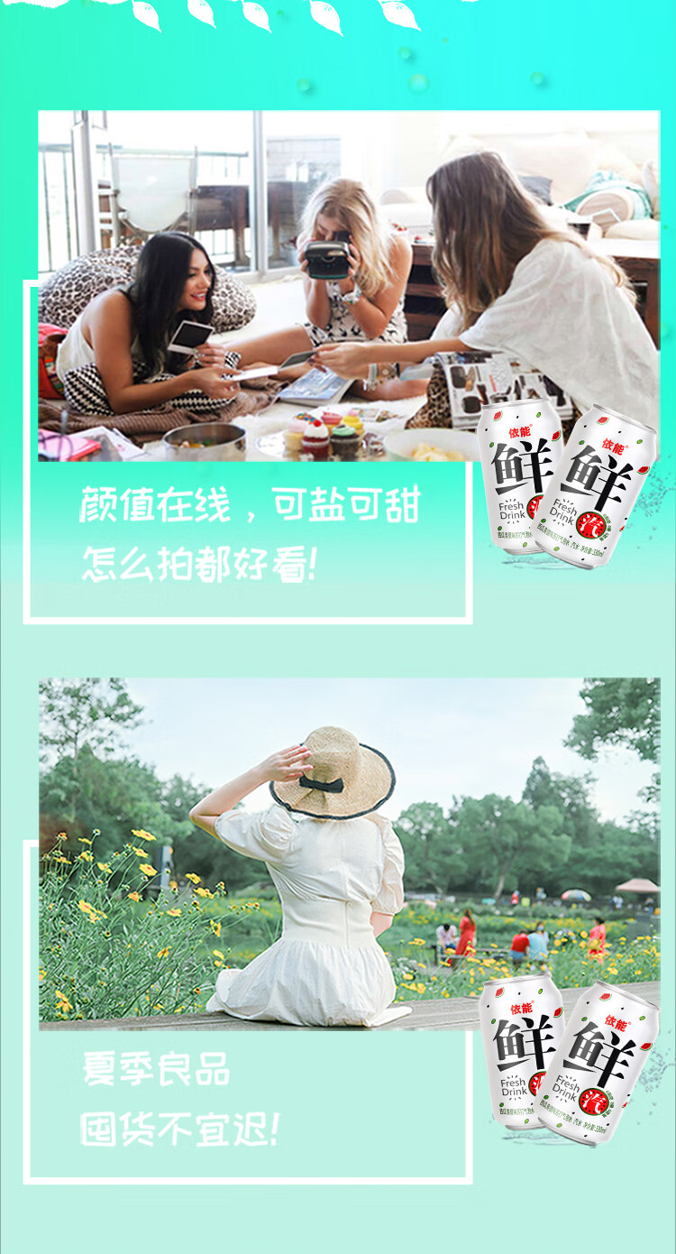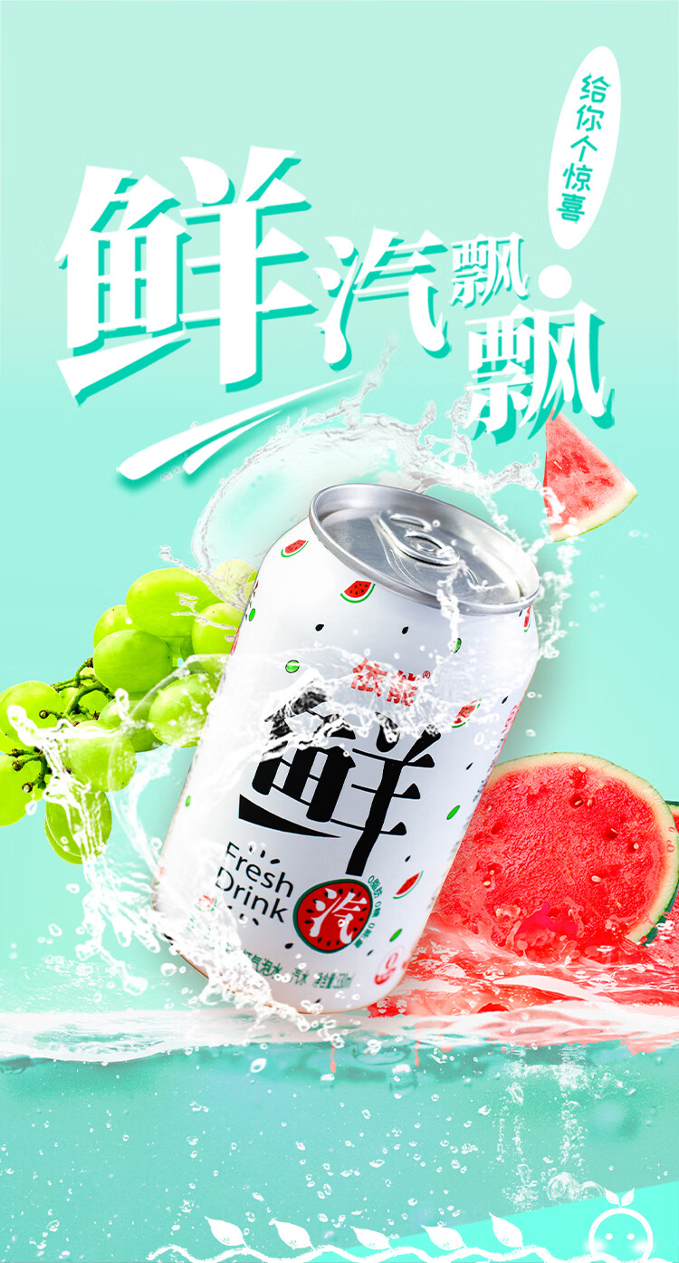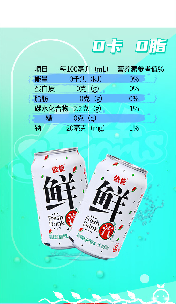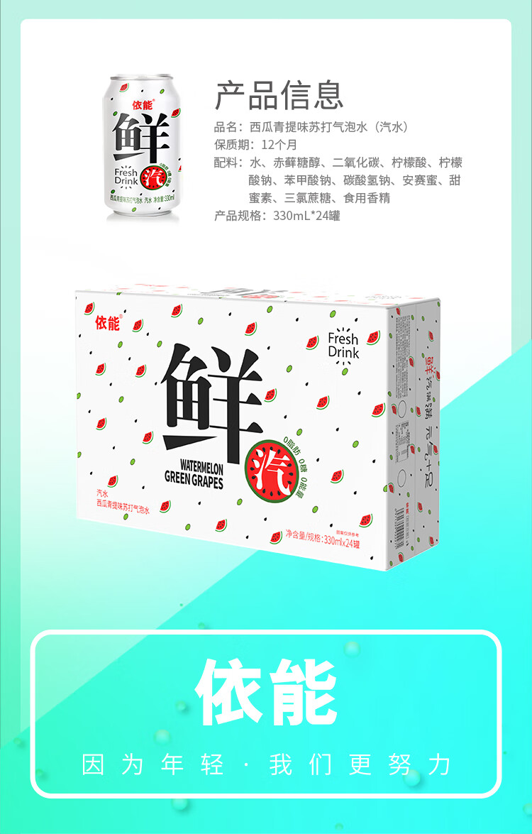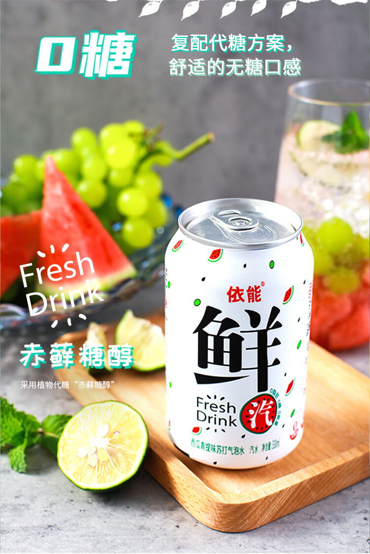 依能鲜汽 汽水 西瓜青提气泡水饮料苏打水 无糖0卡 330ml*24罐 整箱装