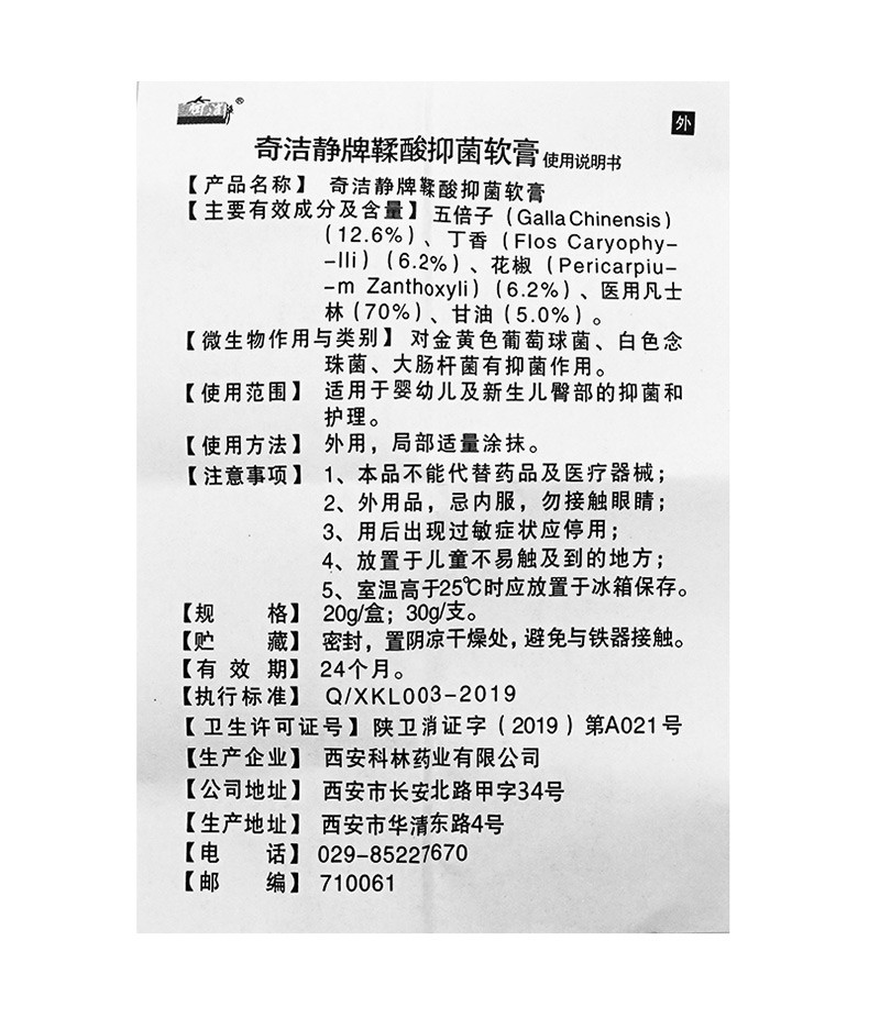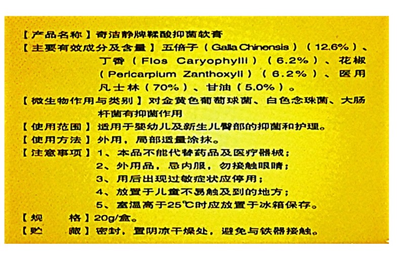 奇洁静 鞣酸抑菌软膏20g产妇婴儿新生儿护臀膏儿童红屁屁红屁股可用 1盒装20g+棉签(无买赠)