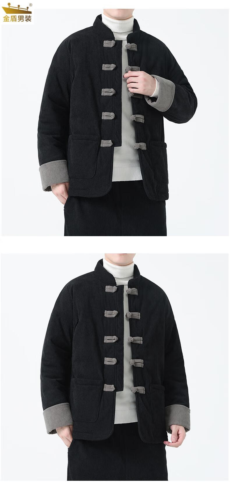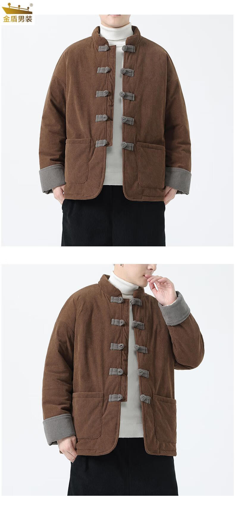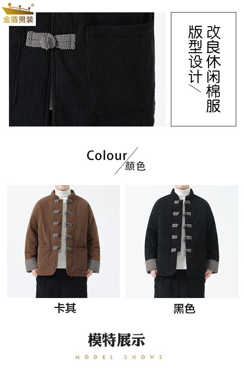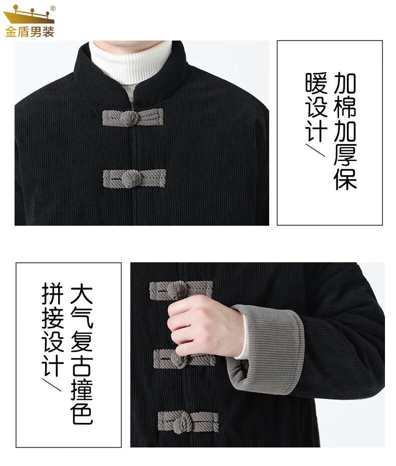 金盾中国风灯芯绒棉衣男士冬季加厚棉袄大码棉服盘扣潮新中式唐装外套 MY2310卡其色 XL 140-150斤