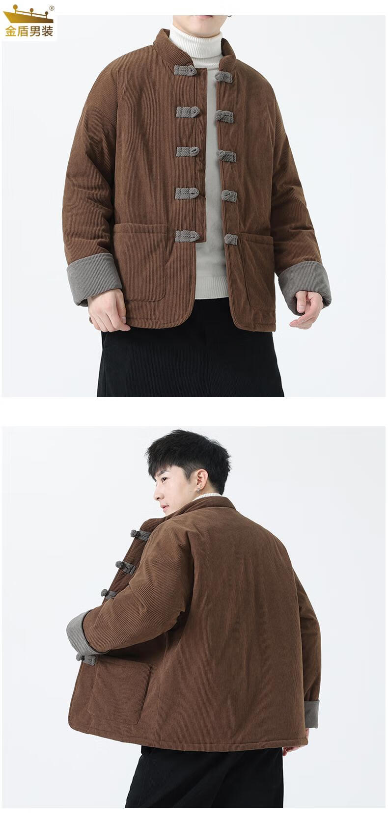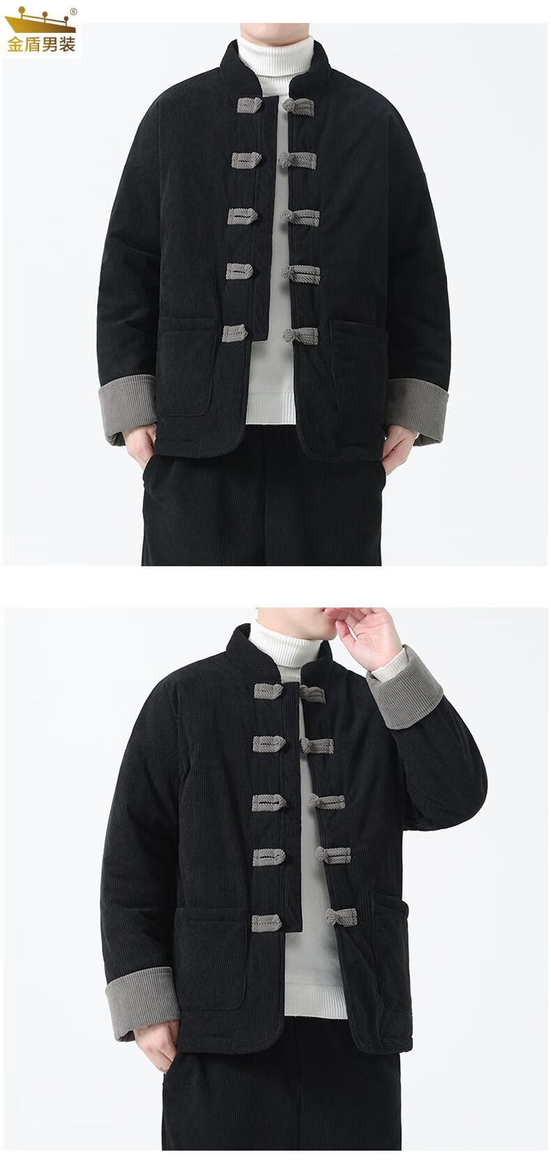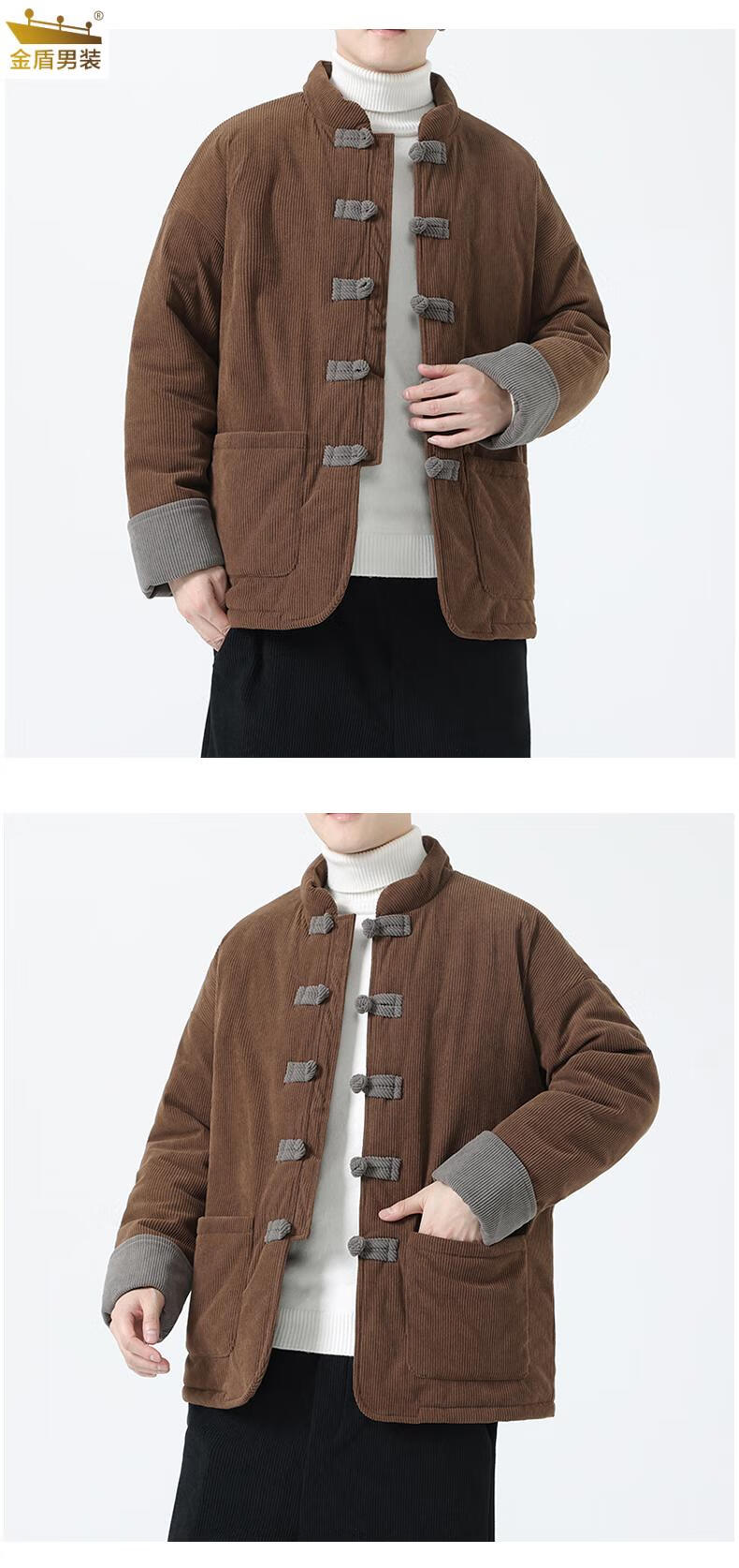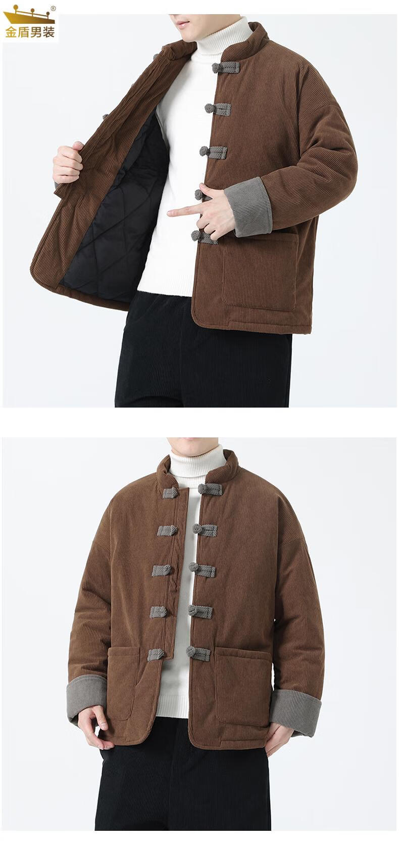 金盾中国风灯芯绒棉衣男士冬季加厚棉袄大码棉服盘扣潮新中式唐装外套 MY2310卡其色 XL 140-150斤