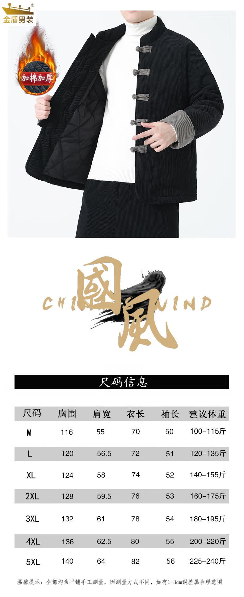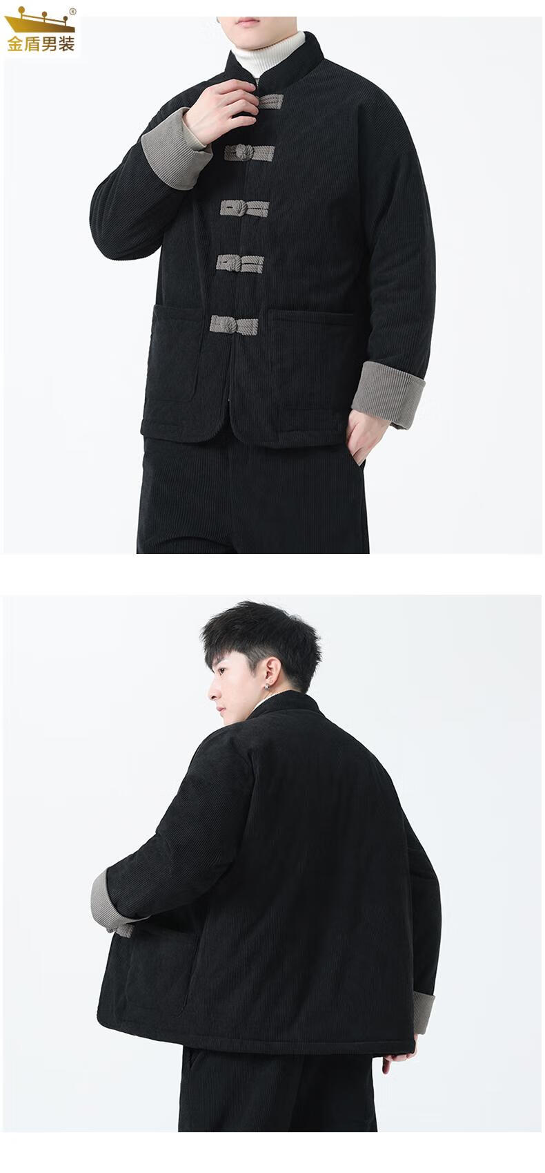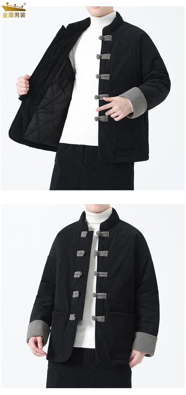 金盾中国风灯芯绒棉衣男士冬季加厚棉袄大码棉服盘扣潮新中式唐装外套 MY2310卡其色 XL 140-150斤