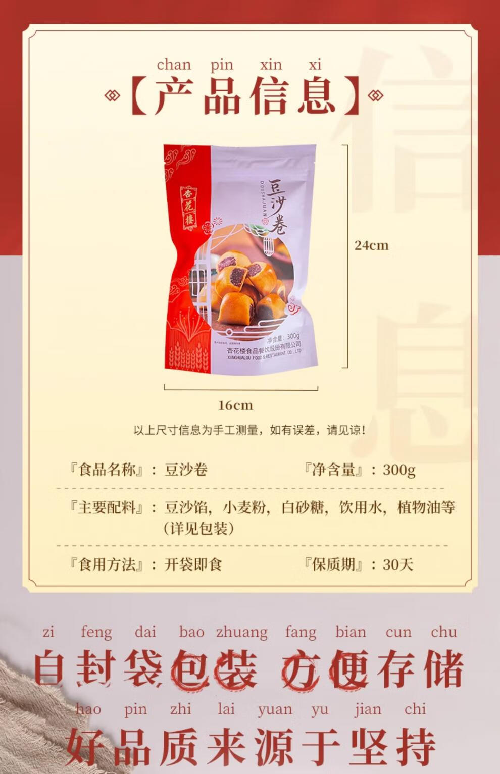 杏花楼特产豆沙面包小糕点豆沙卷红豆馅小面包点心小零食伴手礼 豆沙卷 300g 300g