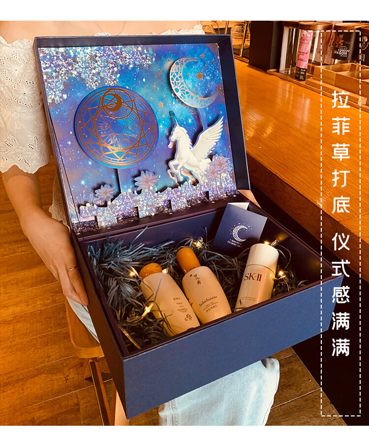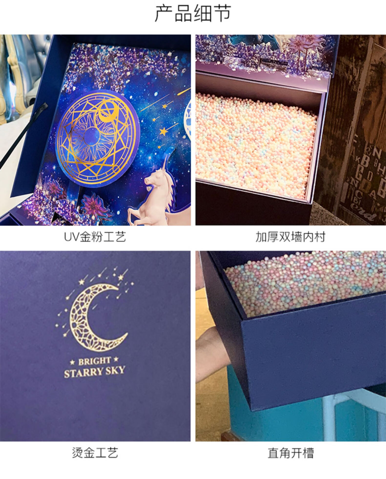 礼盒空盒礼物盒大礼盒包装盒高级生日礼品盒空盒子送女友仪式感七 礼盒+礼袋+拉菲草 璀璨星空内尺寸30*20*10cm