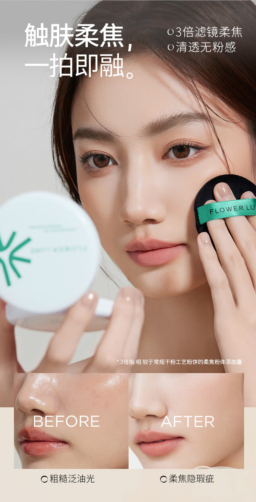 Flowerlure花间颂粉饼定妆控油持久遮瑕修容散粉不脱妆干皮油皮 柔肤色【适合小麦偏黑肤色】*1盒