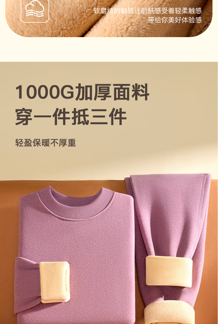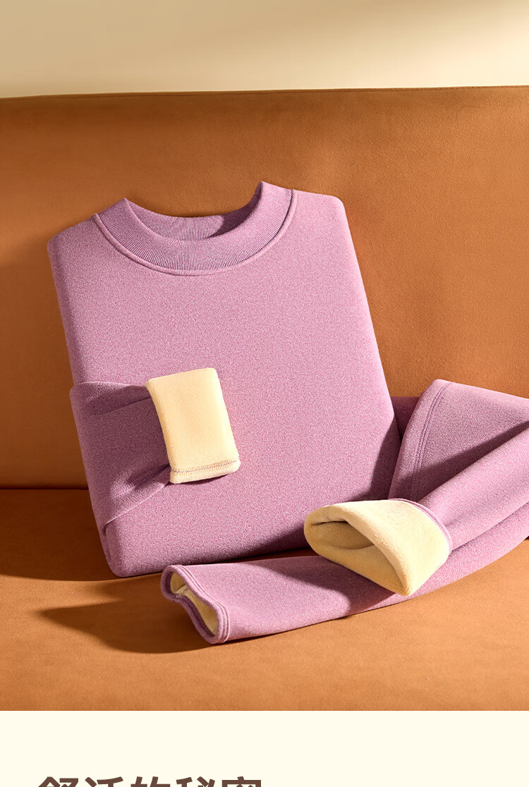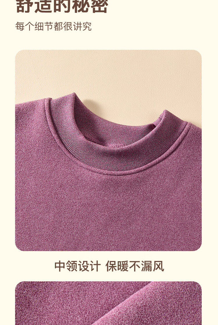 欧迪芬妈妈保暖内衣女士秋衣秋裤套装加绒加厚中老年人半高领防寒仿德绒