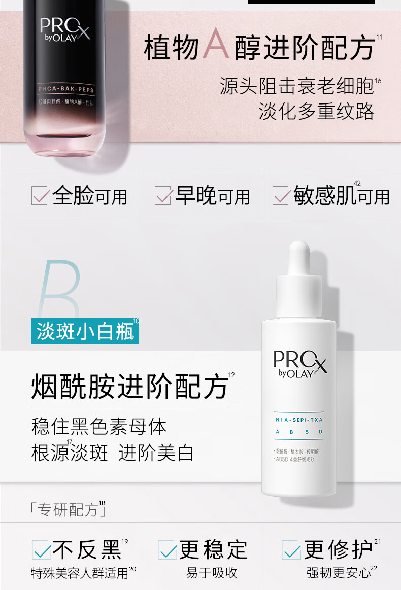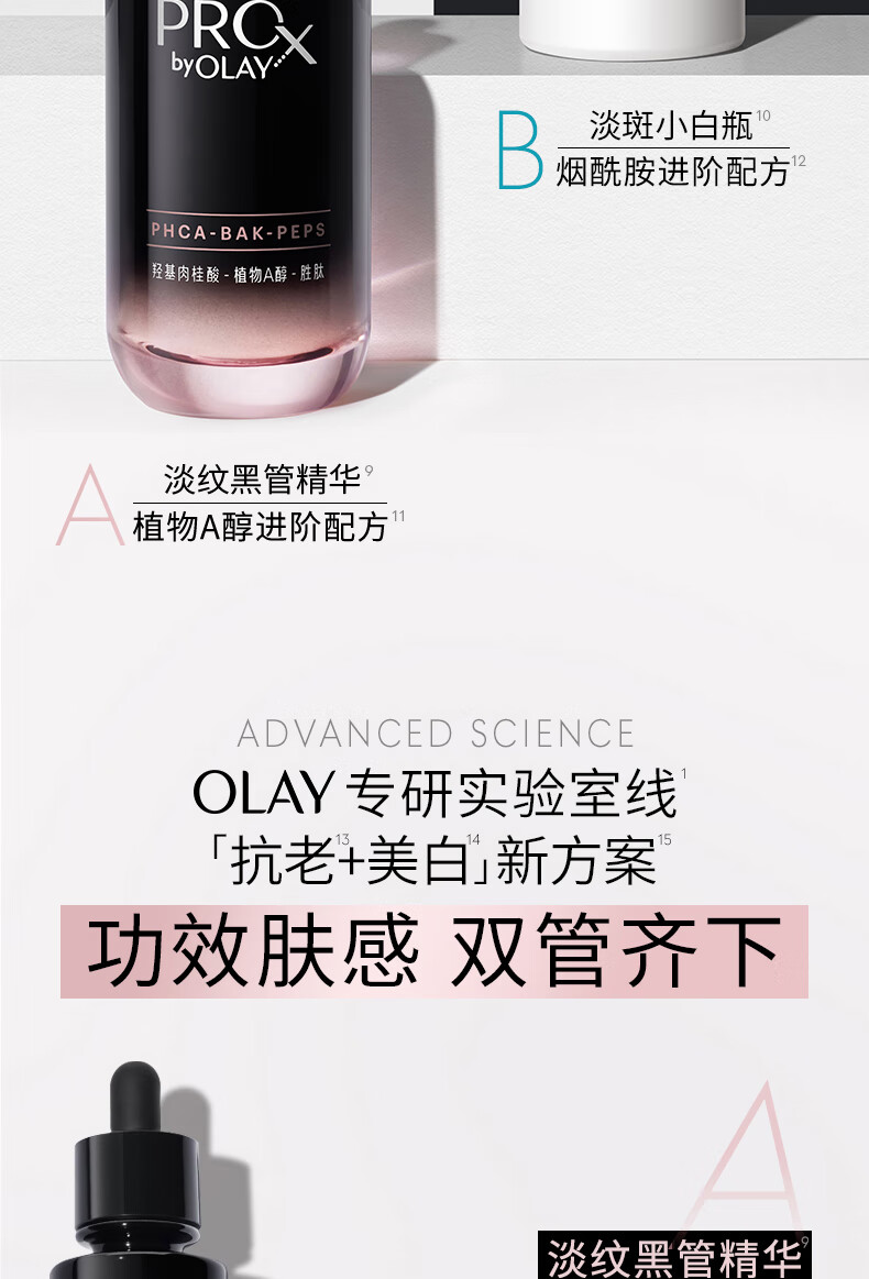 玉兰油(OLAY)淡斑小白瓶淡纹黑管面部精华液美白抗皱护肤品套装新年礼物送女友