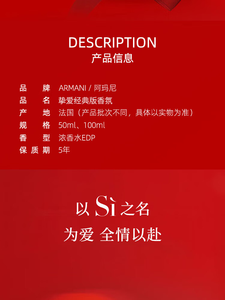 阿玛尼(ARMANI)挚爱女士浓香水经典版50ml 果香花香调 生日新年礼物自营轻奢
