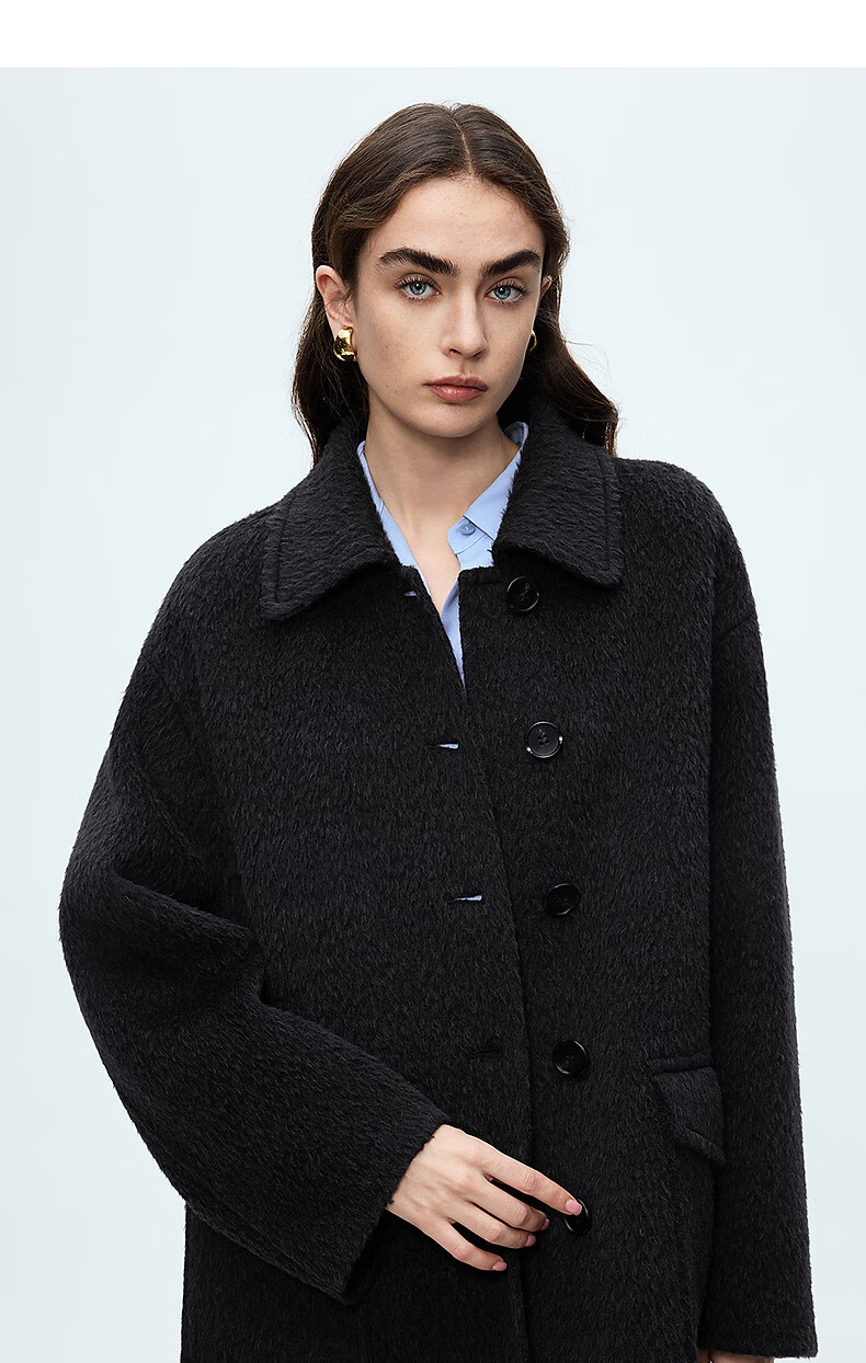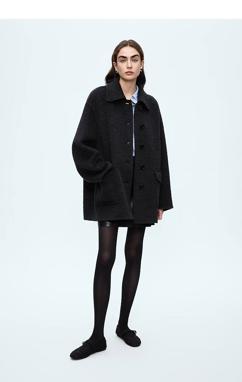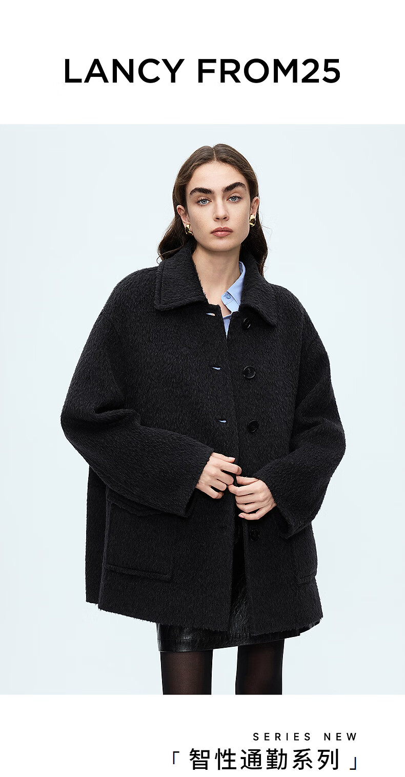 朗姿羊毛翻领挺阔时尚毛呢外套优雅百搭呢子大衣女2025年冬季新款 深灰色 S