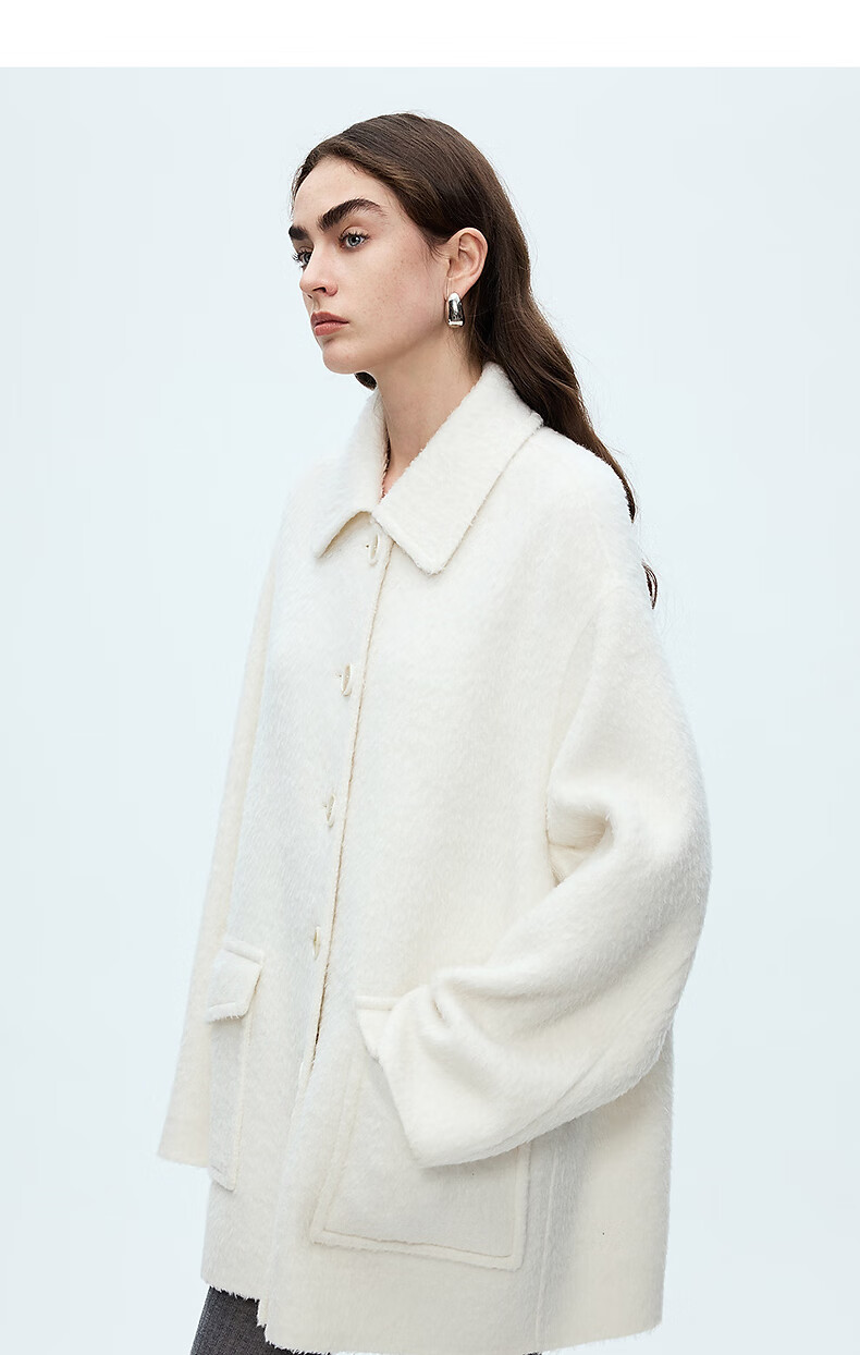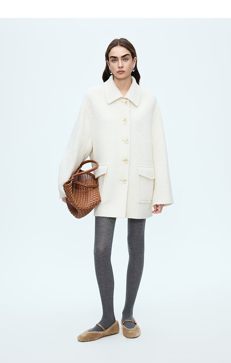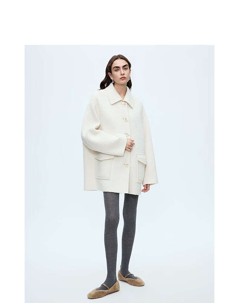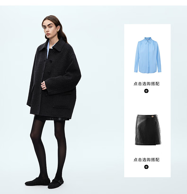 朗姿羊毛翻领挺阔时尚毛呢外套优雅百搭呢子大衣女2025年冬季新款 深灰色 S