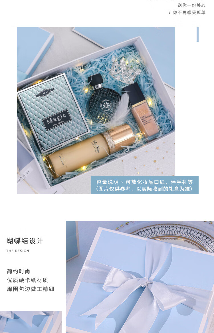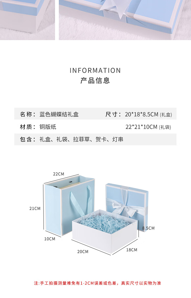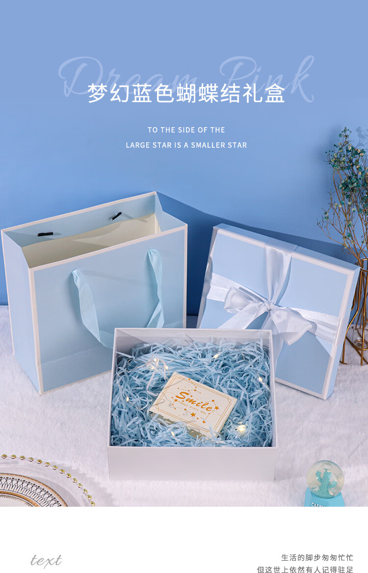 TaTanice礼盒空盒新年礼物生日礼物盒伴手礼包装盒蓝色蝴蝶结中号