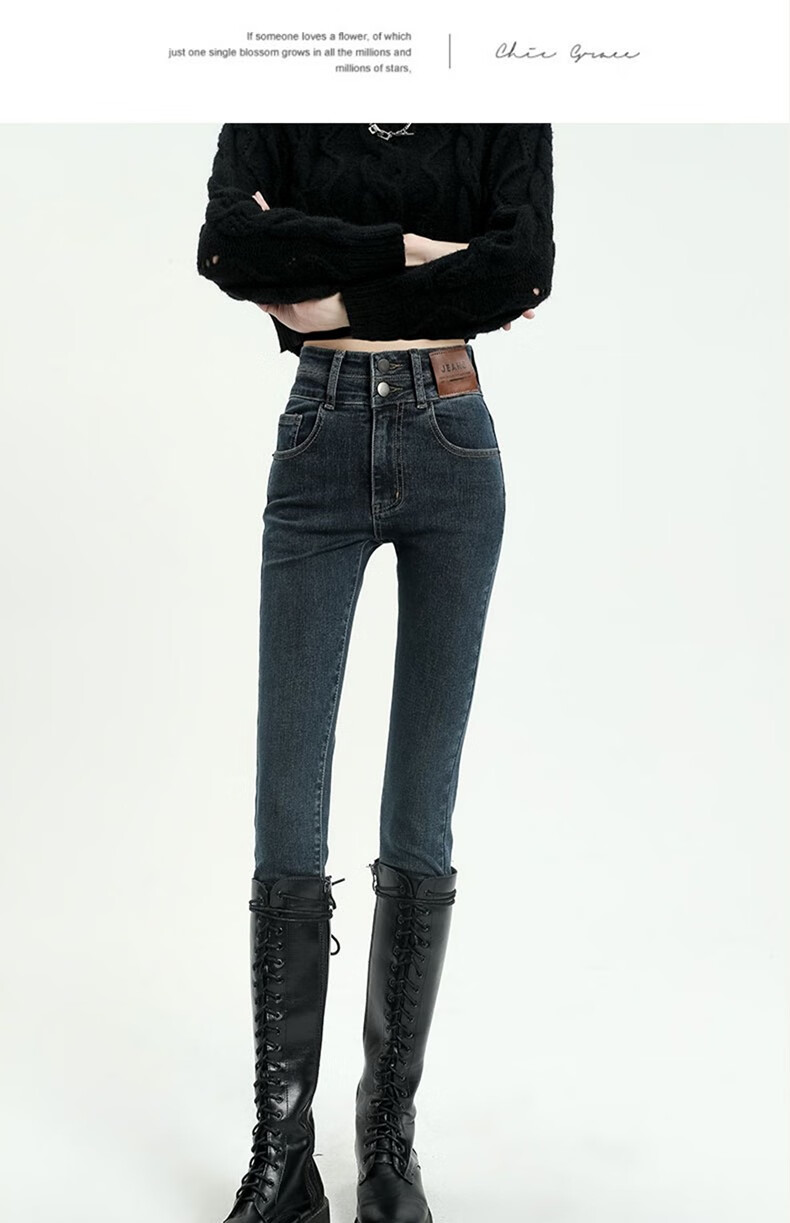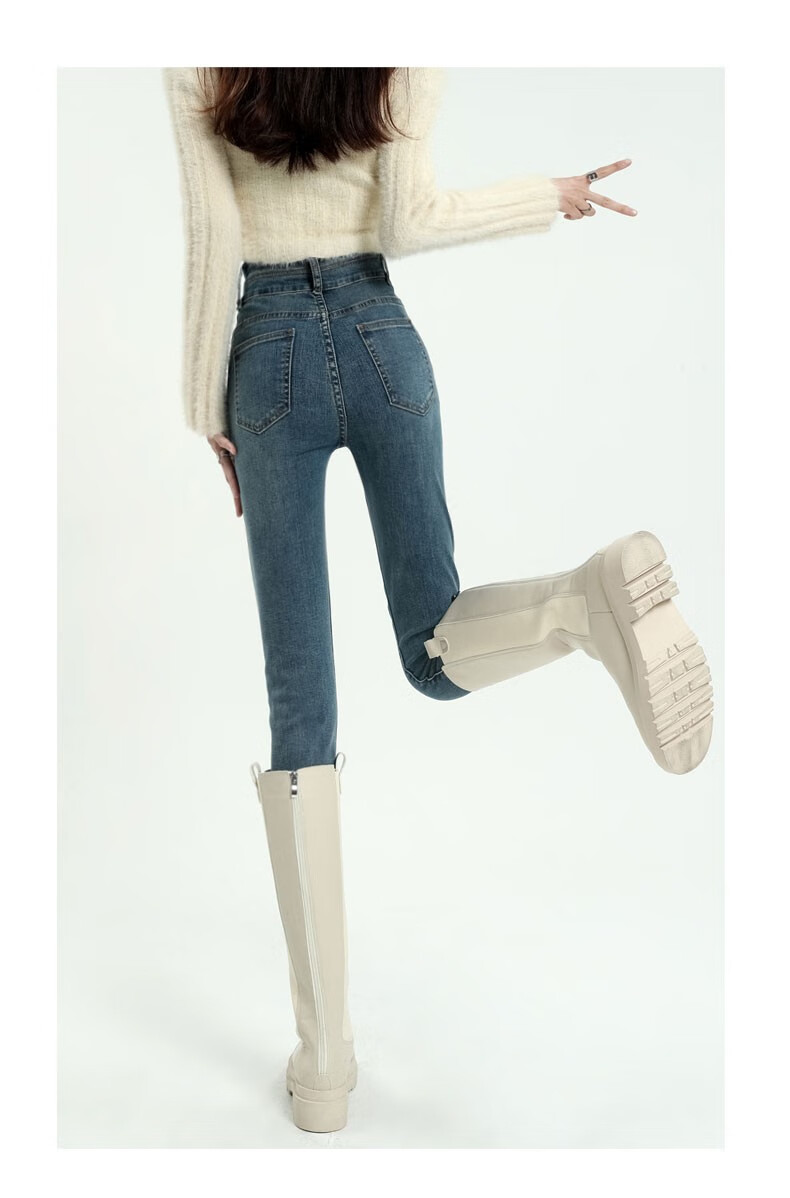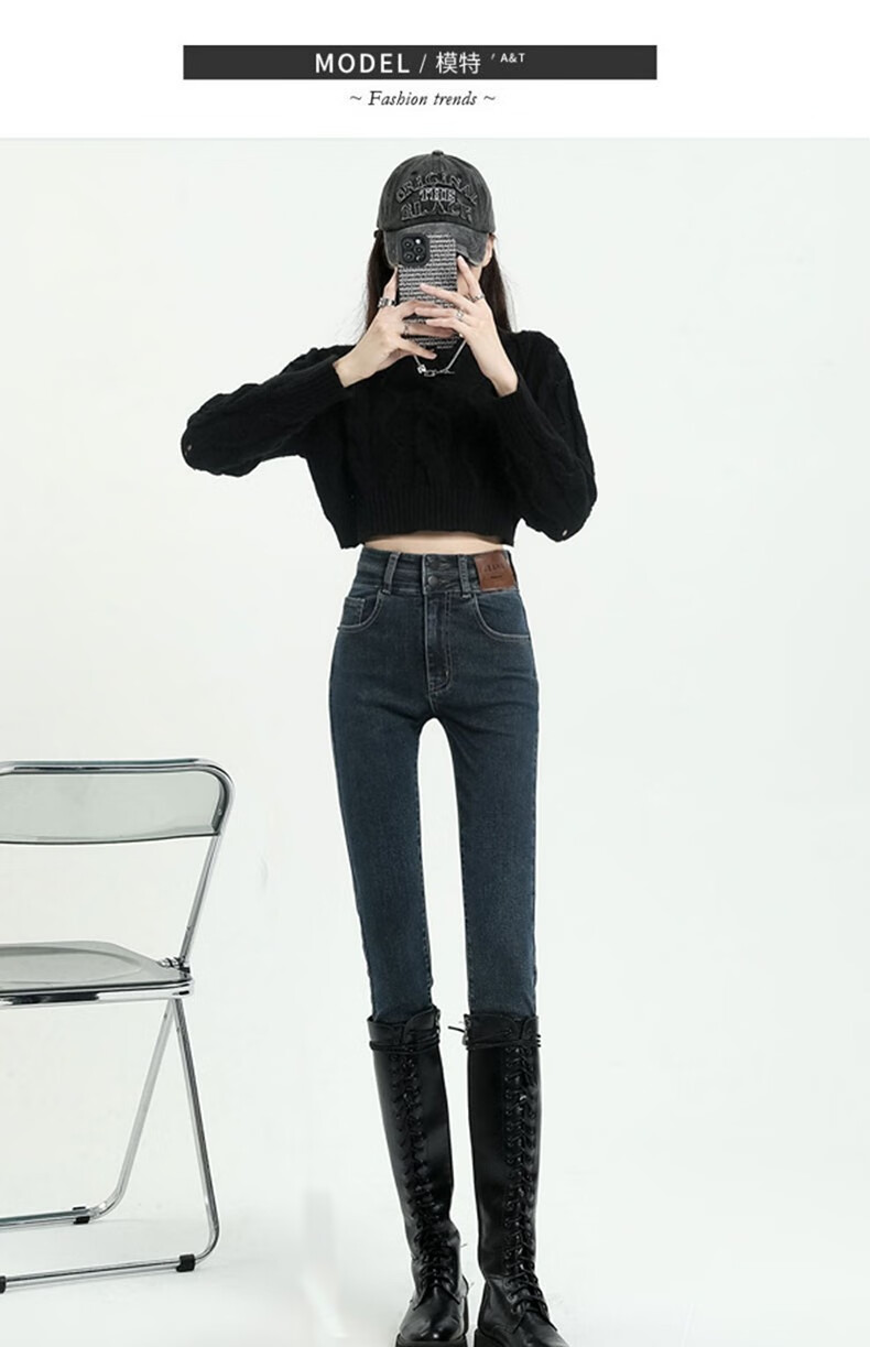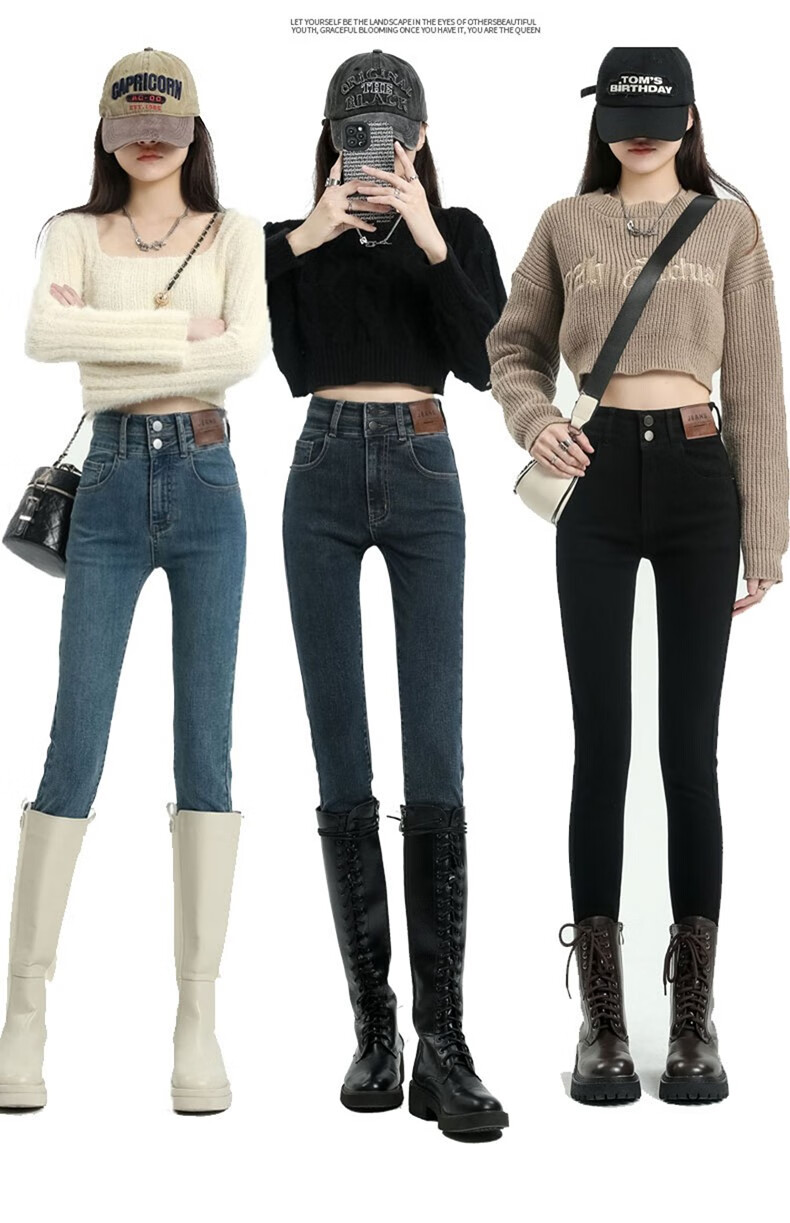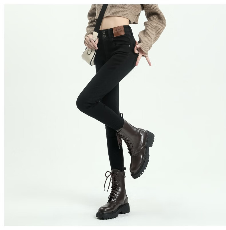 红蜻蜓牛仔裤女2025年秋季新款女装高腰修身女士铅笔裤小脚休闲长裤子女 黑色单裤 29
