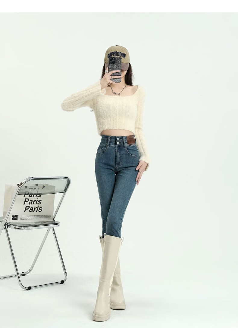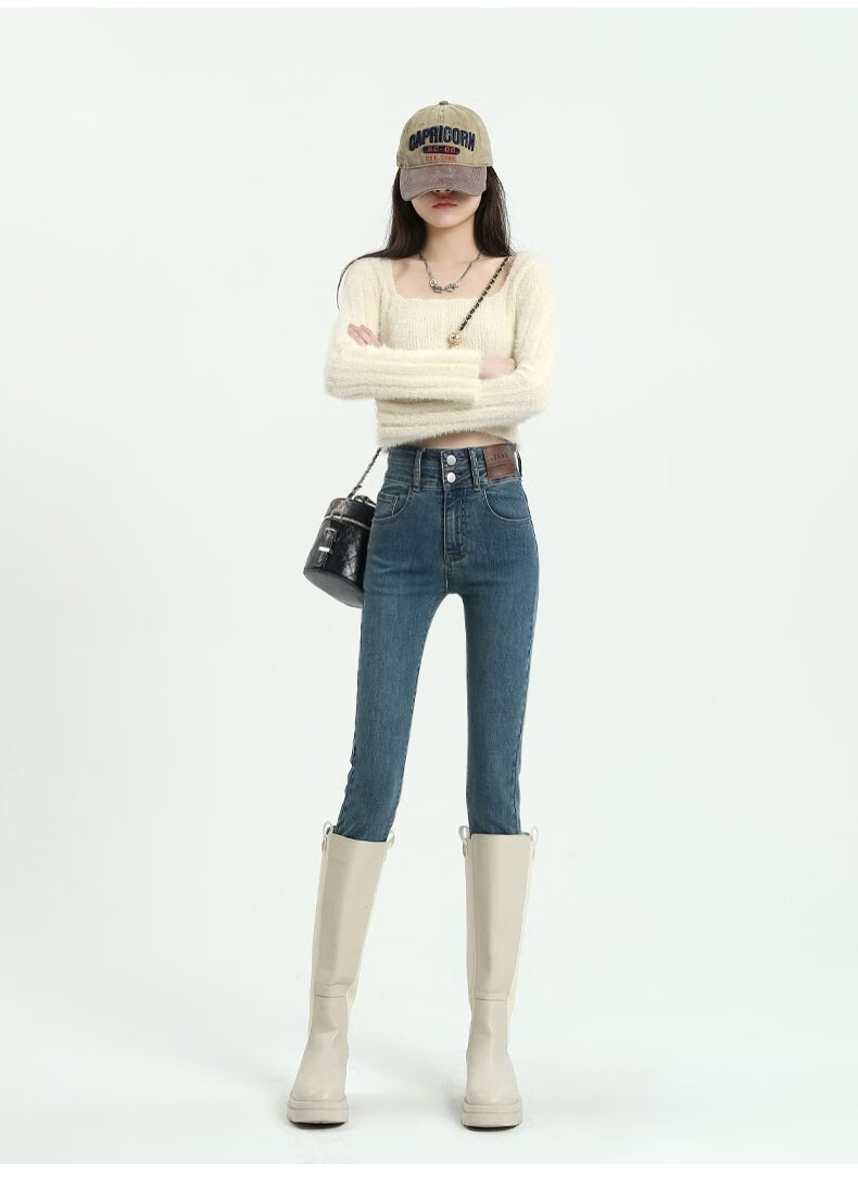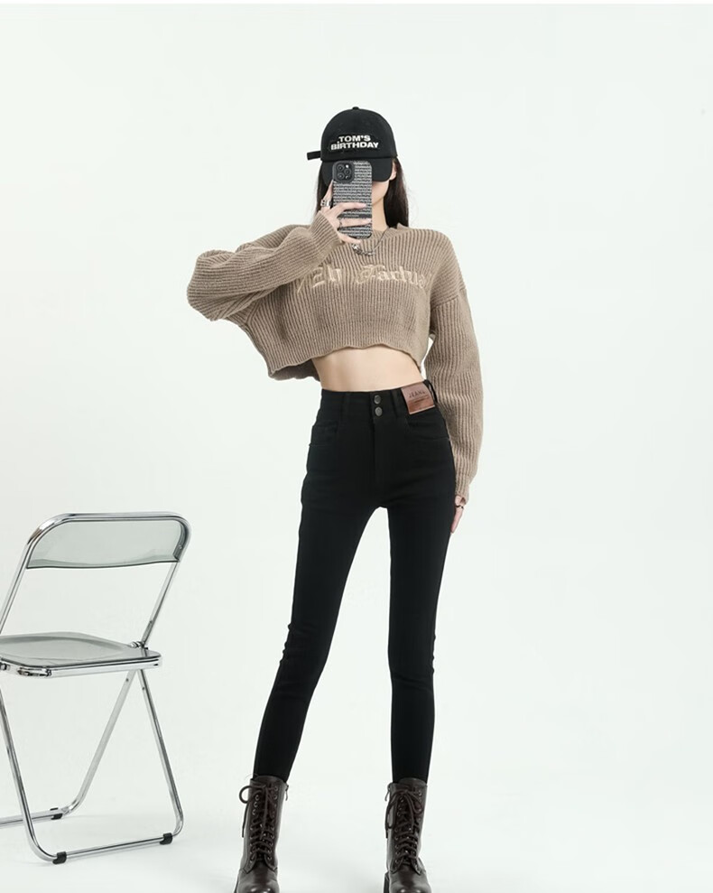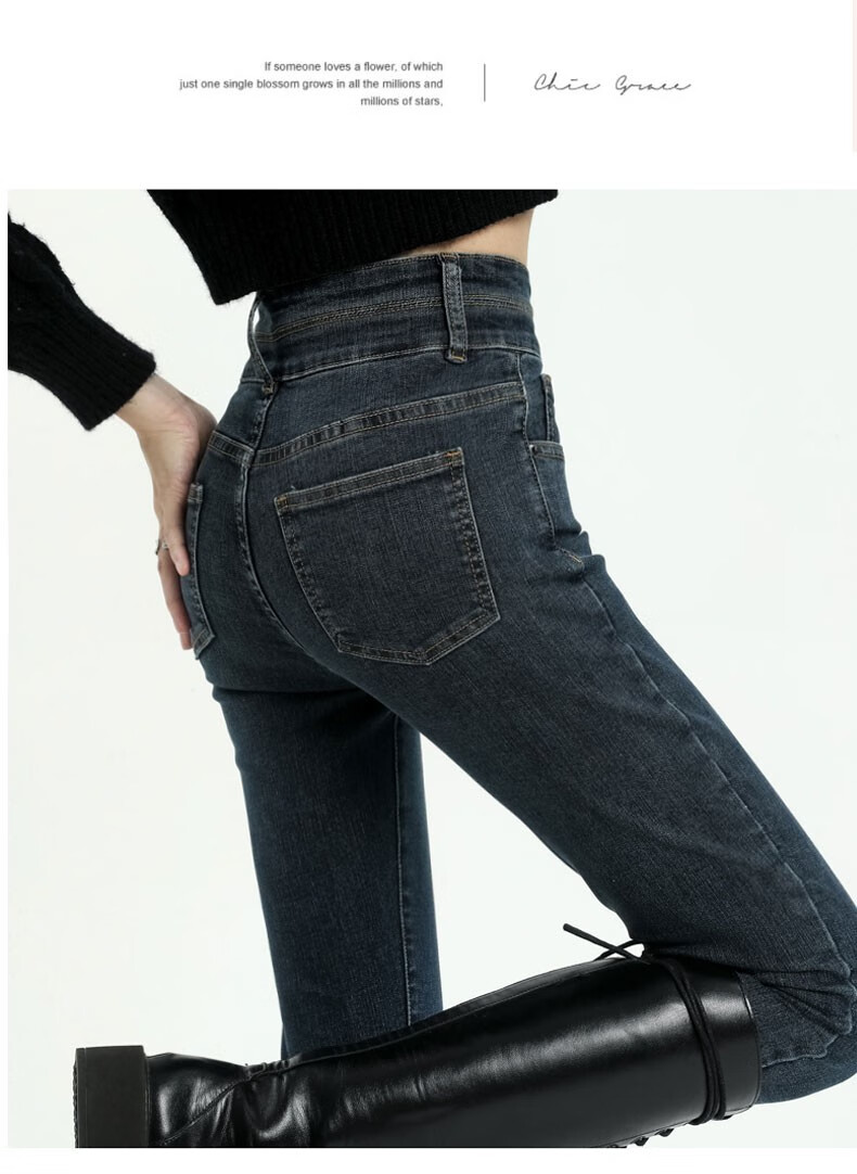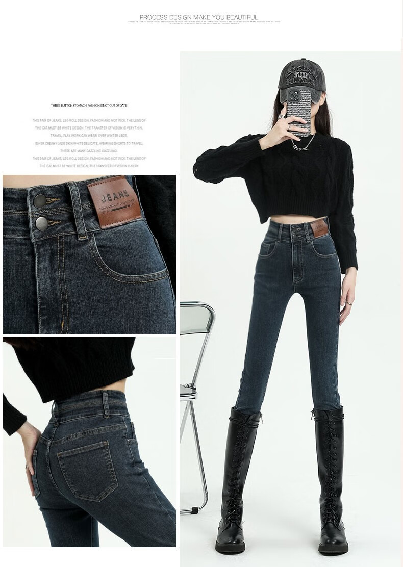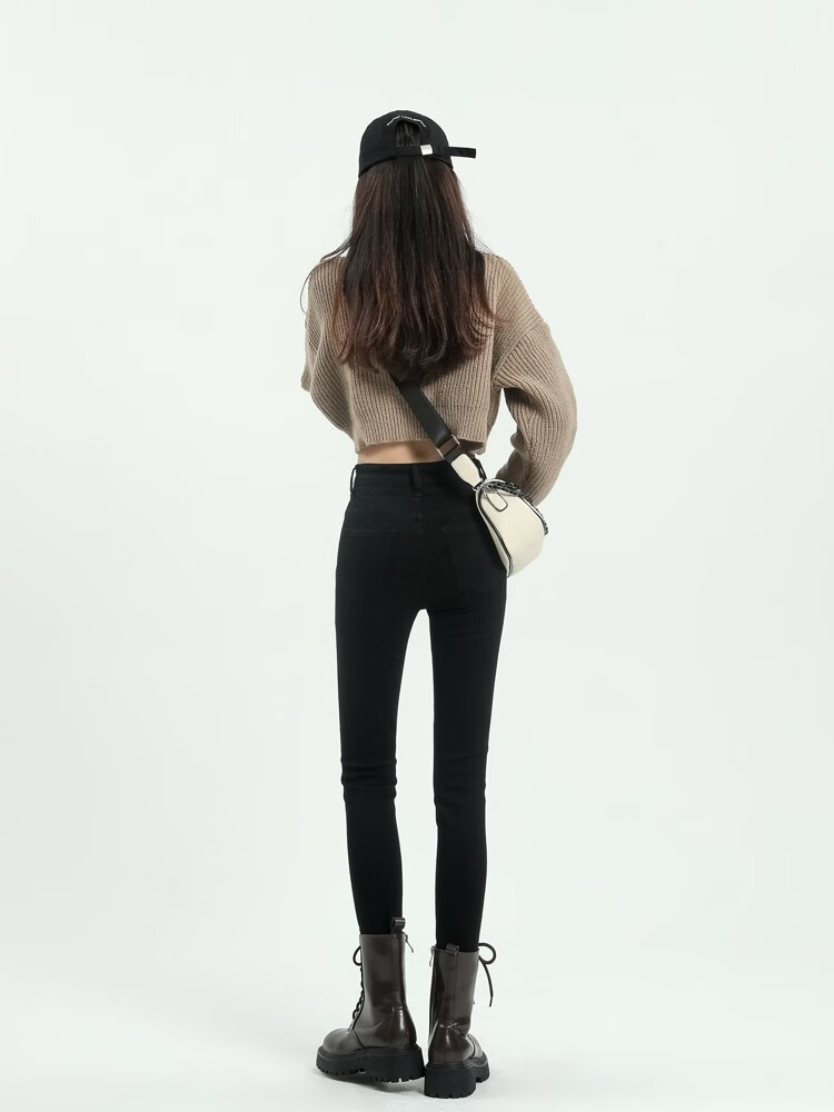红蜻蜓牛仔裤女2025年秋季新款女装高腰修身女士铅笔裤小脚休闲长裤子女 黑色单裤 29