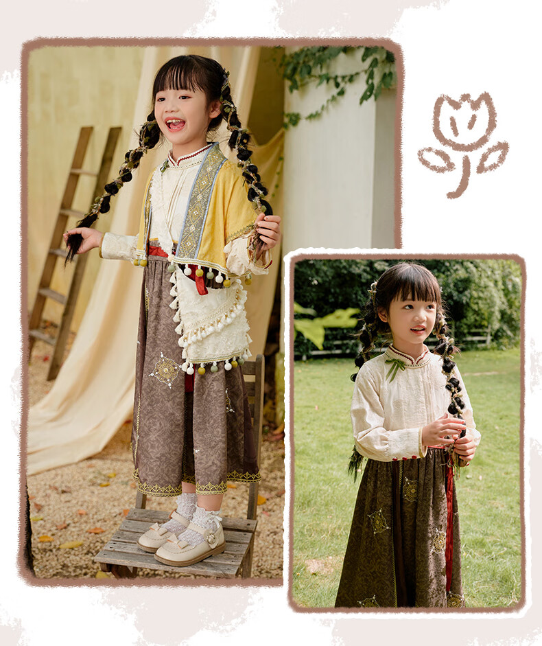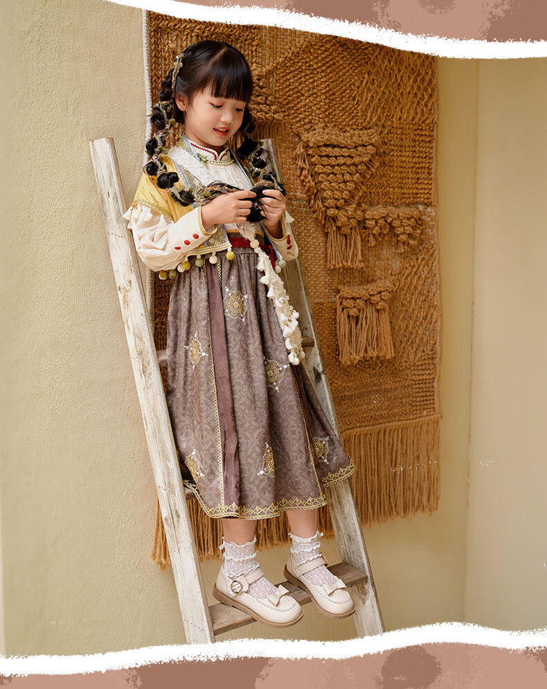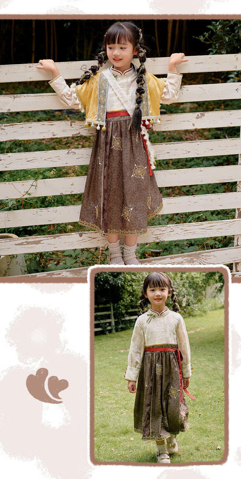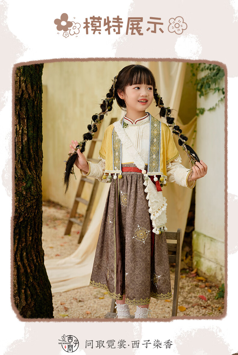 西子问【西子问】汉服女童秋款新中式国风两件套儿童西域风套装牧羊少女 黄色-套装/不含包包 110