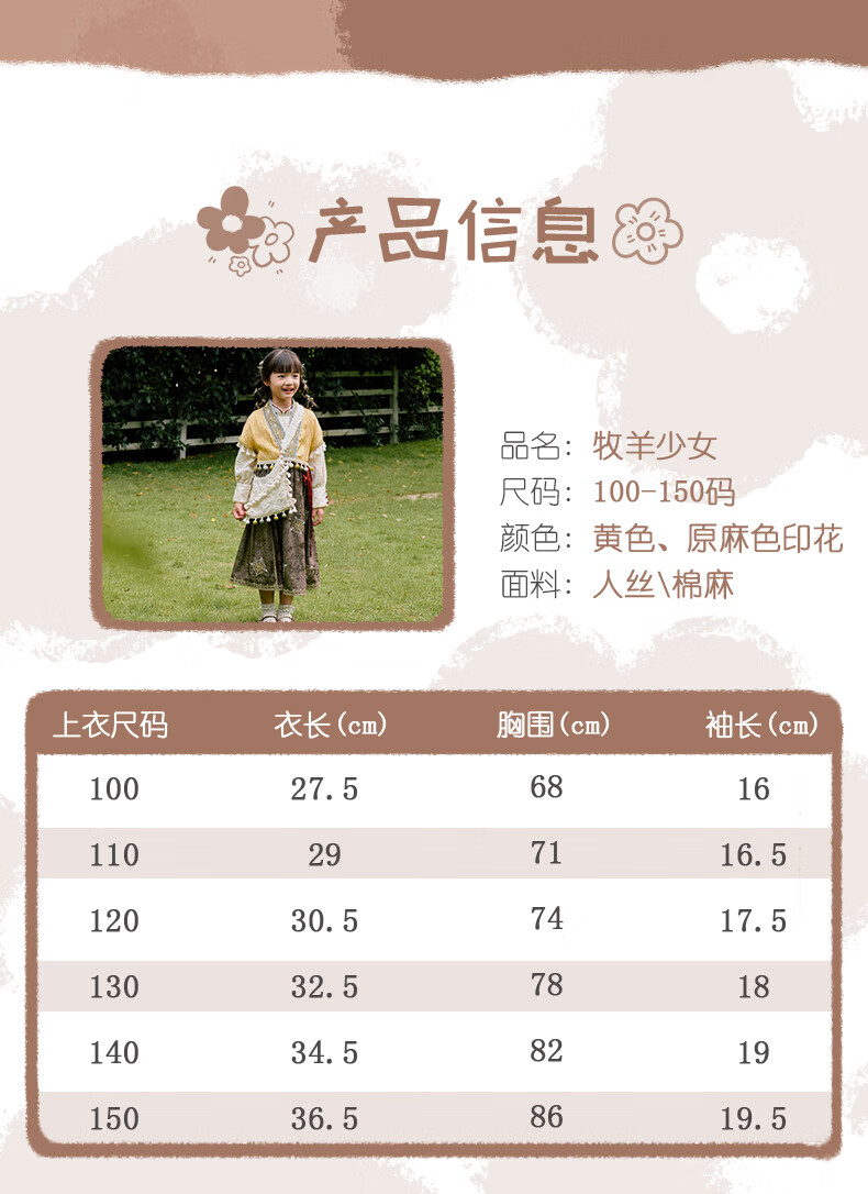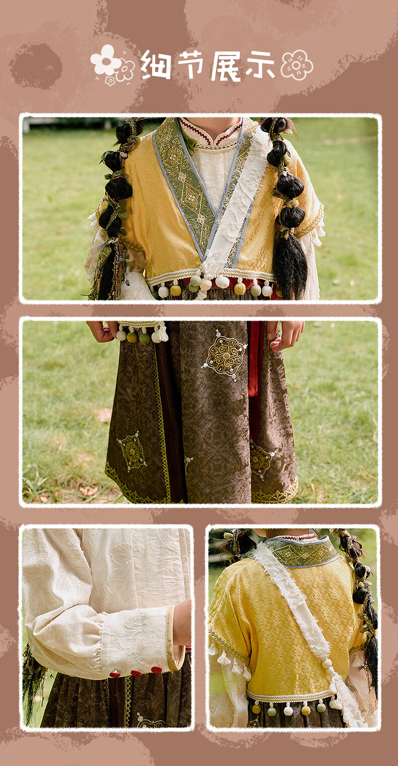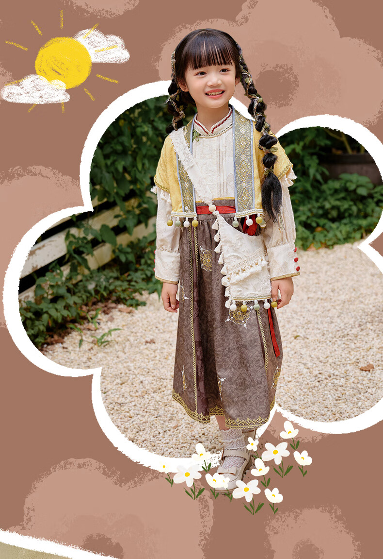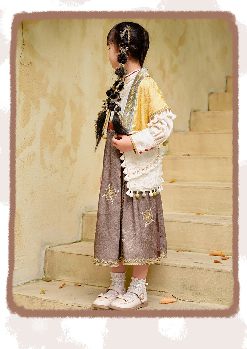 西子问【西子问】汉服女童秋款新中式国风两件套儿童西域风套装牧羊少女 黄色-套装/不含包包 110