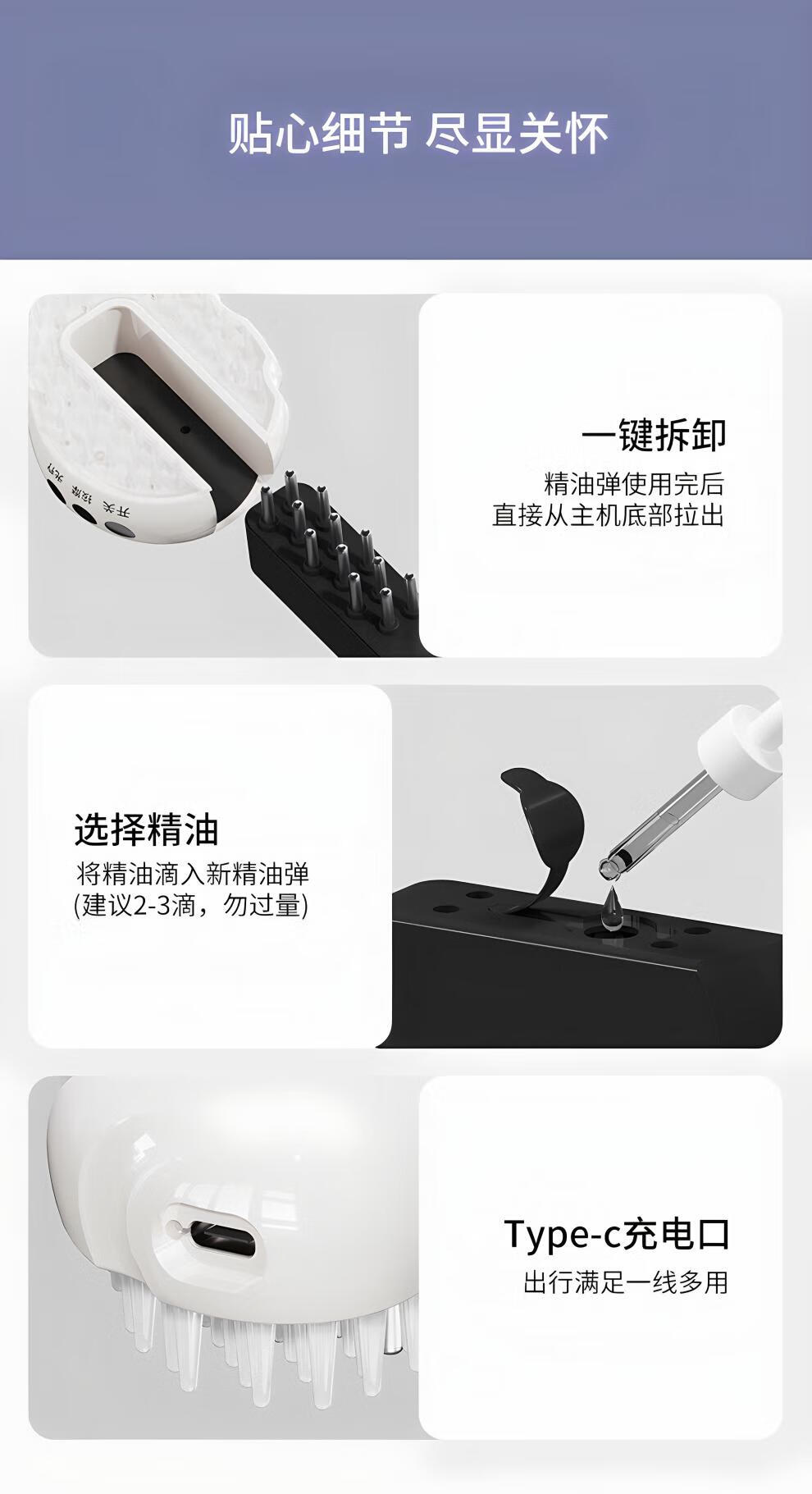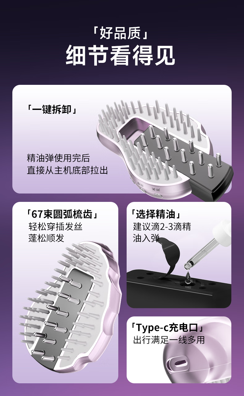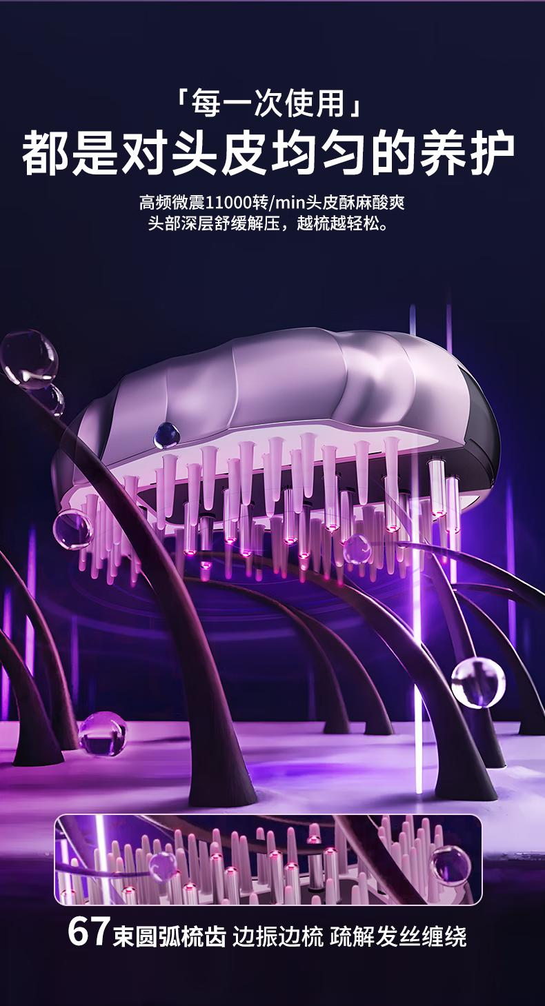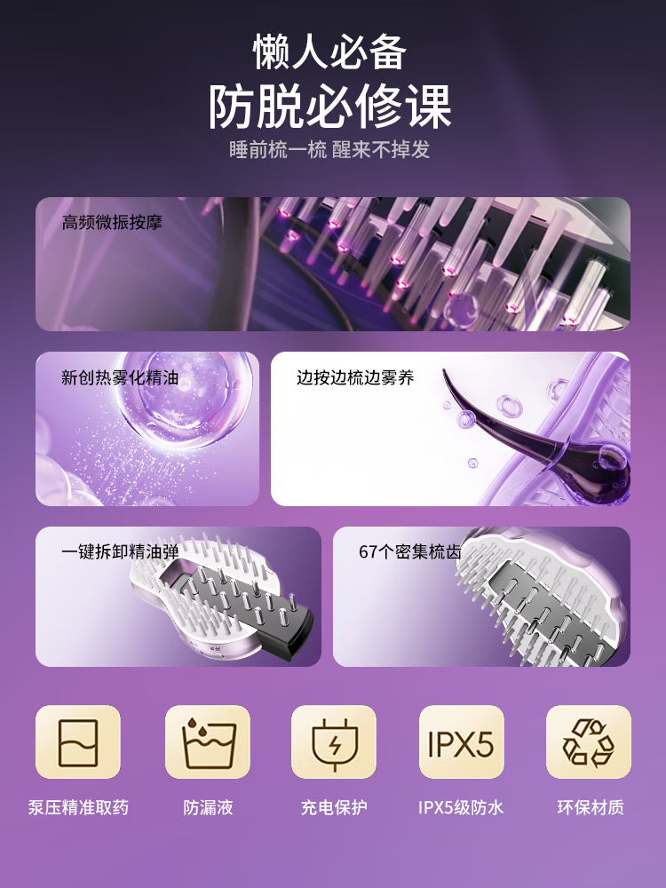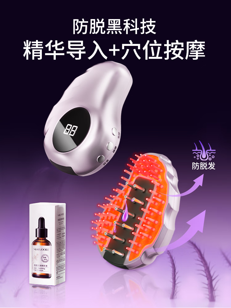 头发上药神器导液按摩梳红光液导入仪护发精油米诺头皮上药器 典雅紫