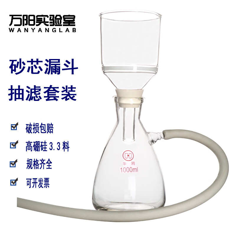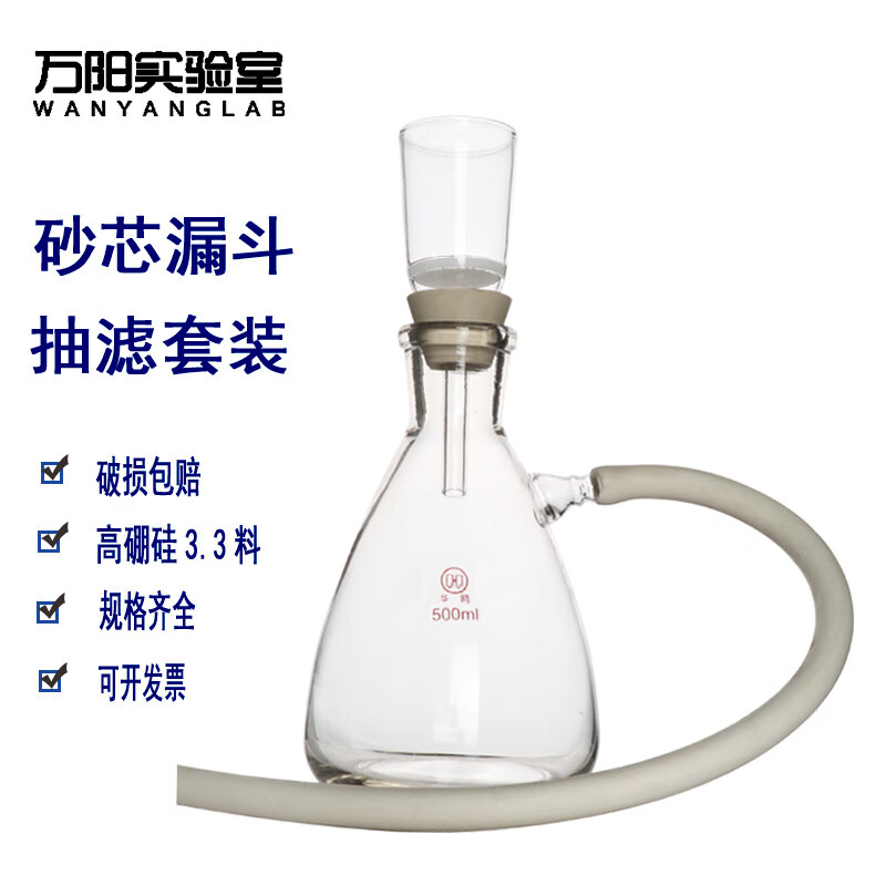 真空抽滤装置玻璃砂芯漏斗30/60/100/250/500/1000ml垂熔漏斗上嘴抽滤瓶套装实验室 35ml砂芯漏斗+125ml抽滤瓶+胶塞+胶管