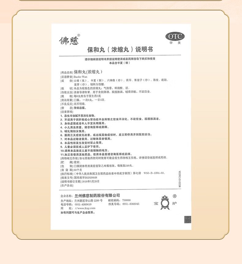 佛慈 保和丸 (浓缩丸)240丸 肠胃消化 用于消食导滞和胃 食积停滞 脘腹胀痛 食欲不振 消化不良