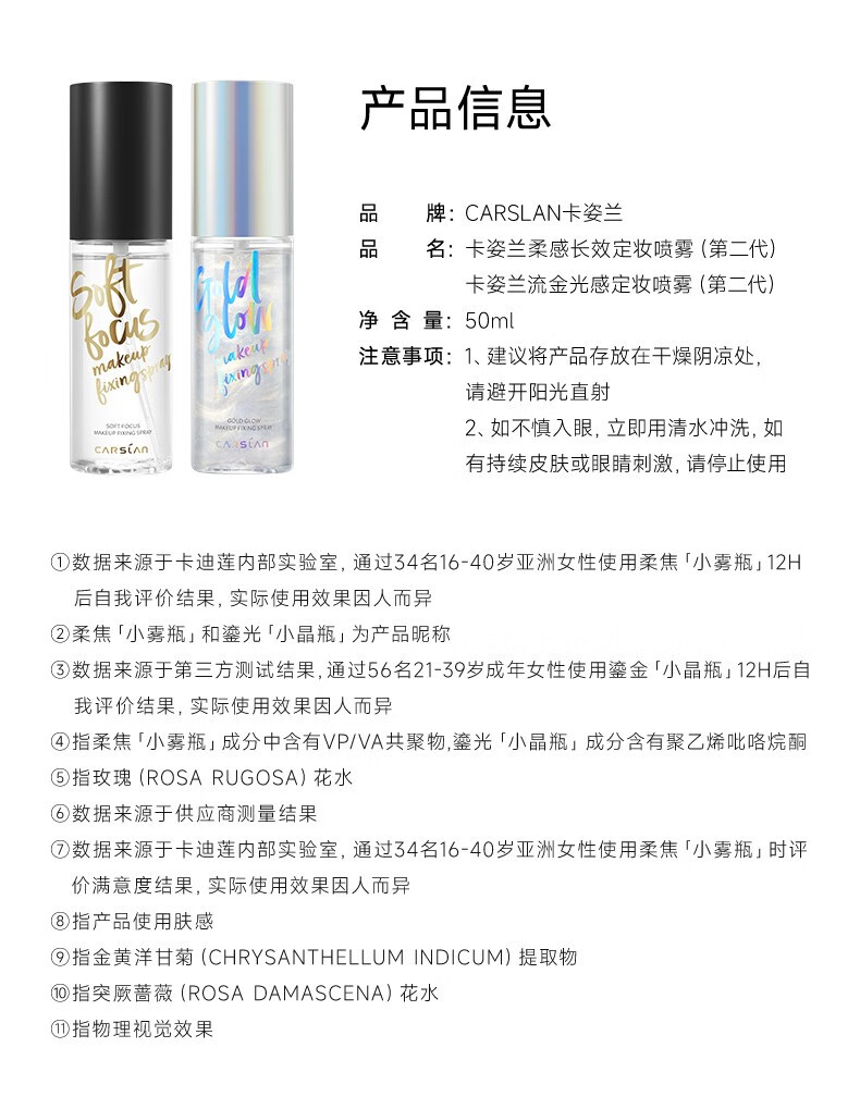 卡姿兰(Carslan)定妆喷雾女三效合一持久不脱妆控油干皮保湿补水喷雾防水防汗小样 小雾瓶 50ml #【雾面哑光肌】