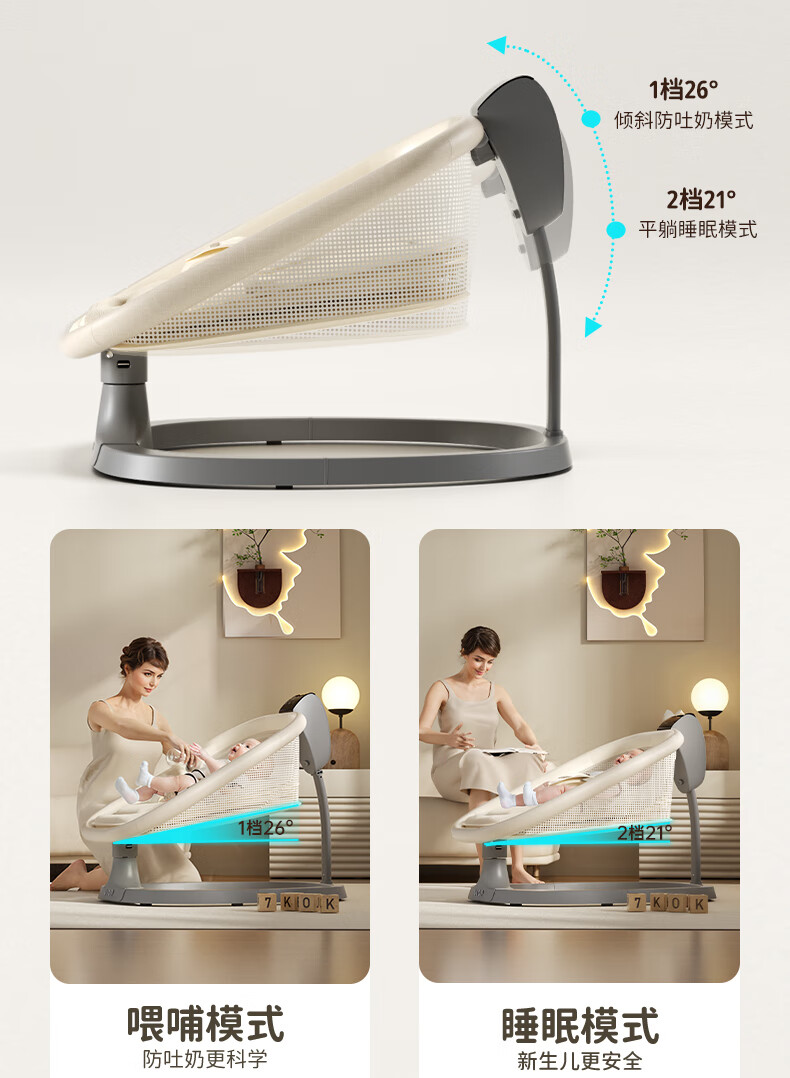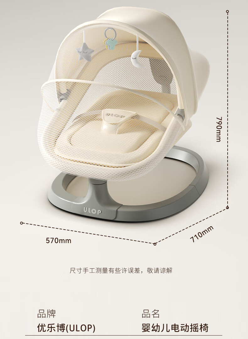 优乐博(ULOP)电动婴儿摇摇椅哄娃神器宝宝摇椅新生儿见面礼实用婴儿用品0-6月 婴幼儿哄睡神器婴儿摇篮摇摇床-K 可躺可睡高承重[蚊帐+玩偶+睡垫]