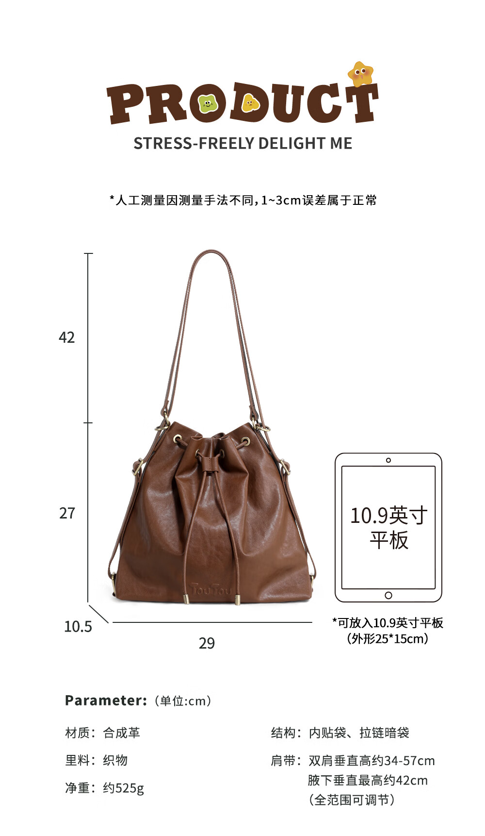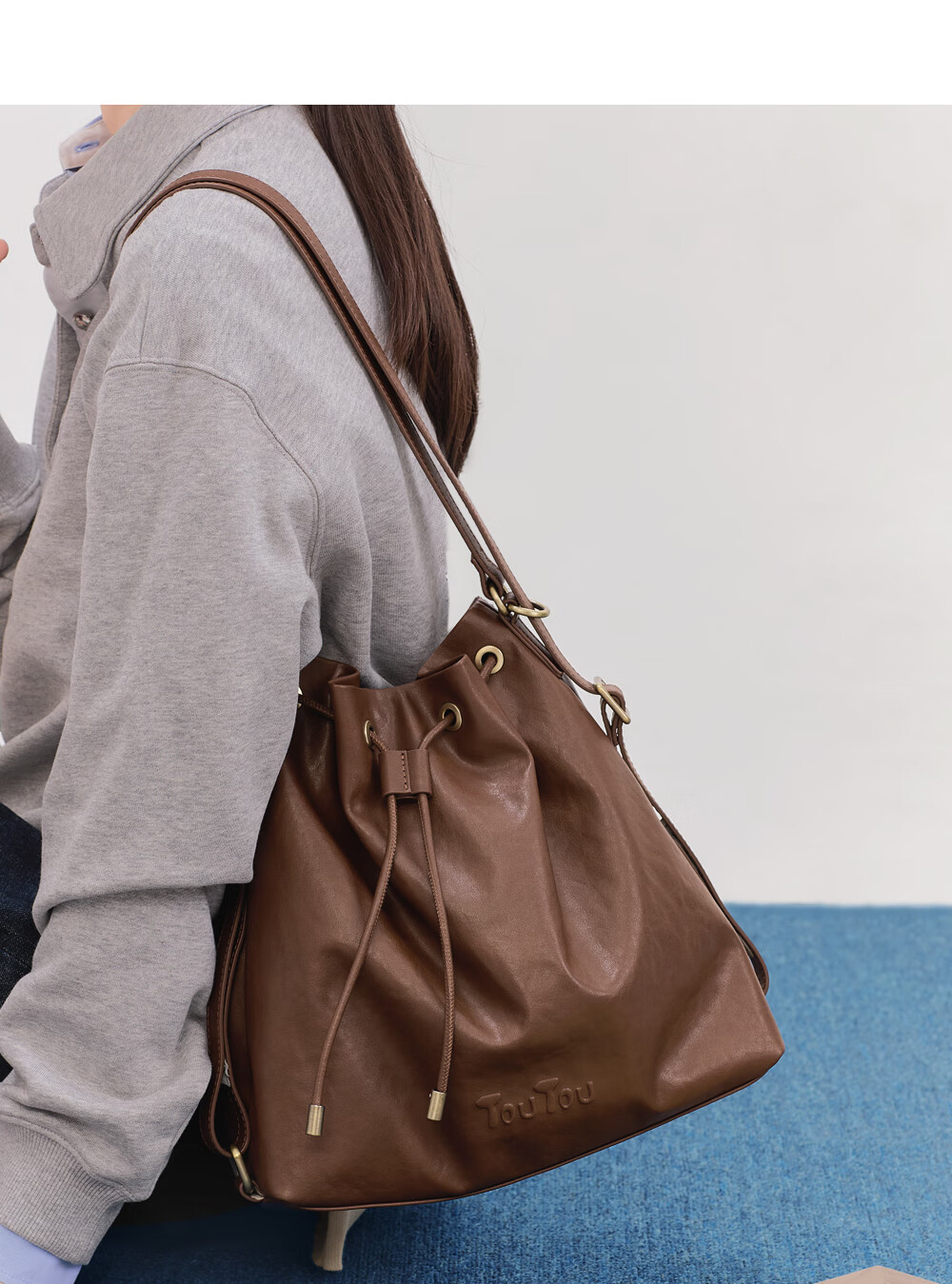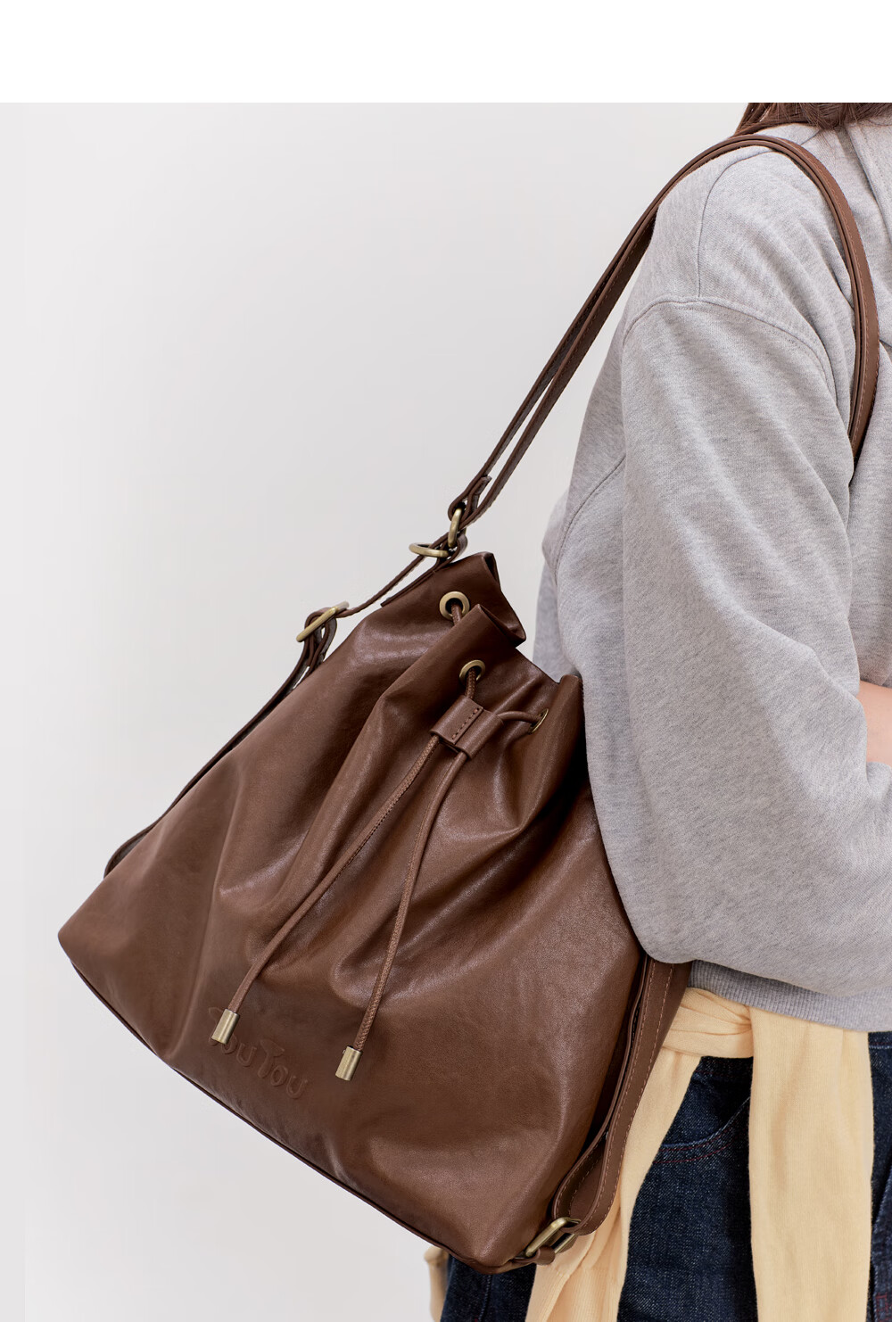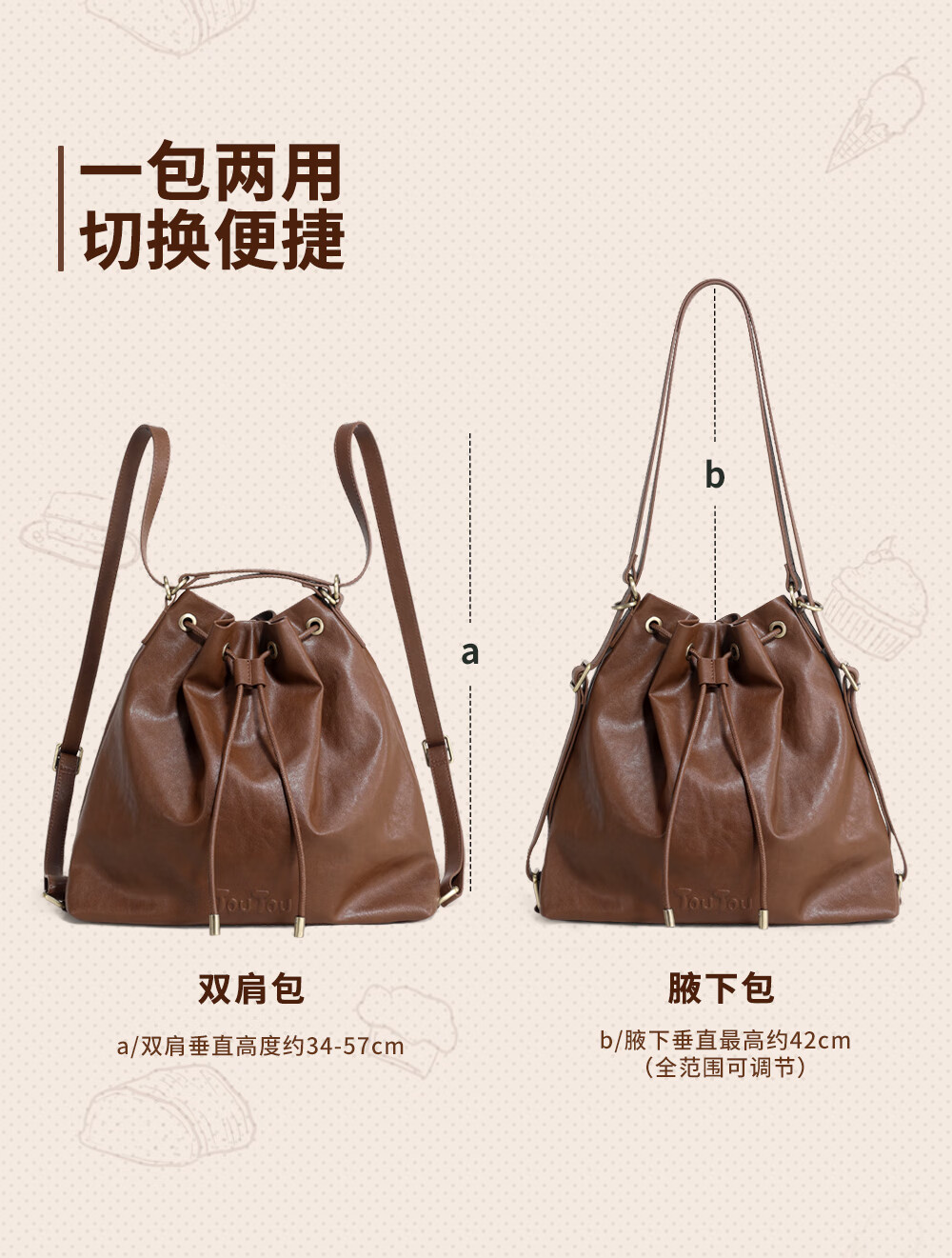 toutou新款水桶包轻便大容量托特一包多用腋下包双肩包生日新年马年礼物