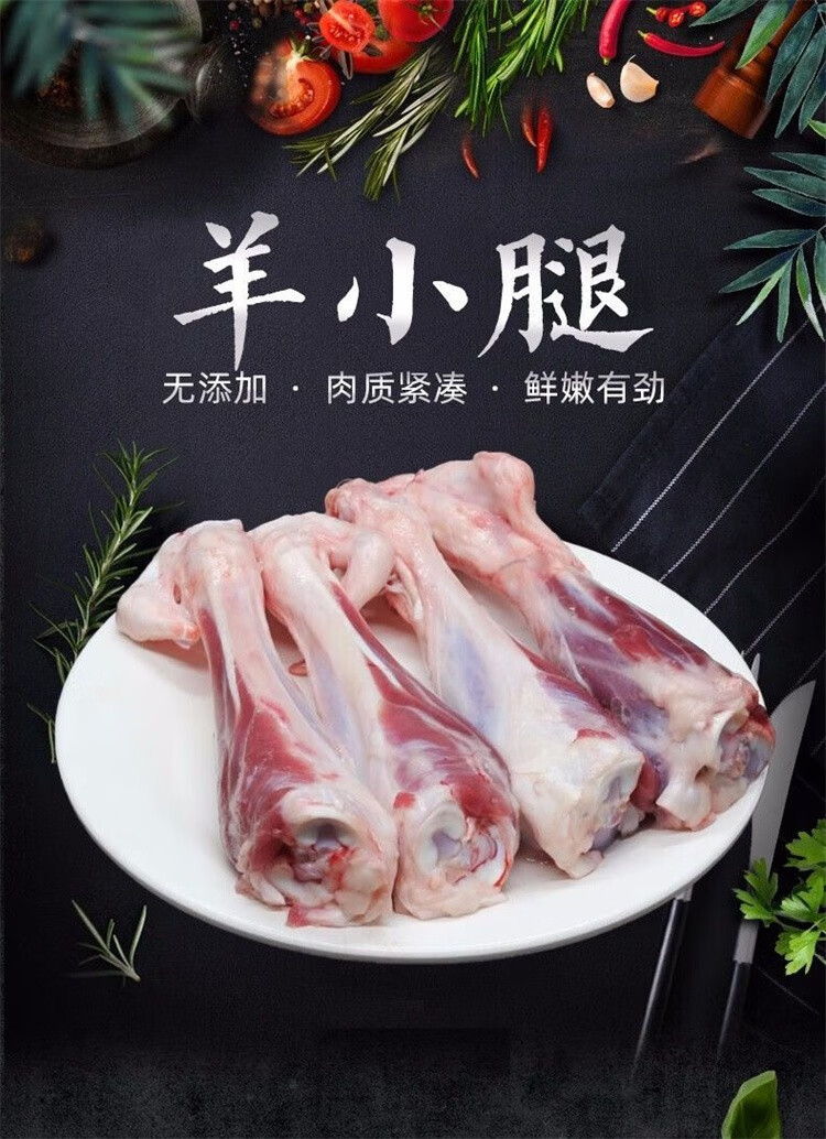 羊小腿新鲜整只羊小腿烧烤小羊腿羊腱子羔羊后小腿 法式战斧羊排 500g