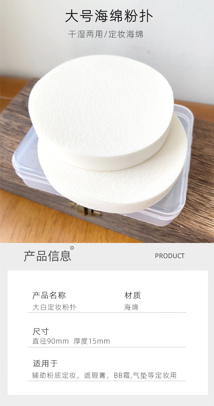 AI·EVELYN大号粉扑干湿两用海绵化妆师影楼培训圆形柔软定妆粉底液气垫2片
