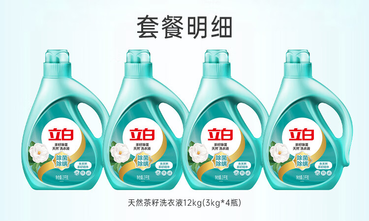 立白天然茶籽洗衣液24斤 除菌除螨抑菌 手洗机洗祛味去渍 整箱家庭装
