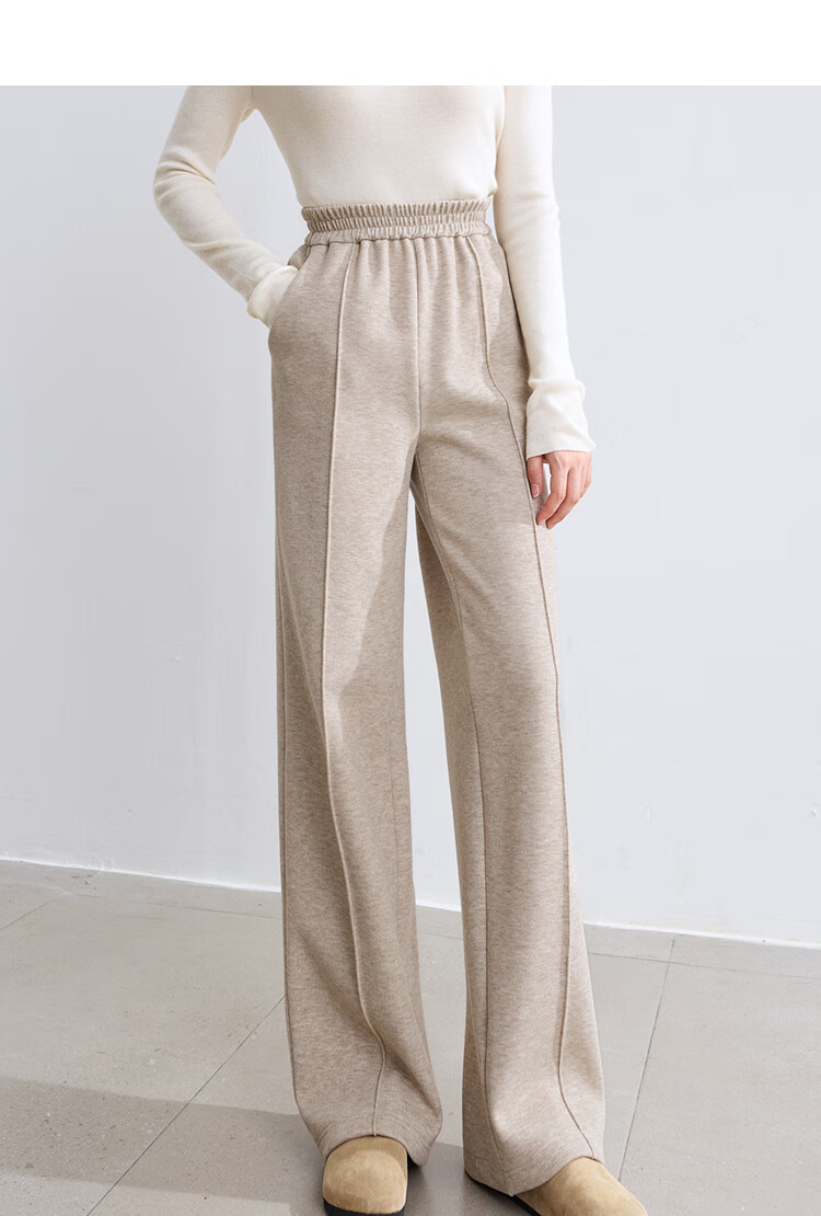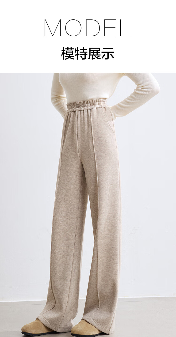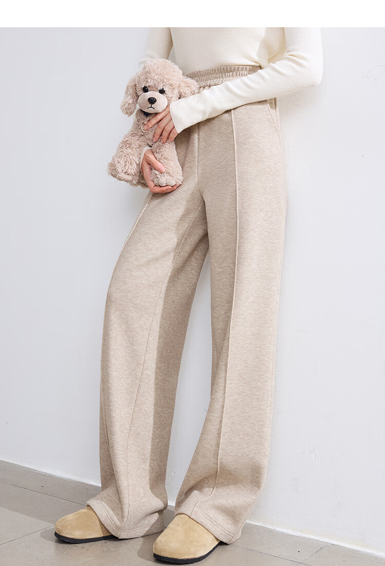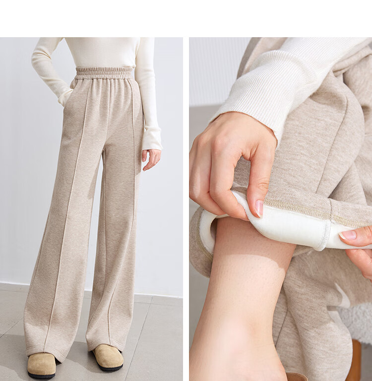 百图betu女装冬季新款休闲裤松紧腰绒底保暖阔腿裤裤子女2410T86 杏色 L