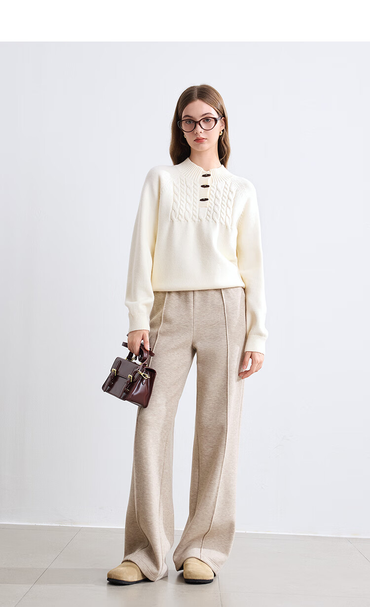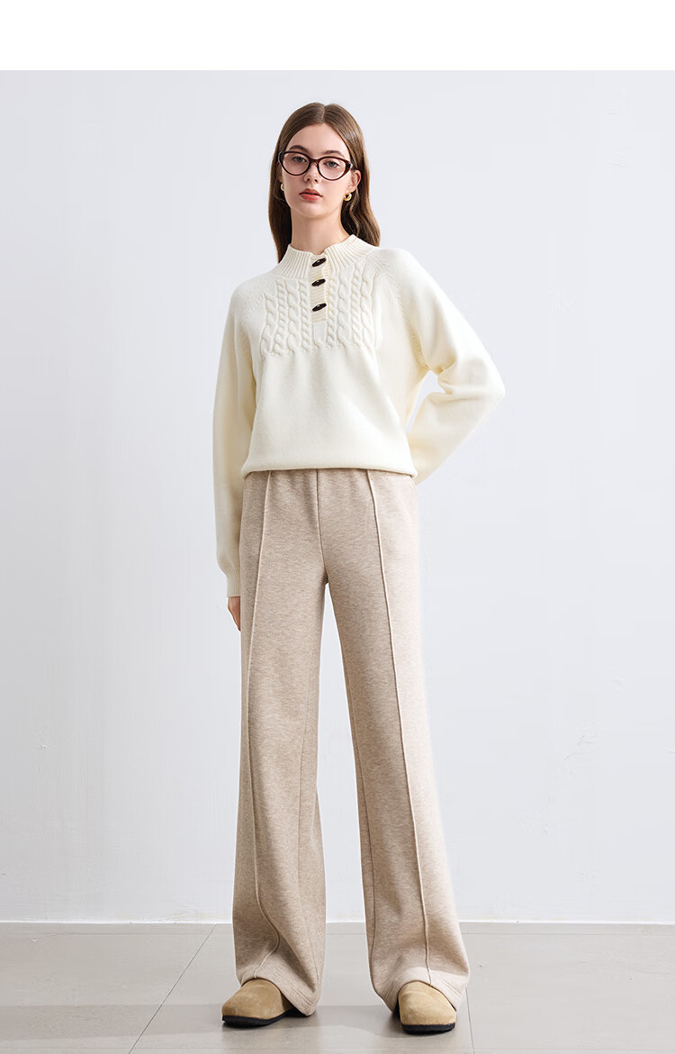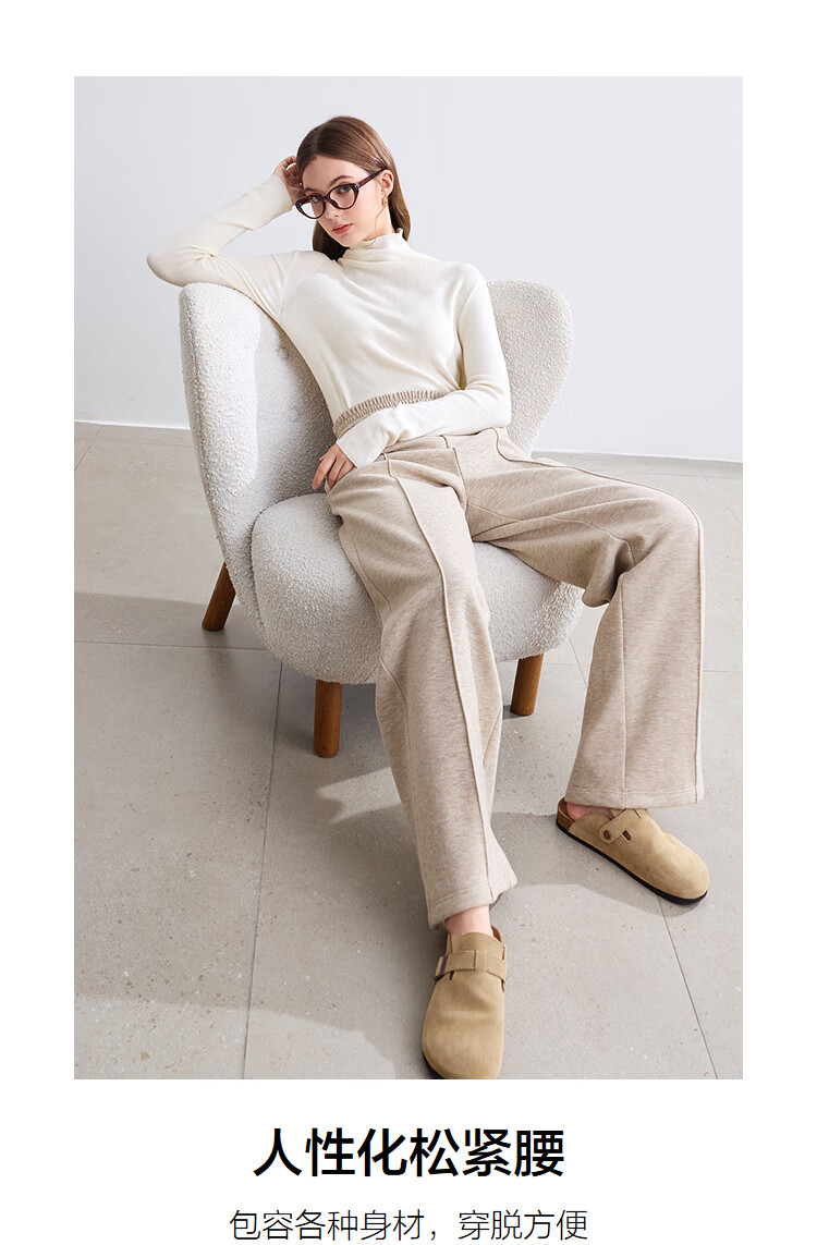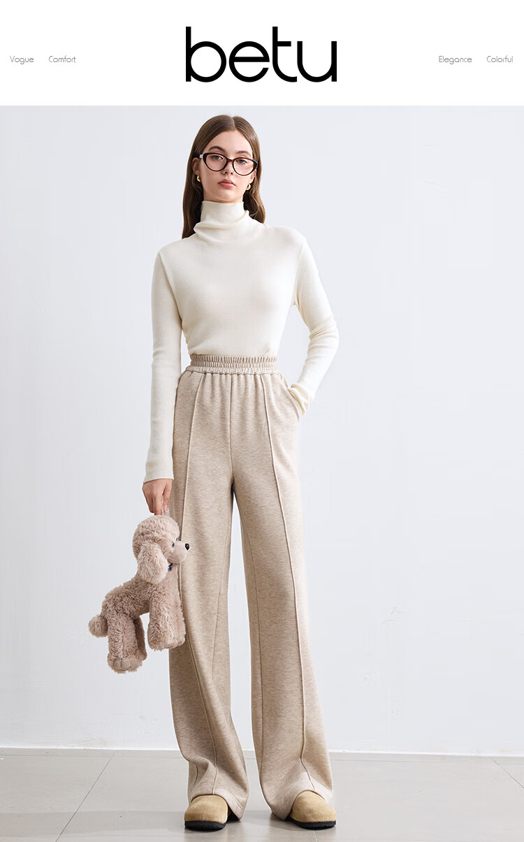 百图betu女装冬季新款休闲裤松紧腰绒底保暖阔腿裤裤子女2410T86 杏色 L