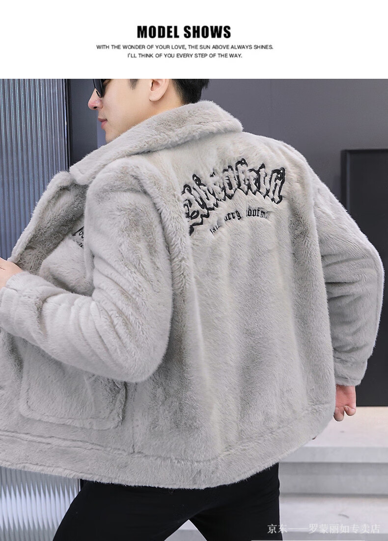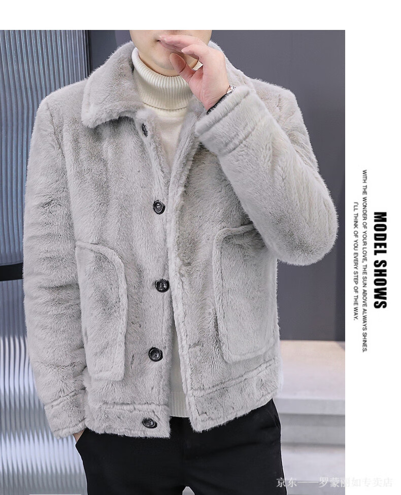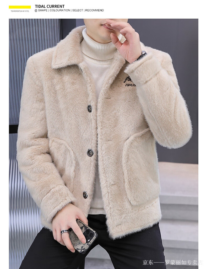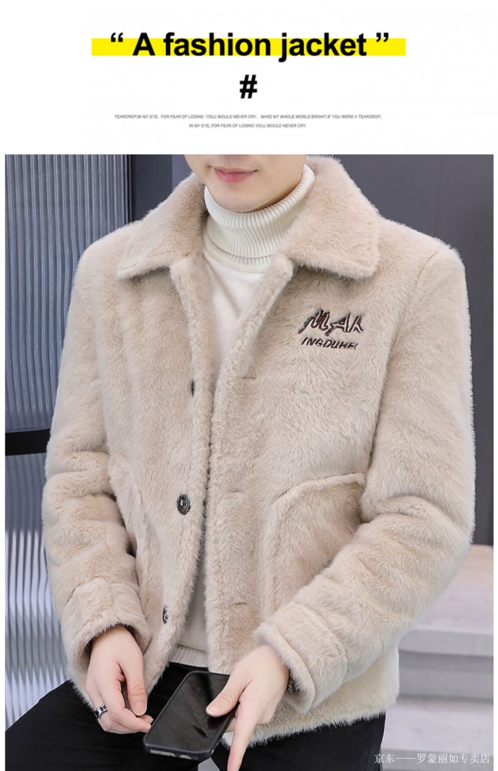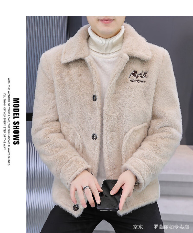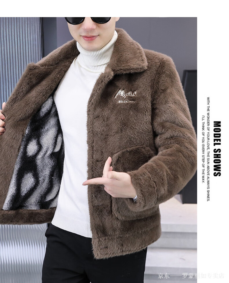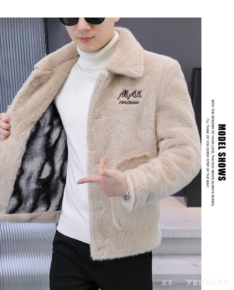 罗蒙(ROMON)秋冬季水貂绒夹克男加绒加厚休闲仿皮草外套痞帅韩版潮流短款棉衣 米色 3XL 建议155-170斤