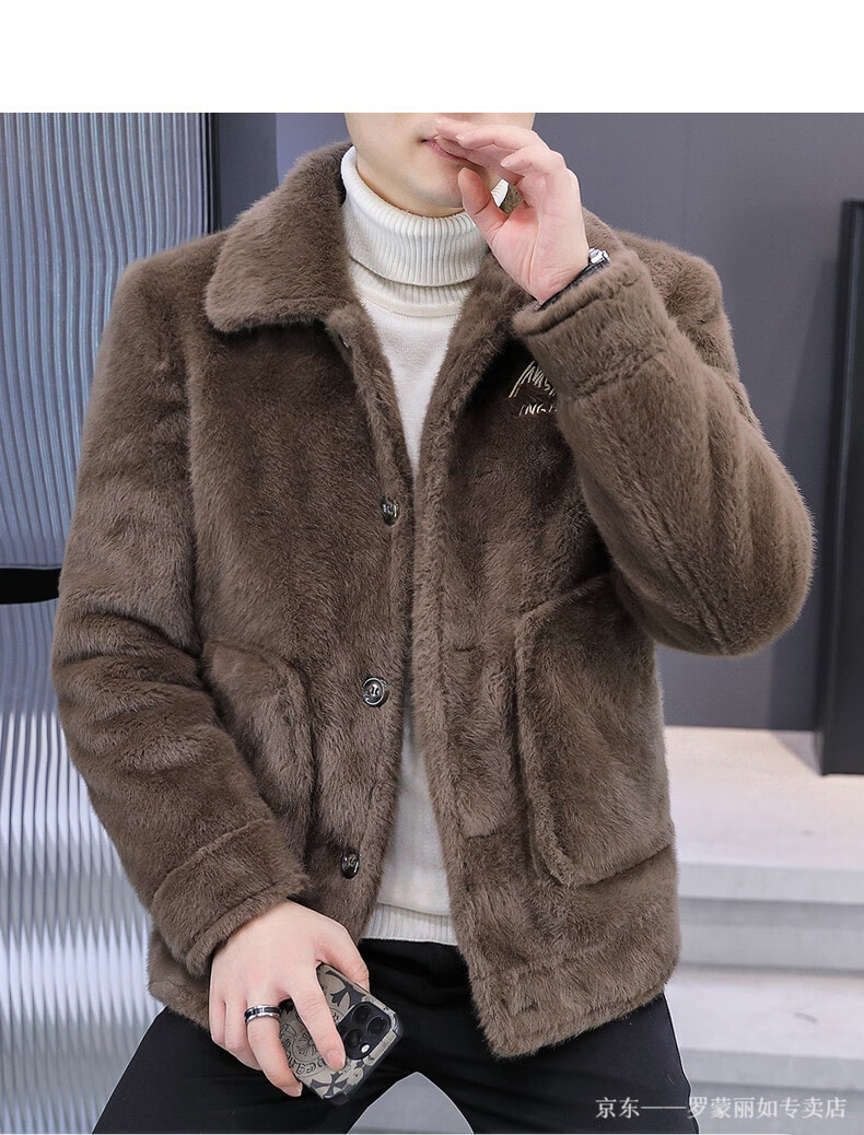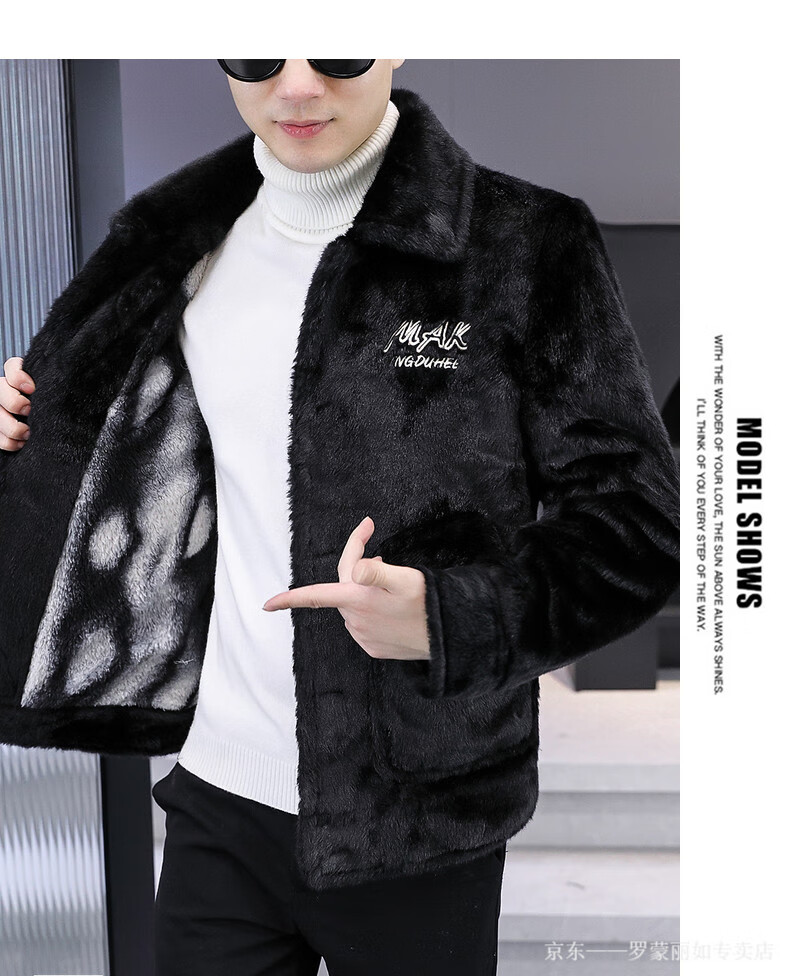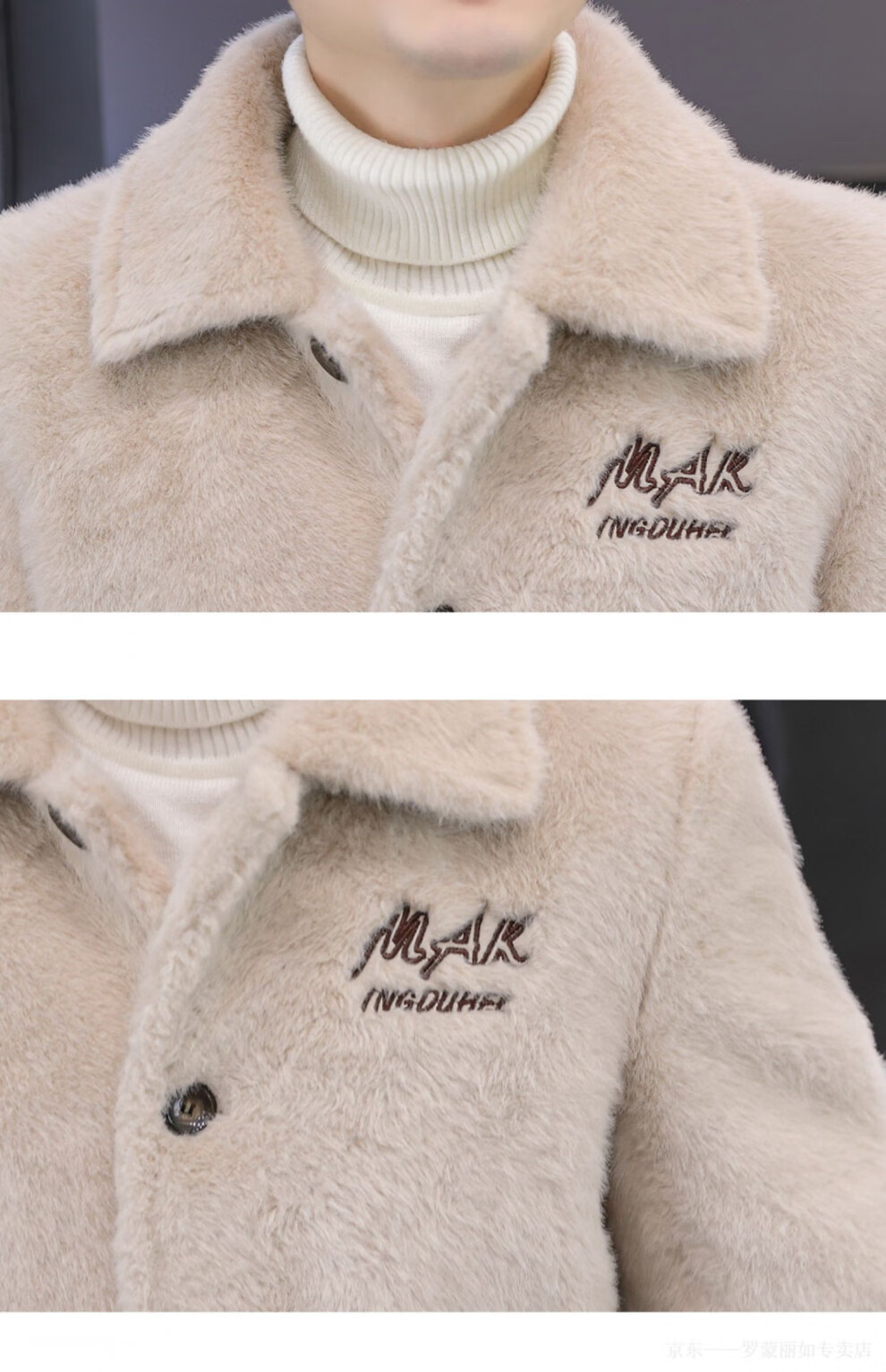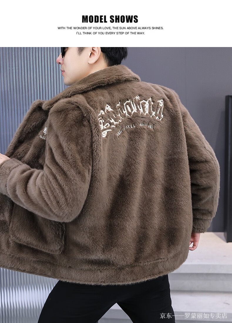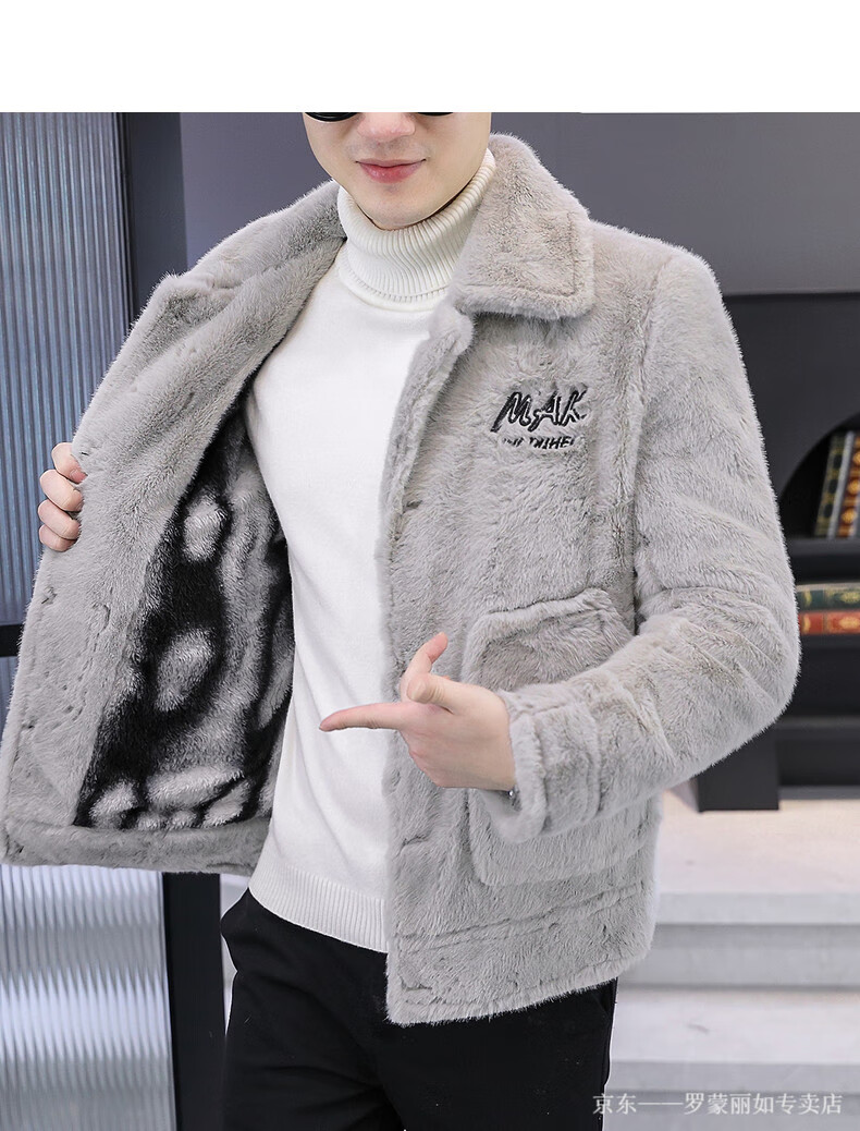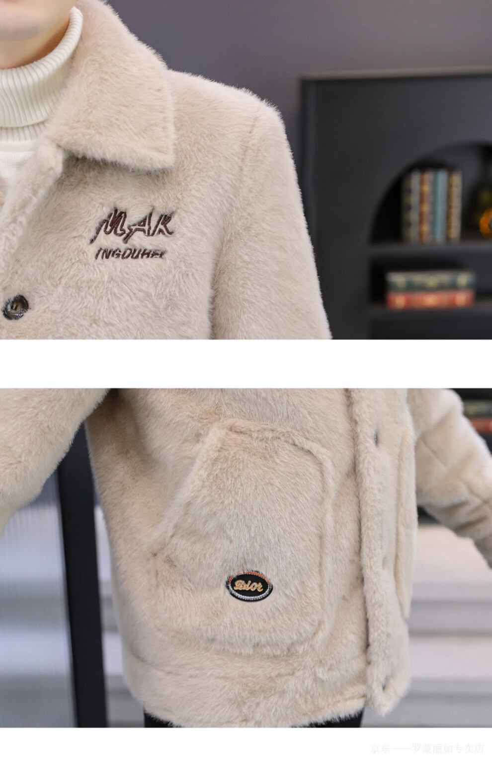 罗蒙(ROMON)秋冬季水貂绒夹克男加绒加厚休闲仿皮草外套痞帅韩版潮流短款棉衣 米色 3XL 建议155-170斤