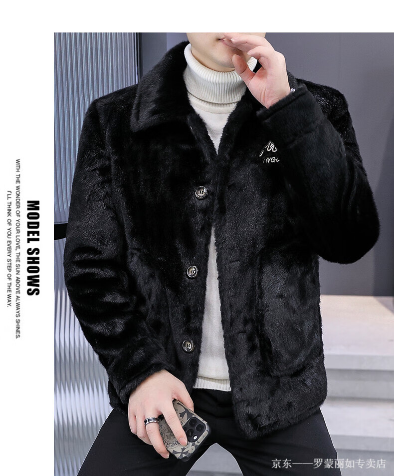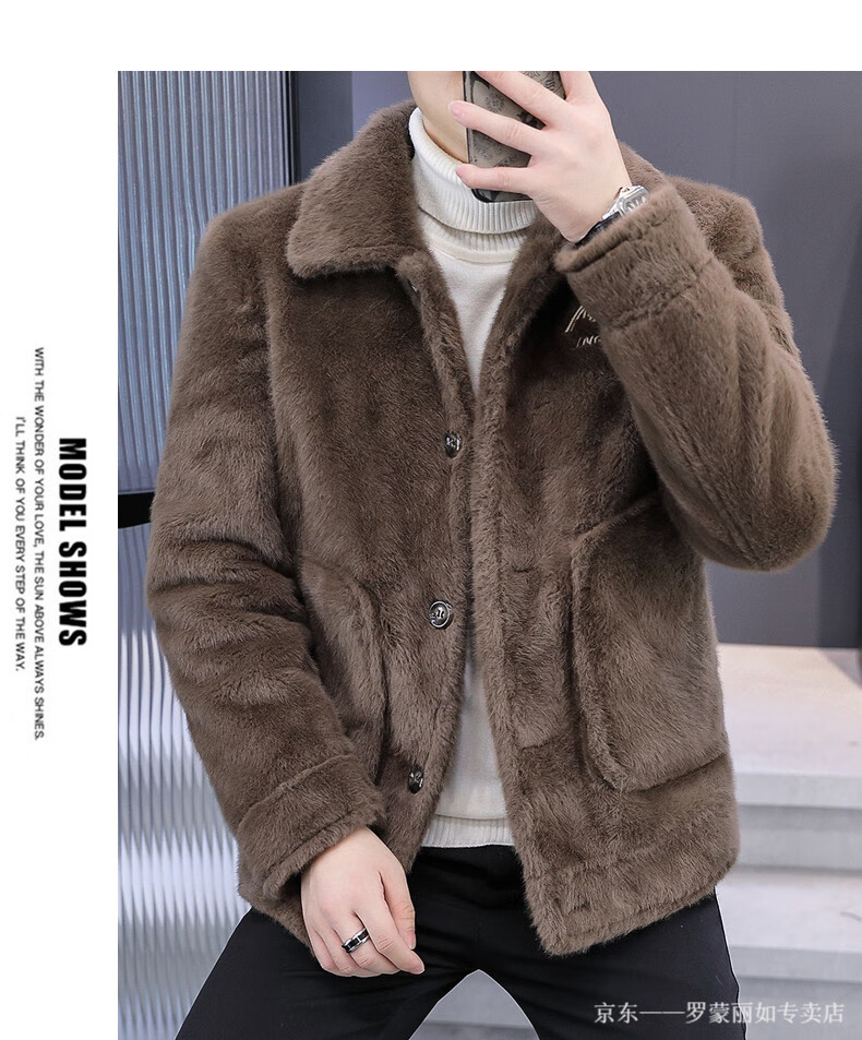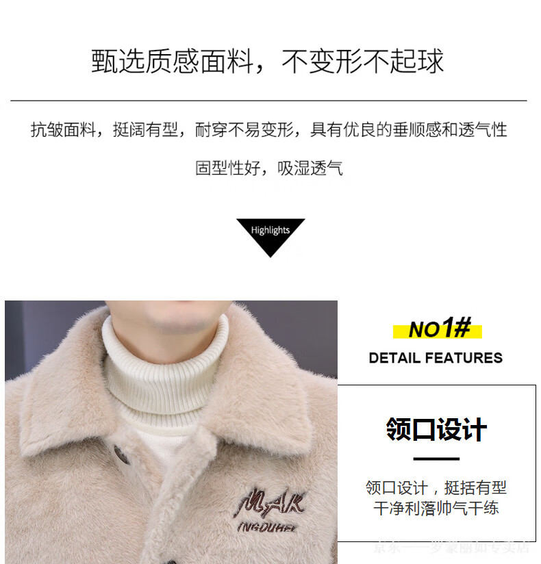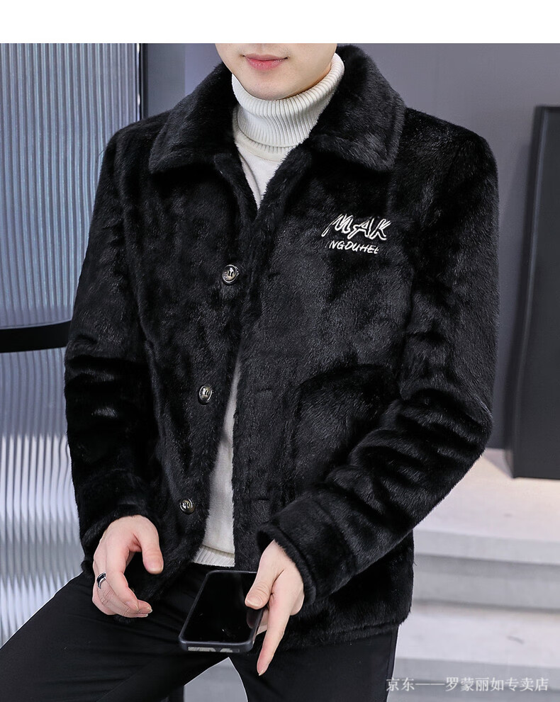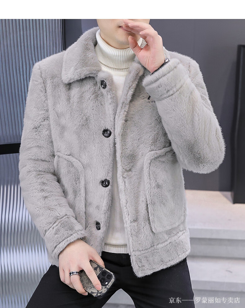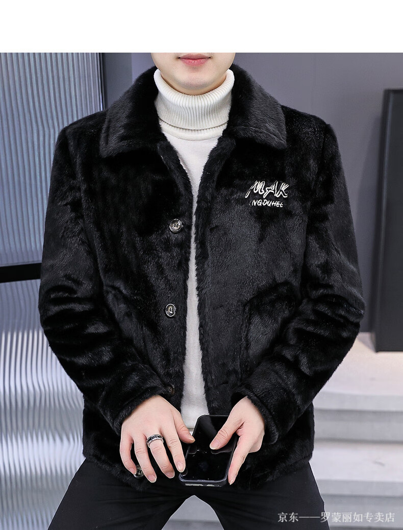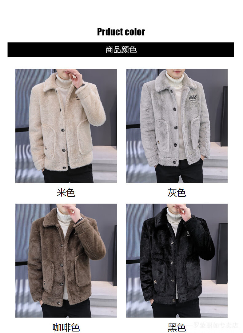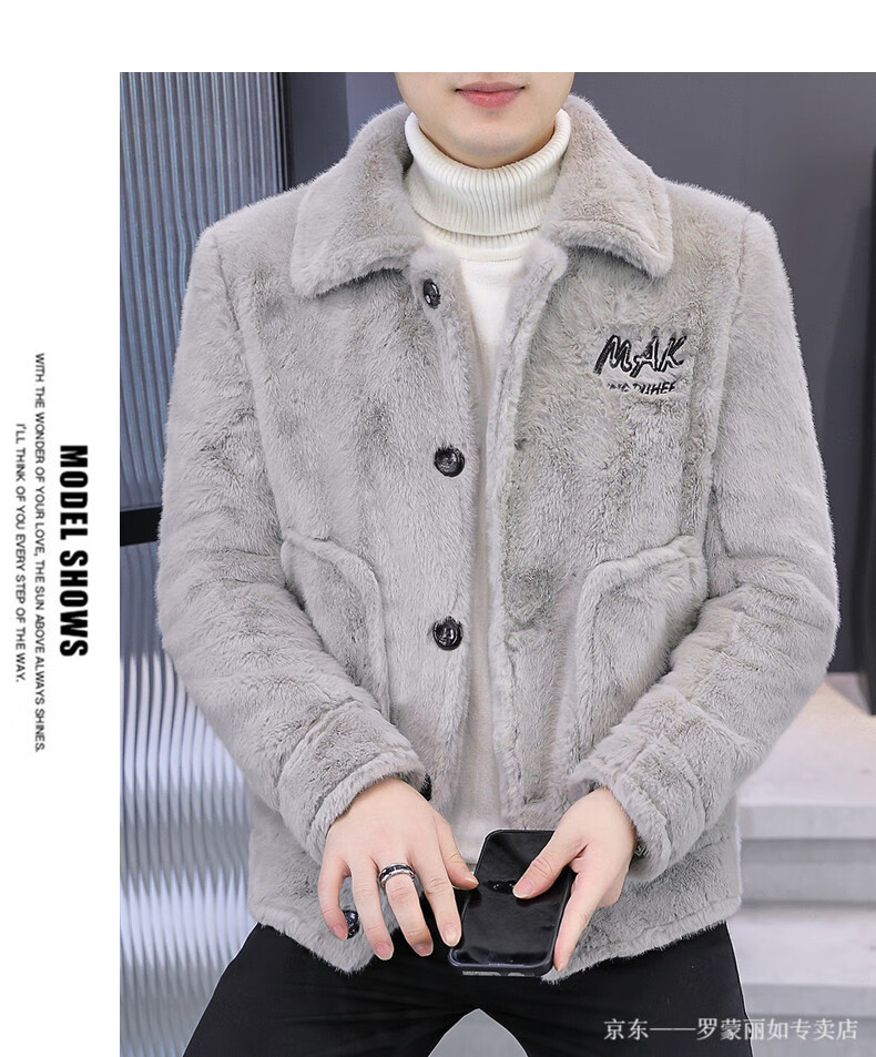 罗蒙(ROMON)秋冬季水貂绒夹克男加绒加厚休闲仿皮草外套痞帅韩版潮流短款棉衣 米色 3XL 建议155-170斤