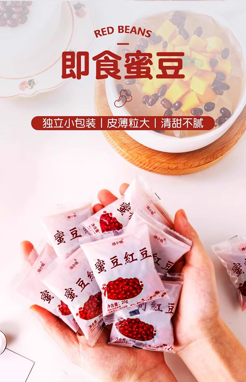 焙小姐蜜豆红豆即食小包装糖纳红豆沙馅料家用商用烘焙专用奶茶店原材料 【0添加剂】蜜豆红豆20g*60包