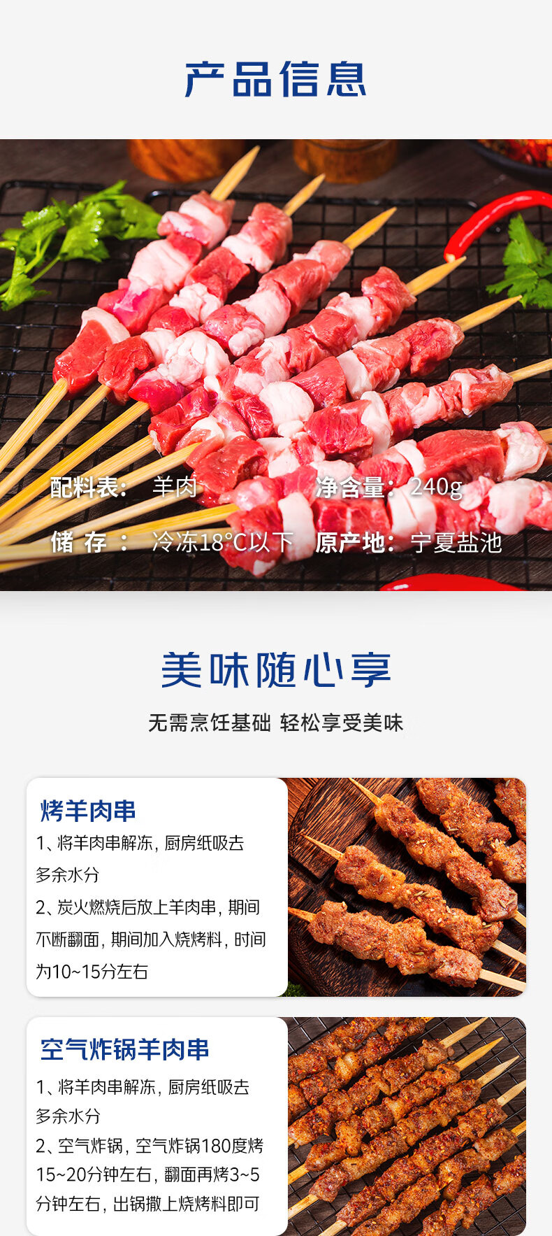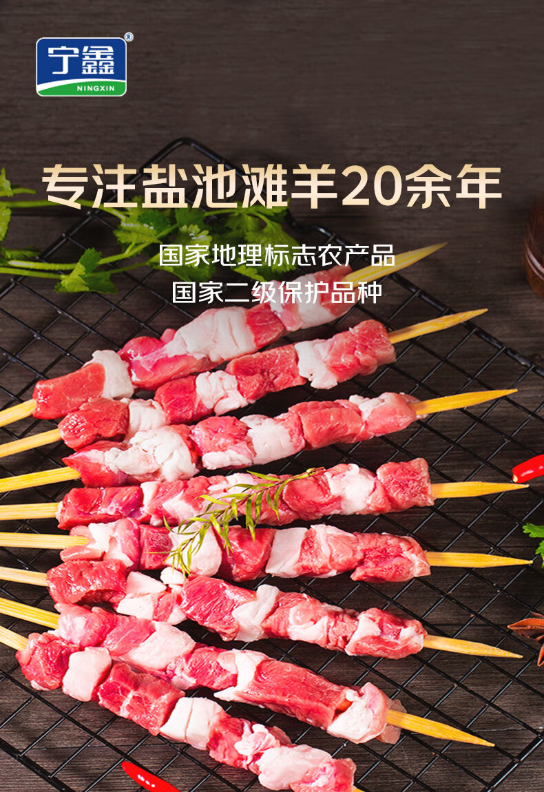 宁鑫 宁夏盐池滩羊 原切羊肉串240g 生鲜 地理标志产品 清真食品