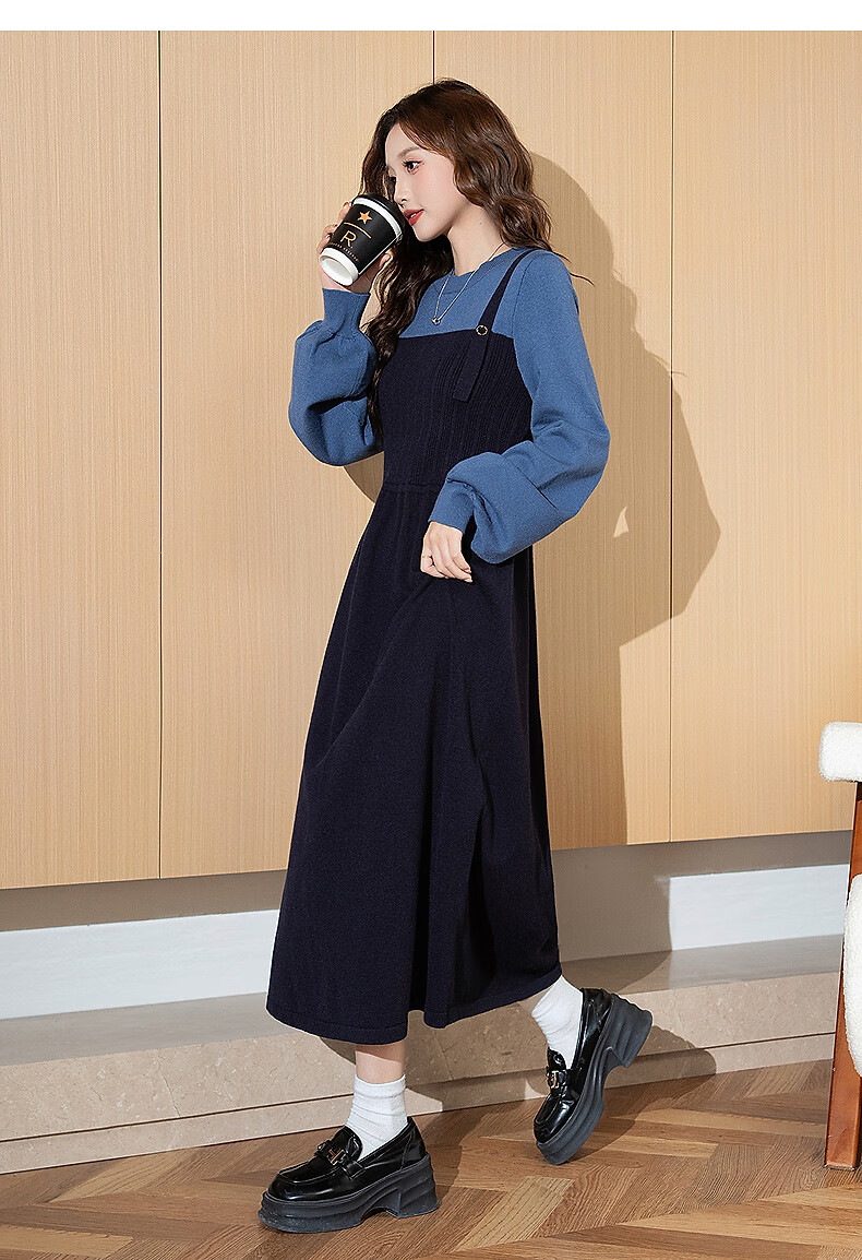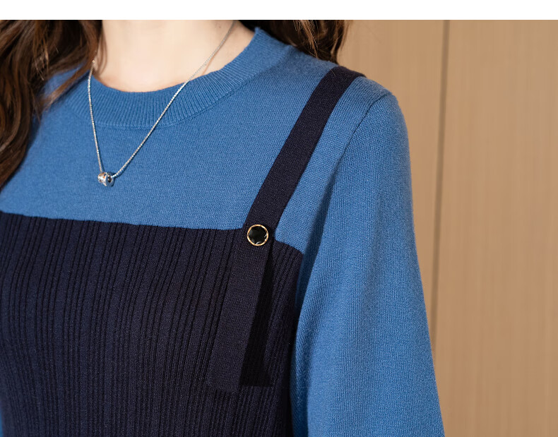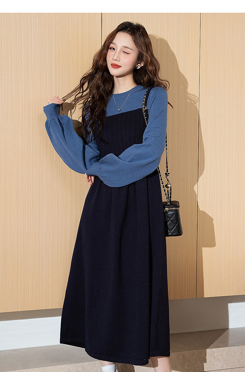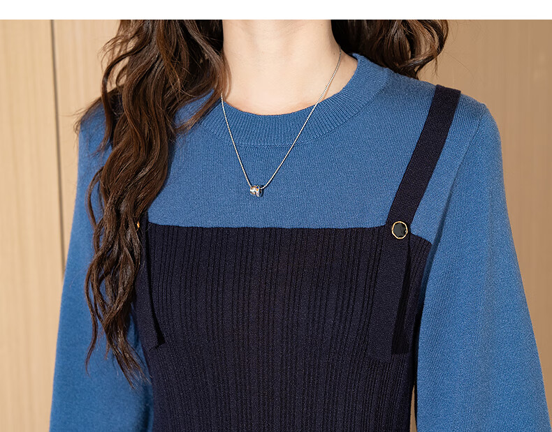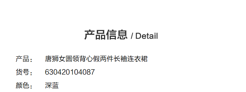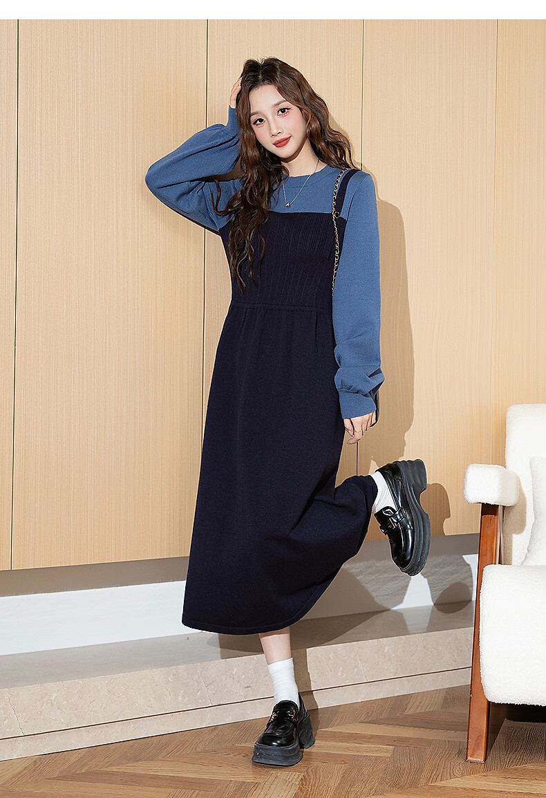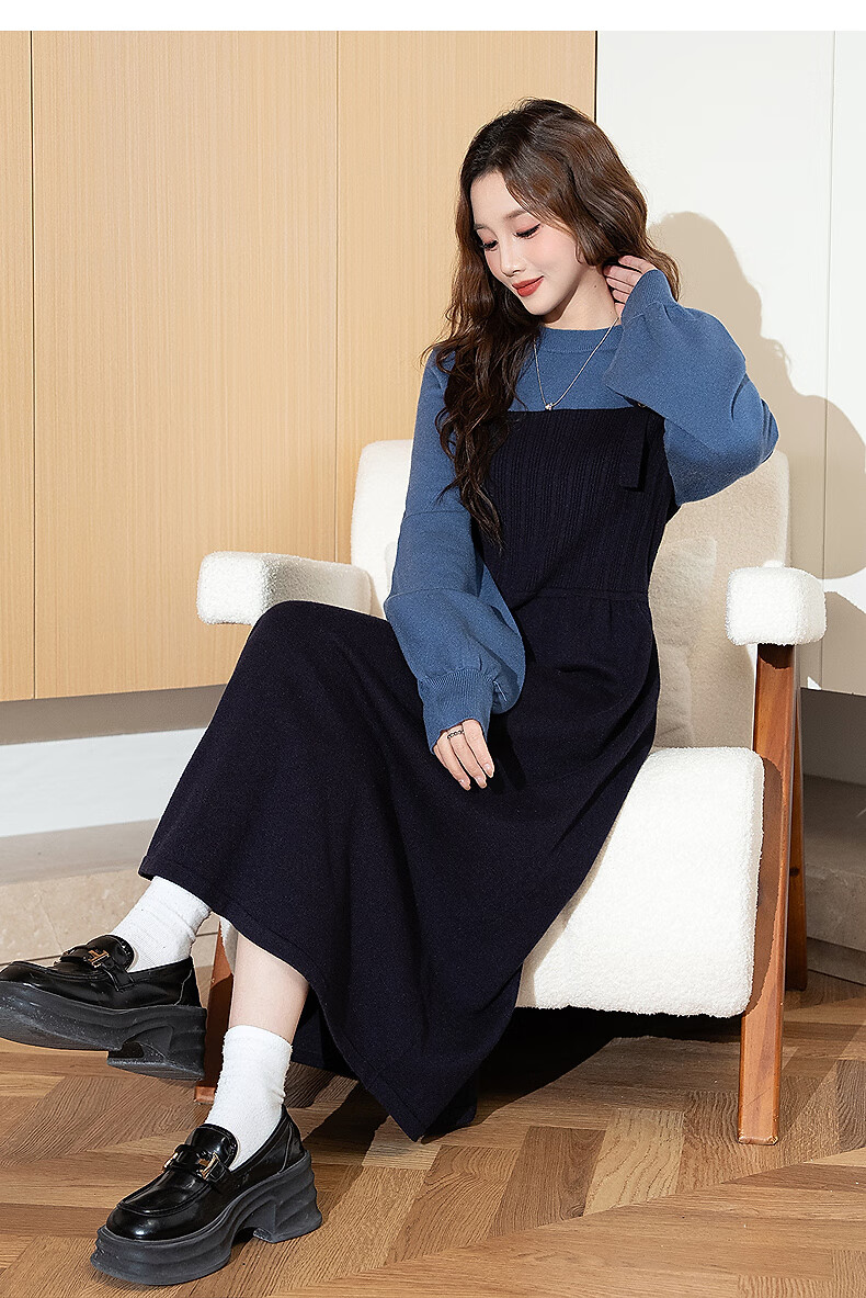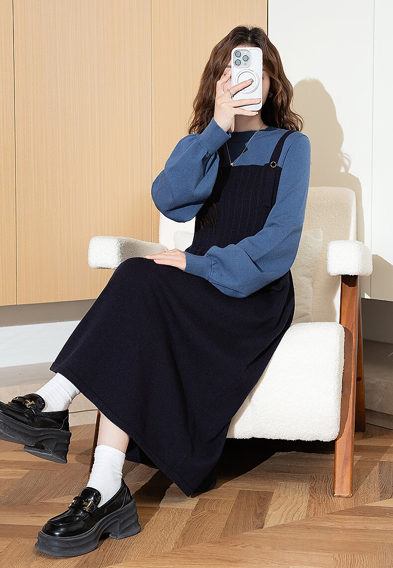 唐狮(TonLion)2025秋冬女圆领背心假两件长袖连衣裙