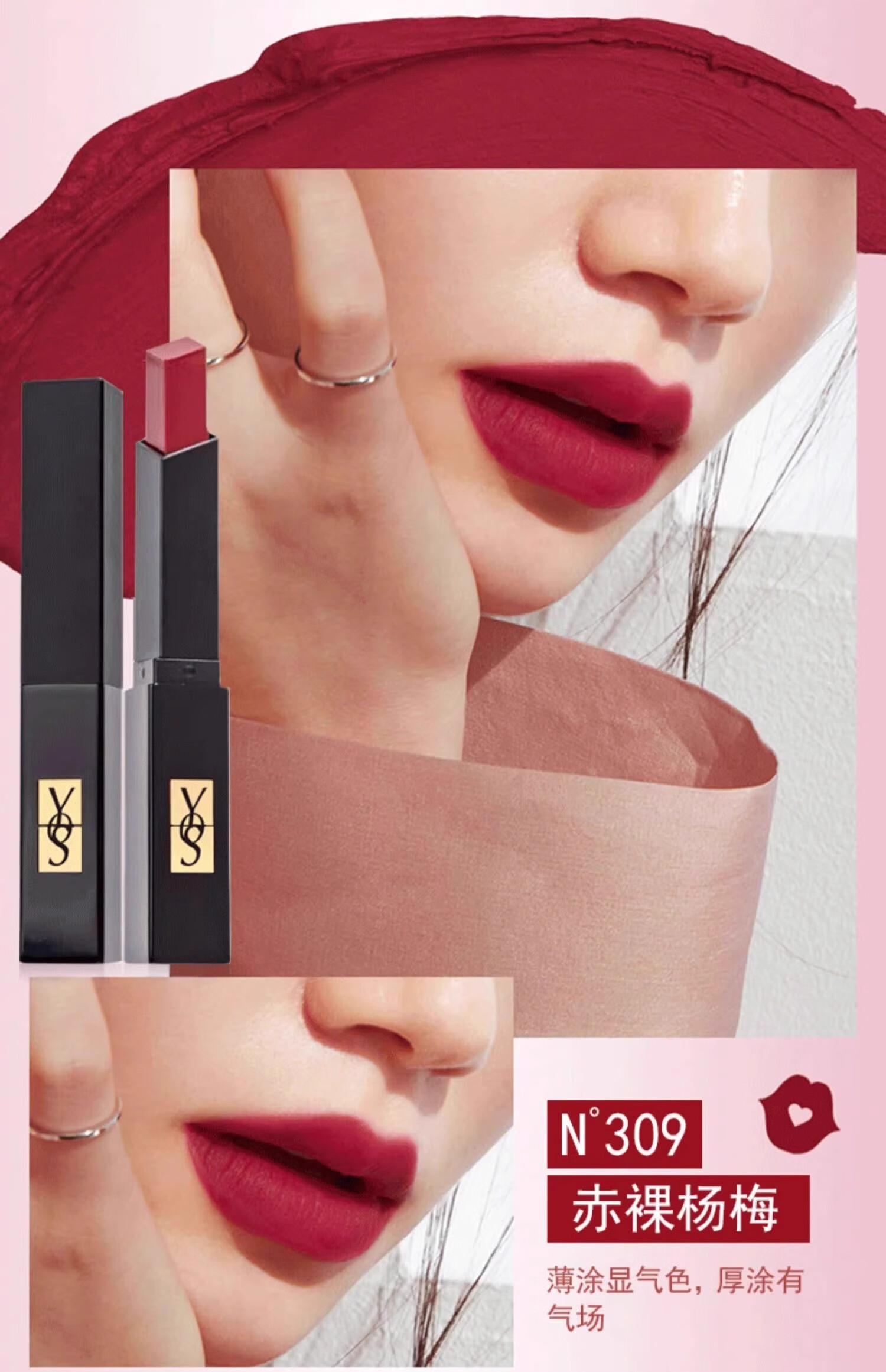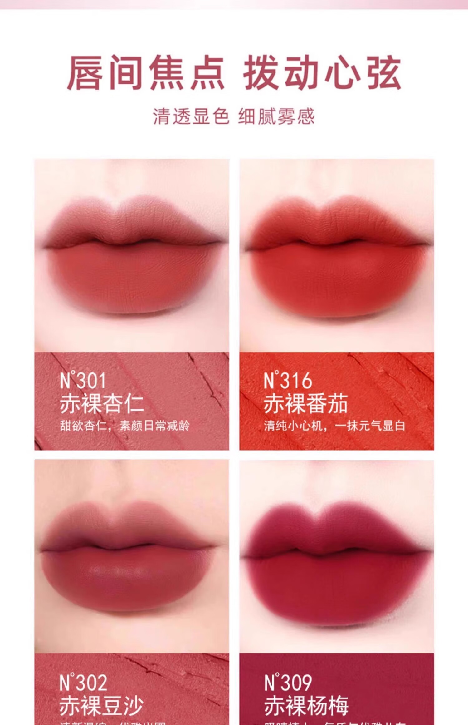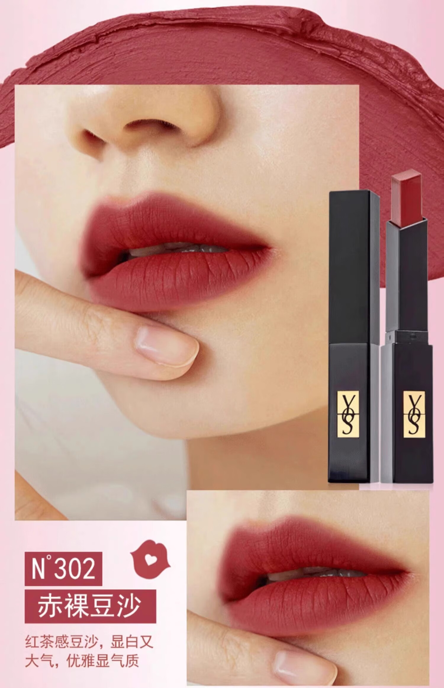 YQS大牌正品小黑条口红中小样豆沙色滋润哑光唇釉女唇膏不沾杯不掉色 302#赤裸豆沙