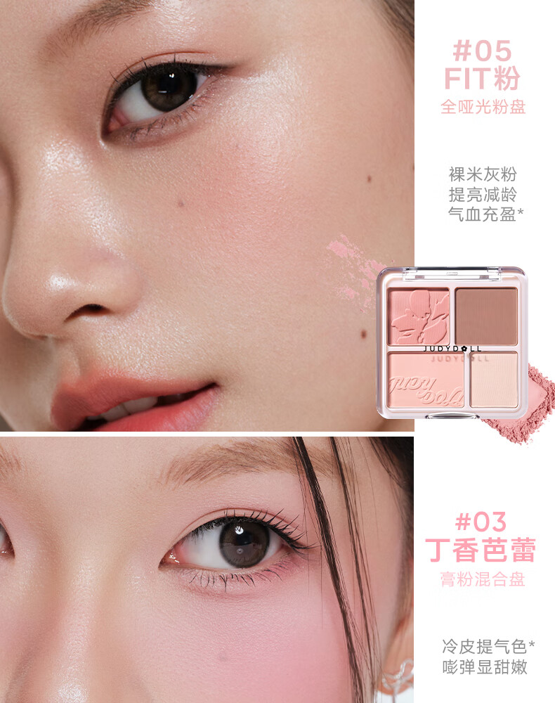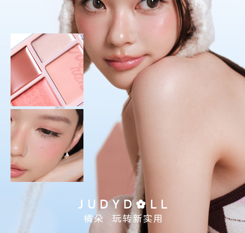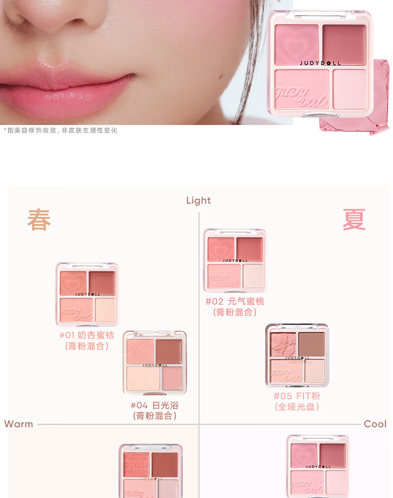 橘朵腮红高光盘眼影修容胭脂哑光提亮膨胀色收缩色多用盘新年礼物 【HOT全皮适用】#02元气蜜桃 4色