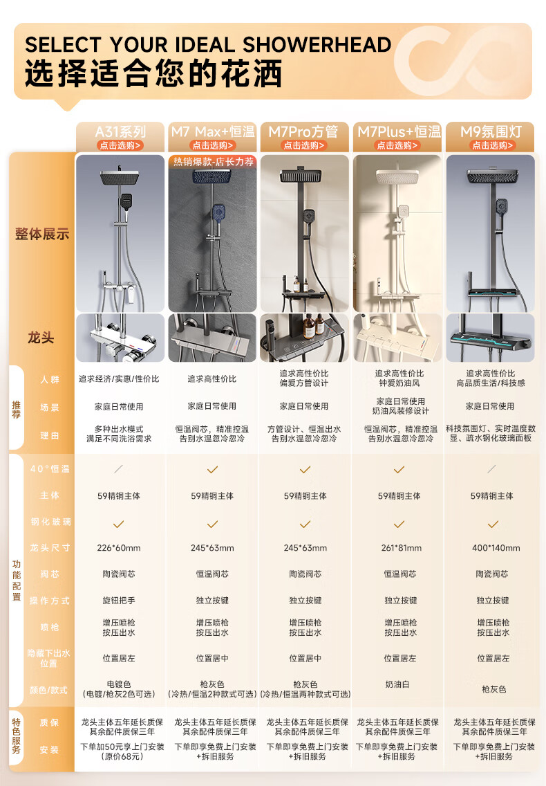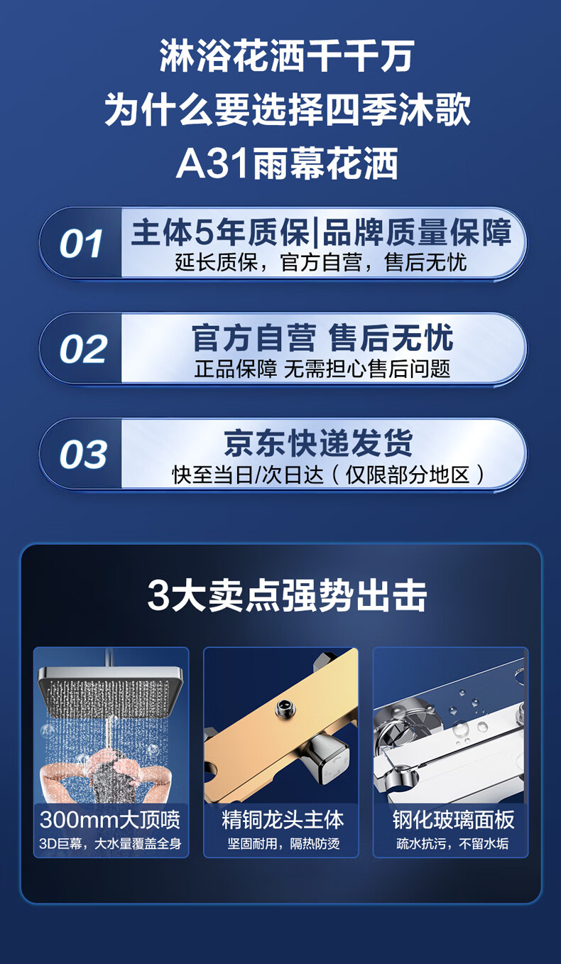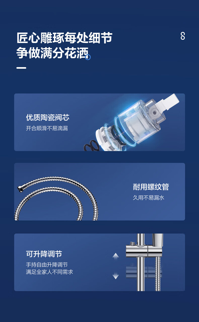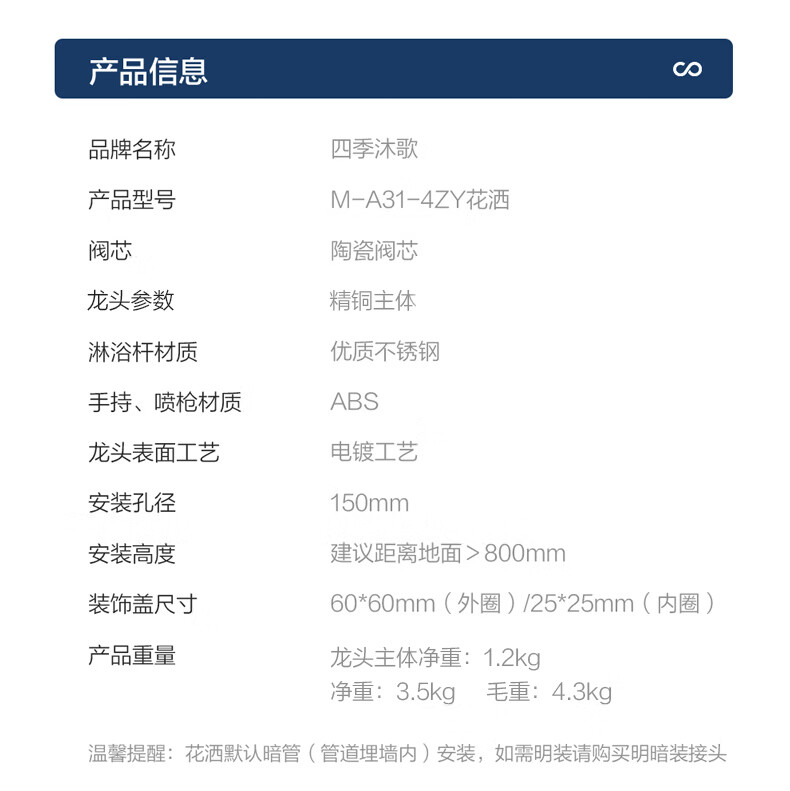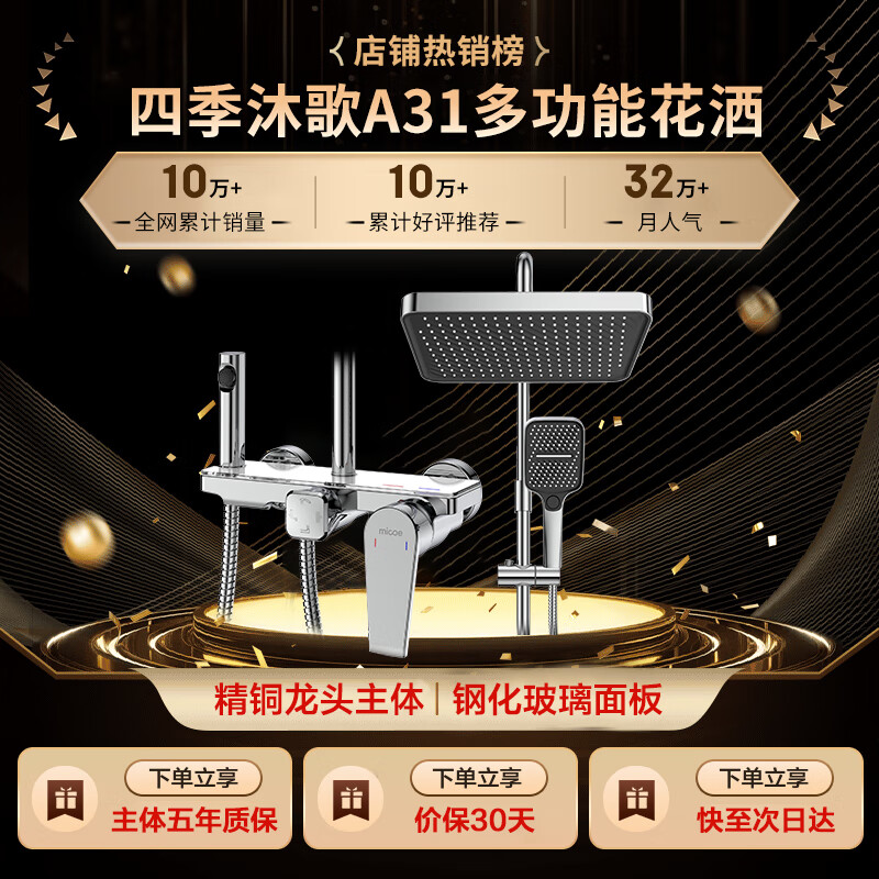四季沐歌淋浴花洒套装精铜主体多功能增压喷头浴室家用沐浴淋浴器花洒全套
