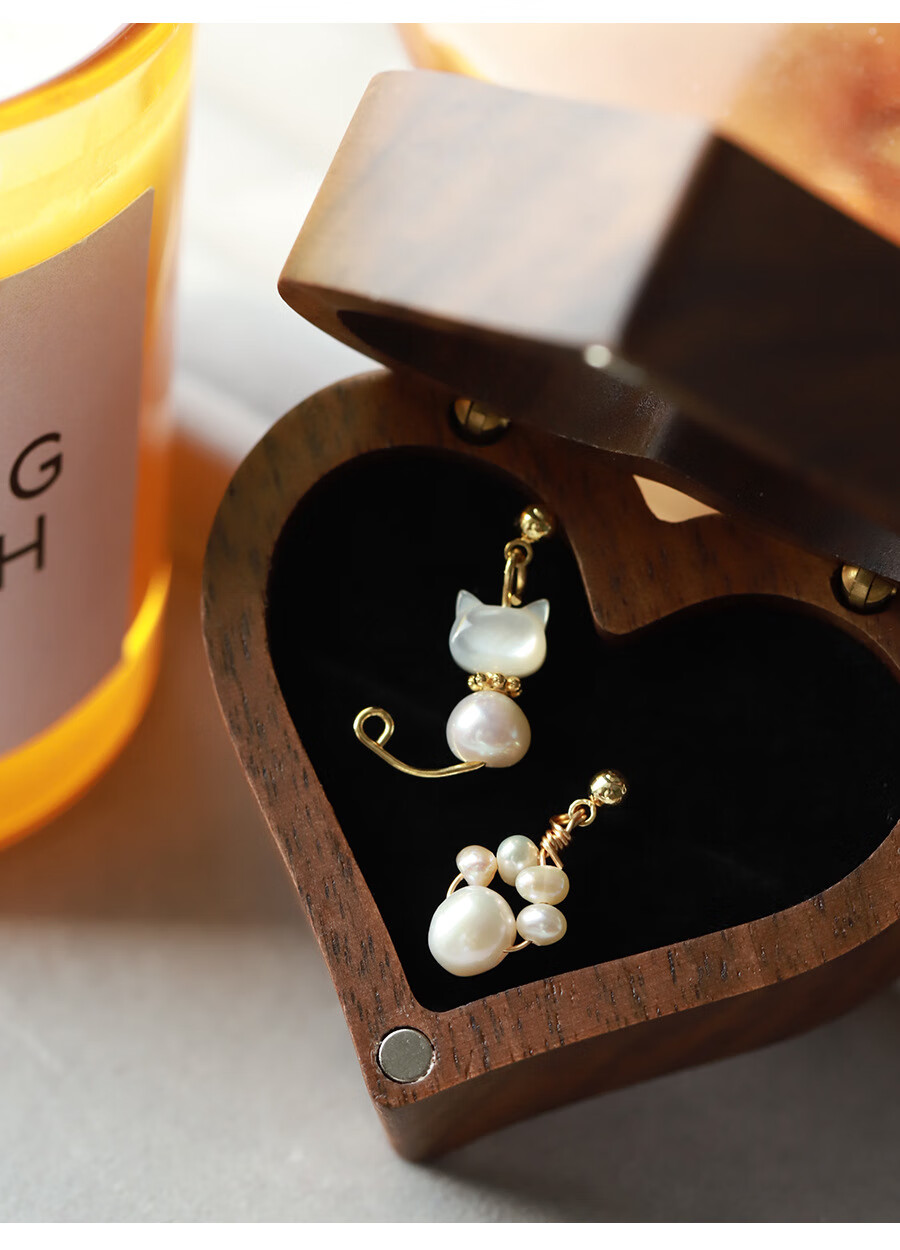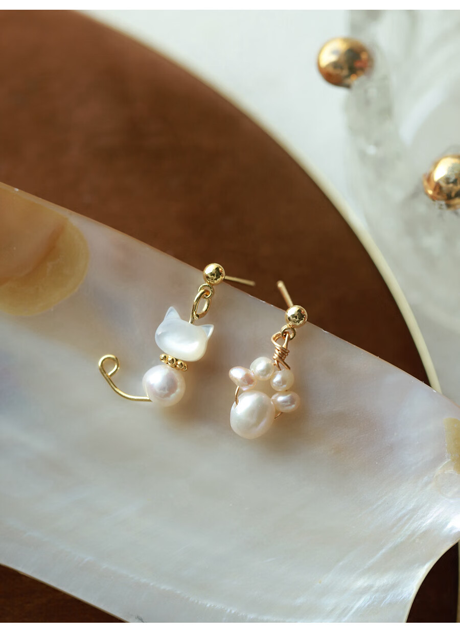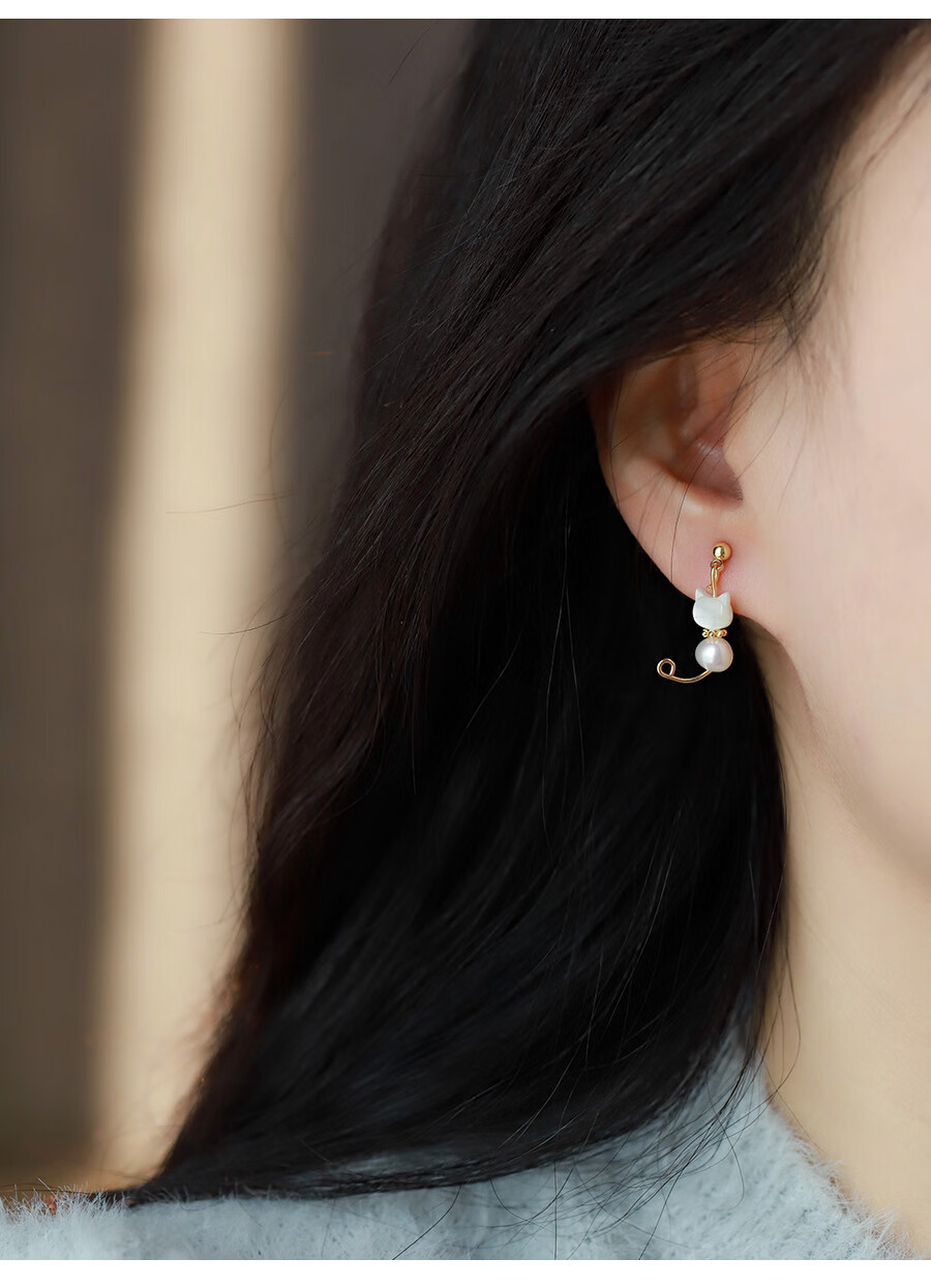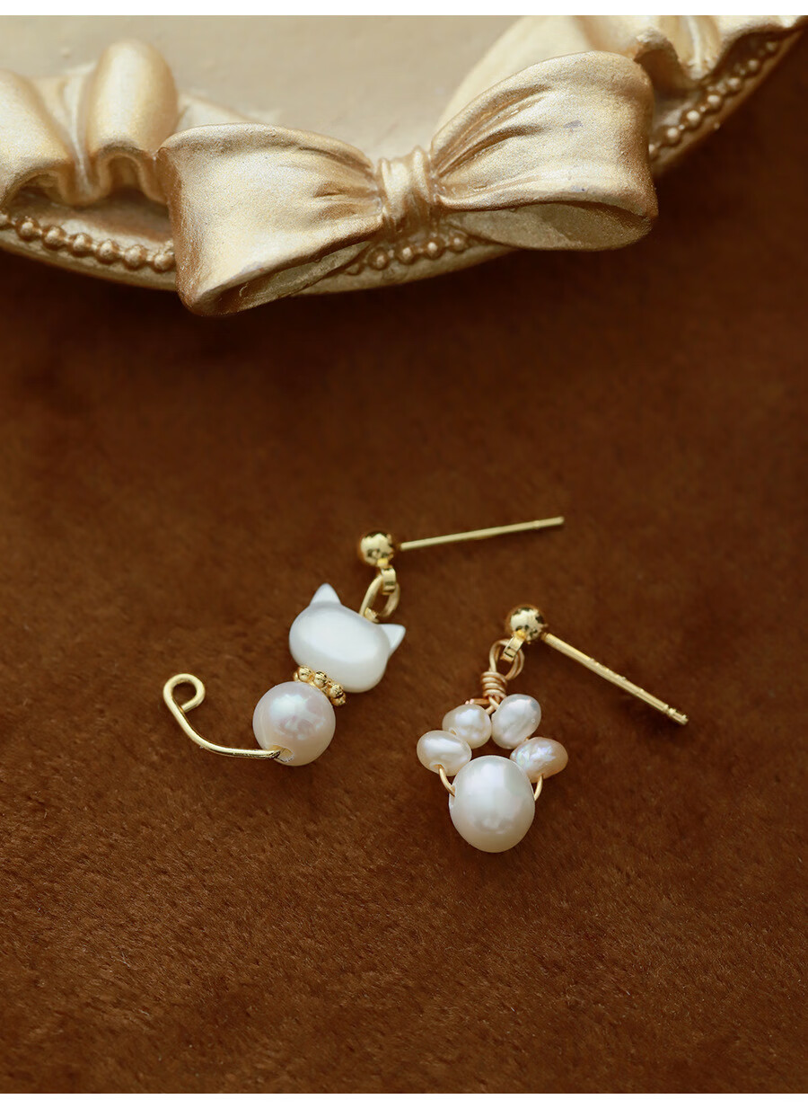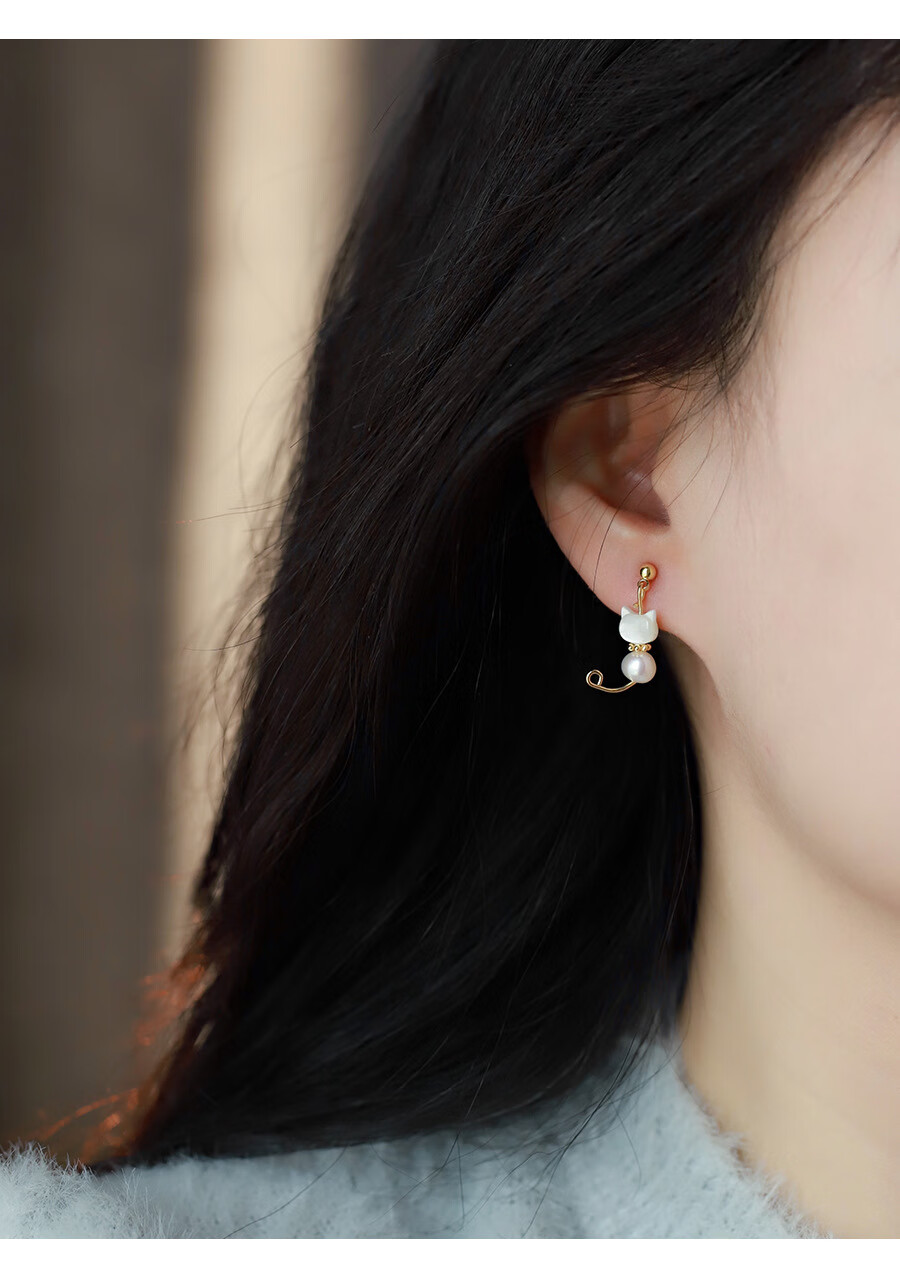 花饰庄园甜美猫咪耳钉可爱珍珠猫爪耳环无耳洞蚊香盘耳夹女 耳钉