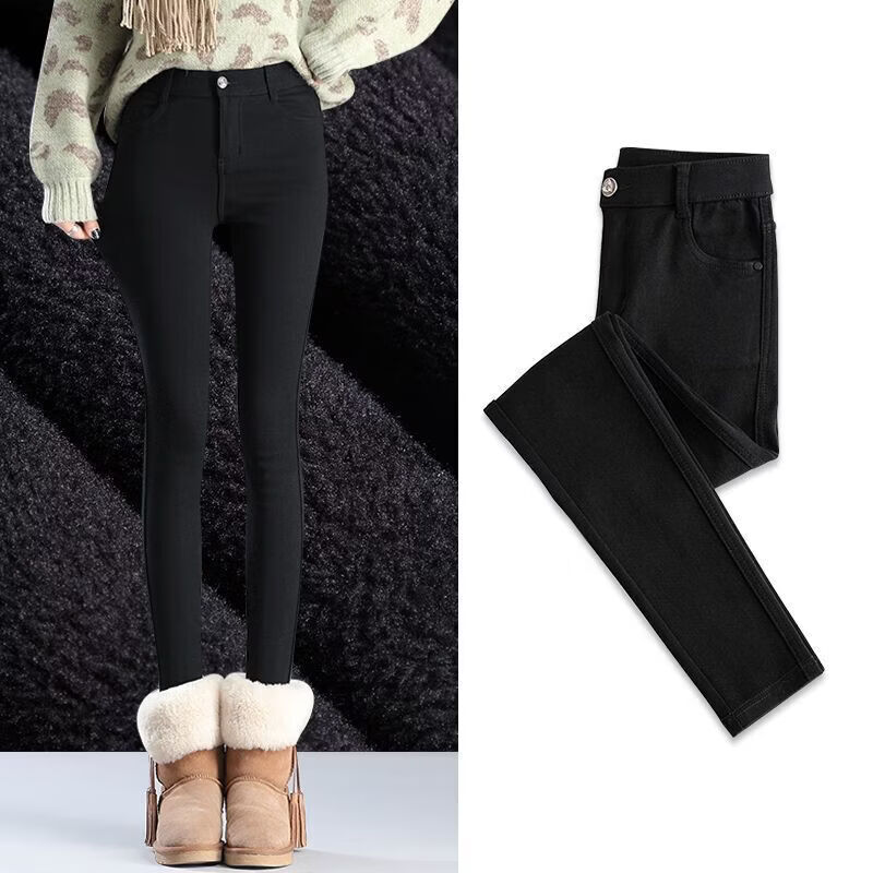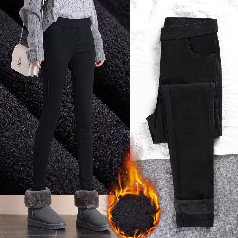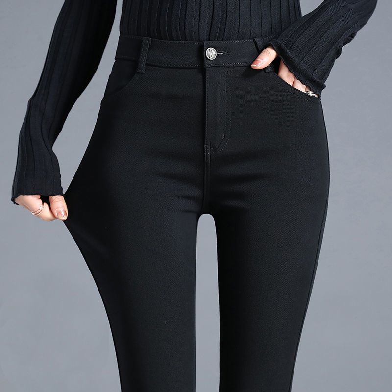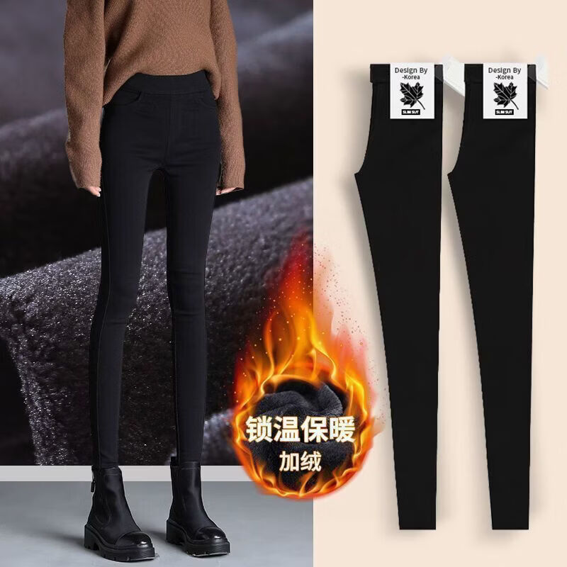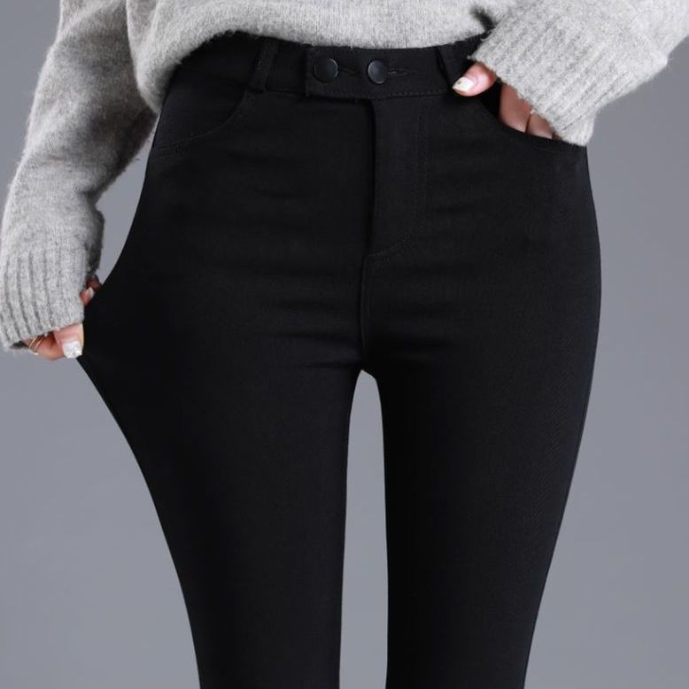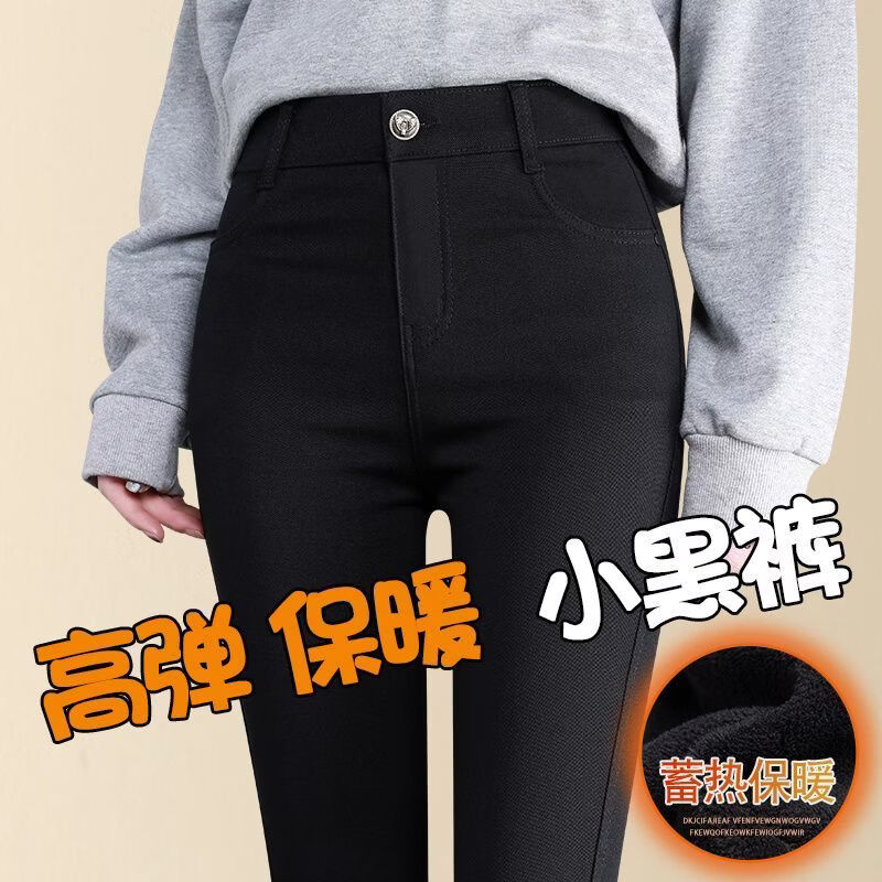 婍妡外穿秋冬加绒小黑裤女小个子八分高腰显瘦小脚裤九分魔术打底裤子 单扣八分裤-单裤不加绒 S 适合75-90斤