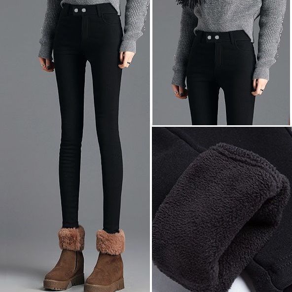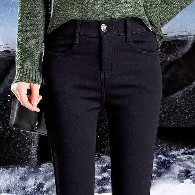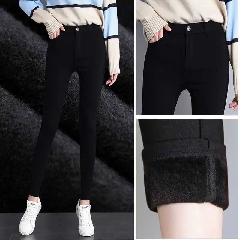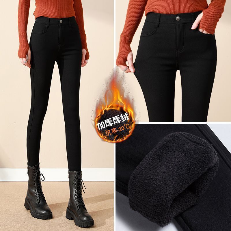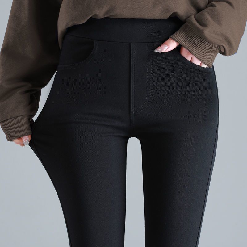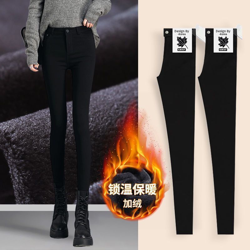婍妡外穿秋冬加绒小黑裤女小个子八分高腰显瘦小脚裤九分魔术打底裤子 单扣八分裤-单裤不加绒 S 适合75-90斤
