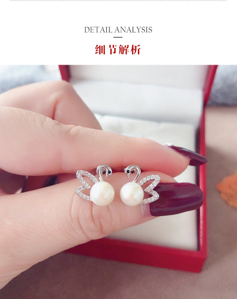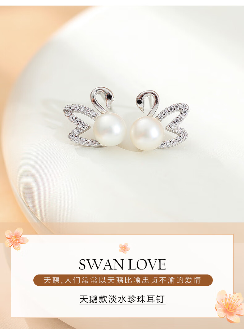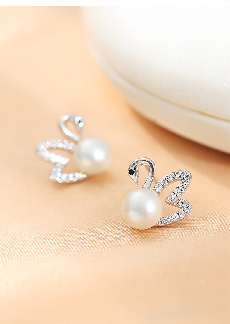 黛米 天鹅之恋耳钉 白色淡水珍珠耳钉天鹅款耳环时尚耳饰女送女友礼物 6-7mm/白色