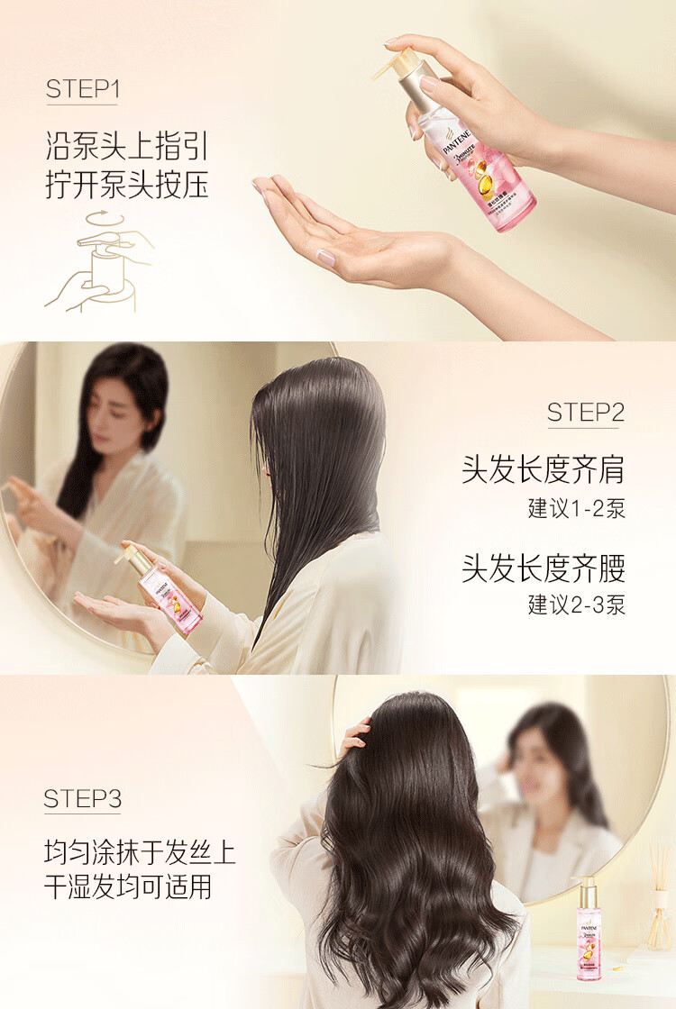 潘婷三分钟护发精油雪松玫瑰香3分钟奇迹三秒水感90ml修护干枯毛躁