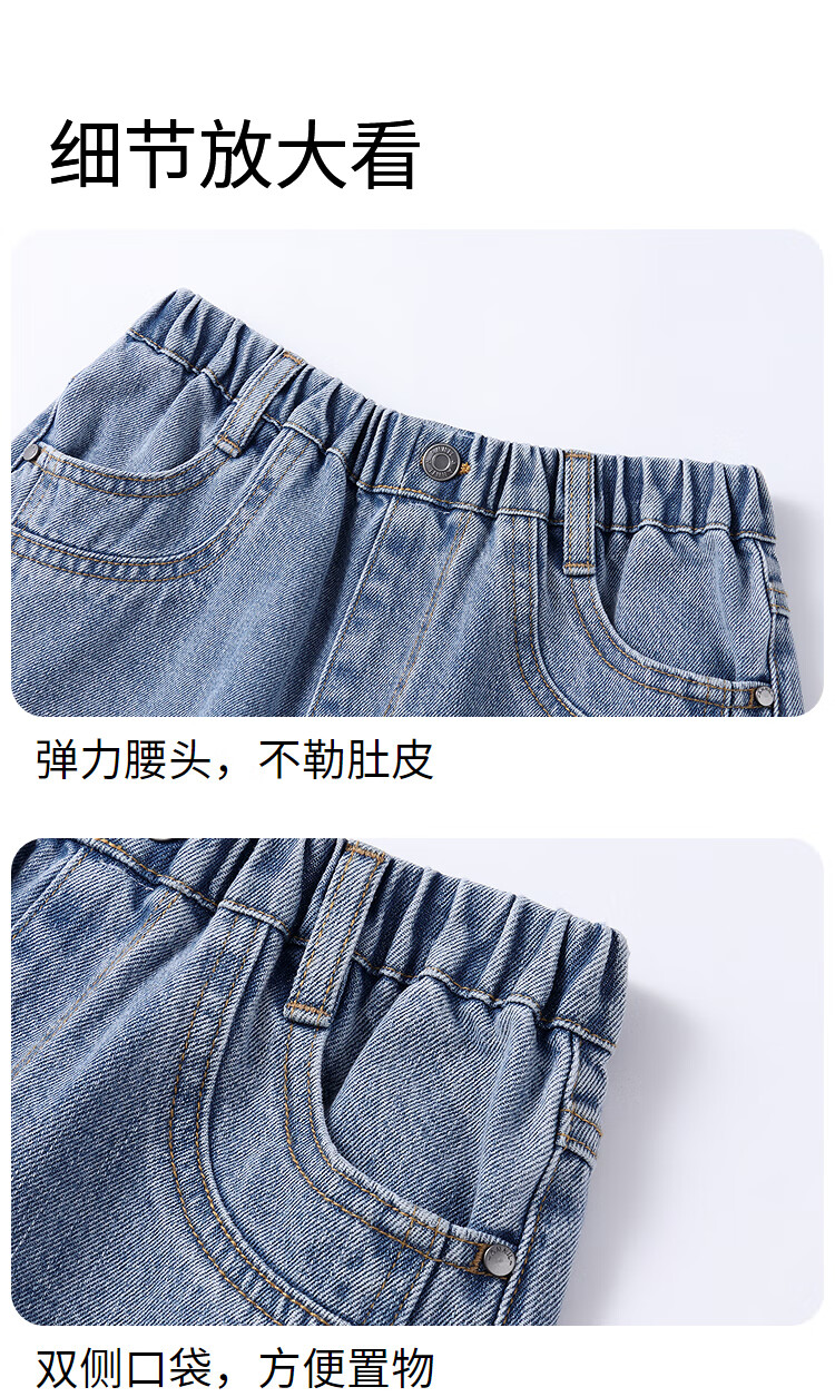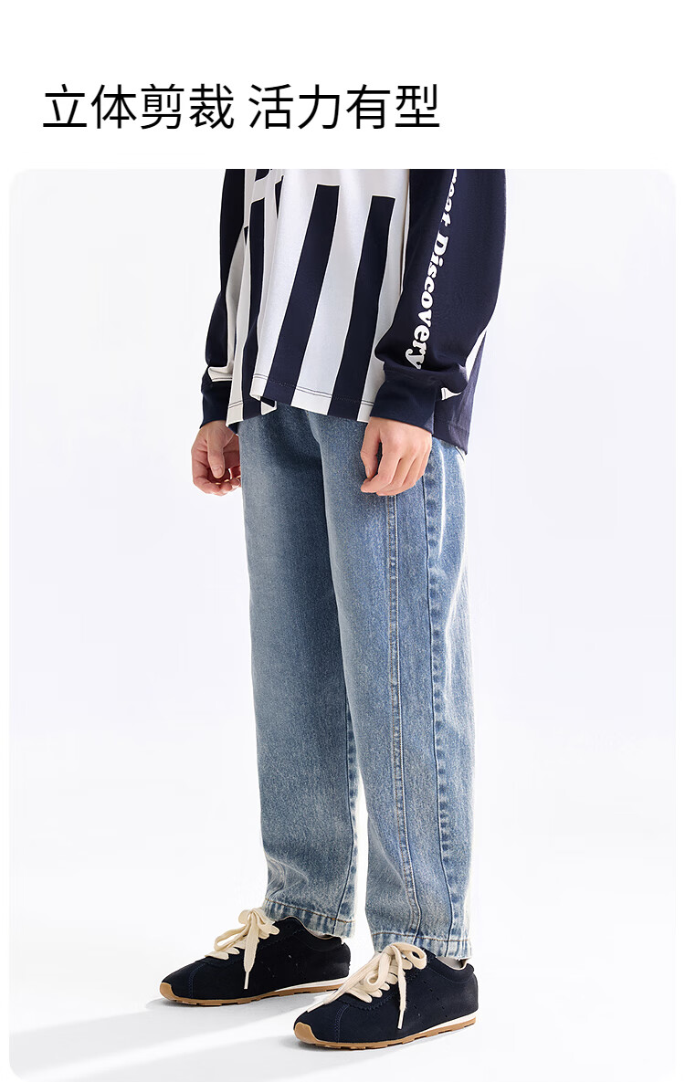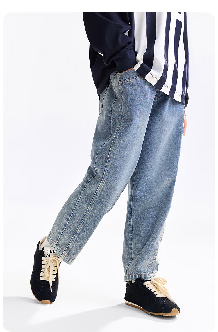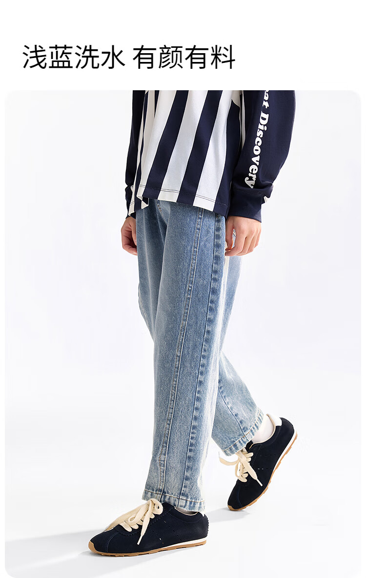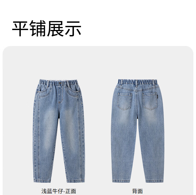 安奈儿童装男童透气全腰牛仔单裤2025秋新款 浅蓝牛仔 140cm