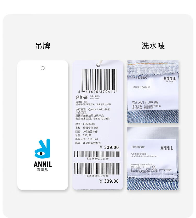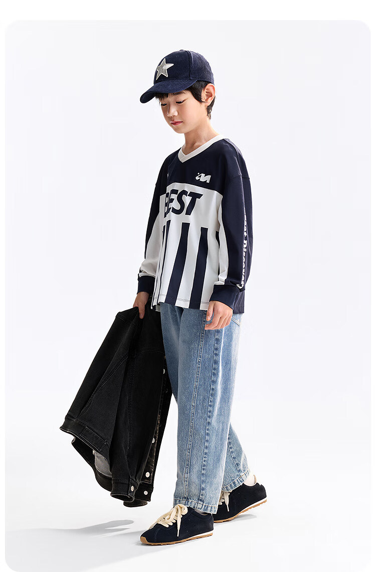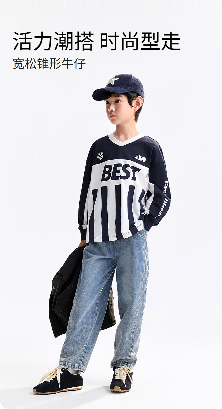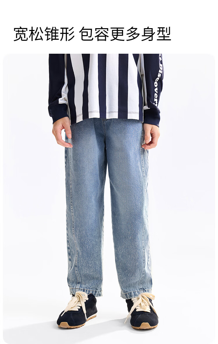 安奈儿童装男童透气全腰牛仔单裤2025秋新款 浅蓝牛仔 140cm