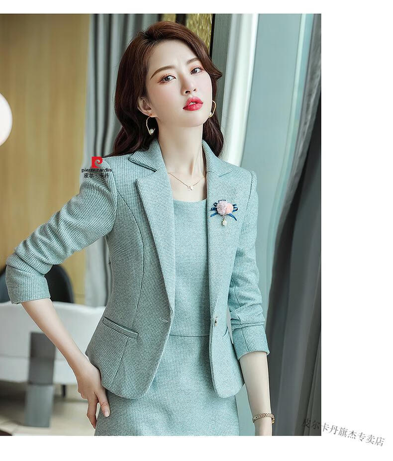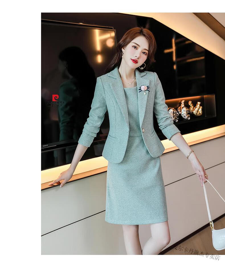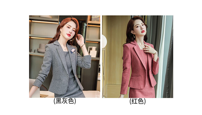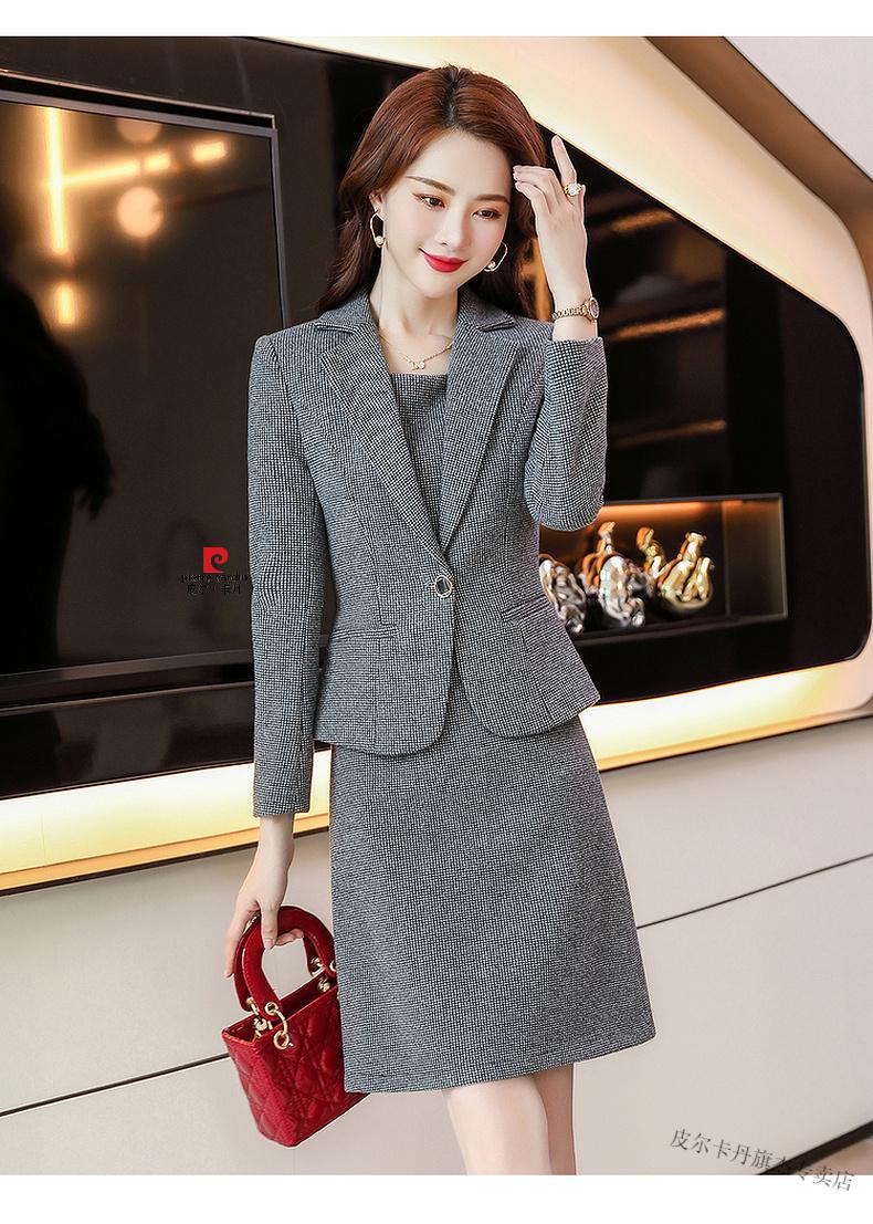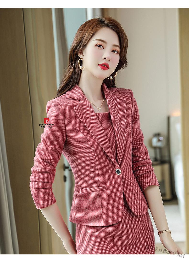 皮尔卡丹高档品牌女装小香风套装女秋冬职业装毛呢西装秋装2022新款感两件套套装裙冬季显瘦 红色外套+红色连衣裙 M